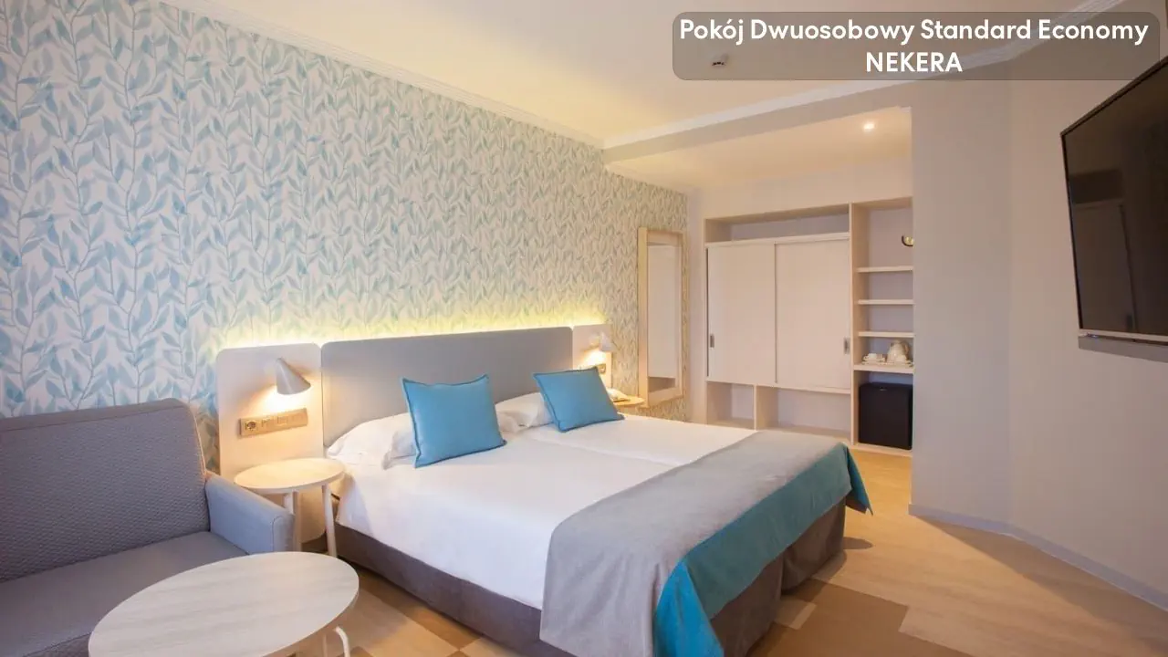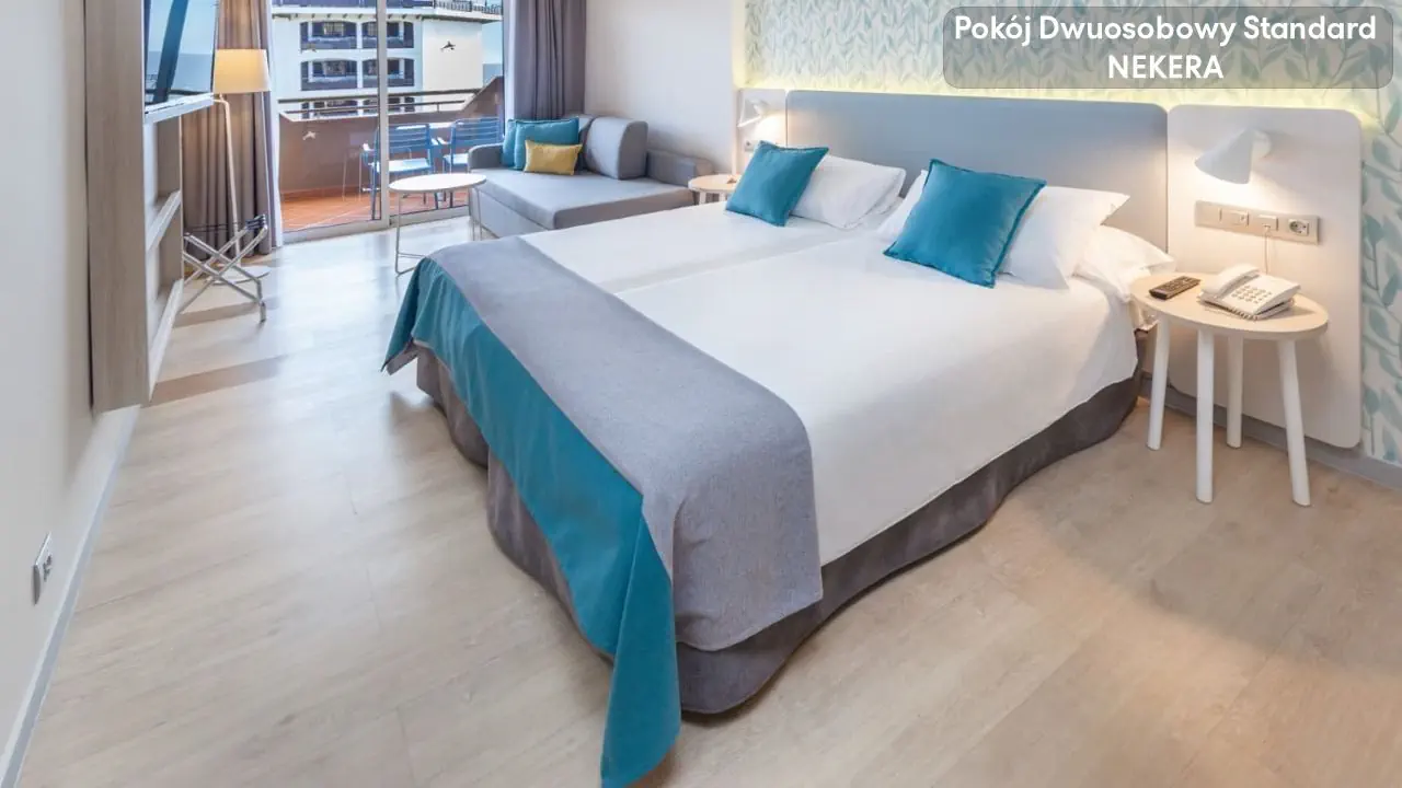 Pokój Dwuosobowy Standard - powierzchnia ok. 39 m² - maksymalnie 1- 3 osoby - balkon lub taras - łazienka z prysznicem i suszarką do włosów - dwa łóżka pojedyncze lub jedno łóżko podwójne w zależności od dostępności - jednoosobowa rozkładana sofa - TV - czajnik - sejf za dodatkową opłatą - minibar za dodatkową opłatą Pokój Deluxe - dla maksymalnie 1 do 3 osób - dwa łóżka pojedyncze, lub jedno łóżko podwójne w zależności od dostępności - balkon lub taras - klimatyzacja - TV - sejf za dodatkową opłatą - ekspres do kawy Nespresso - fotel - minibar za dodatkową opłatą - bezpłatne WiFi - jednoosobowa rozkładana sofa - prywatna łazienka z prysznicem i suszarką do włosów Pokój Rodzinny - powierzchnia ok. 39 m² - maksymalnie 2-4 osoby - balkon lub taras - łazienka z prysznicem - dwa łóżka pojedyncze lub jedno łóżko podwójne w zależności od dostępności - jednoosobowa rozkładana sofa - TV - czajnik - sejf za opłatą - minibar za dodatkową opłatą Pokój Dwuosobowy Economy - powierzchnia ok. 34 m² - maksymalnie 2 osoby - łazienka z prysznicem i suszarką do włosów - dwa łóżka pojedyncze lub jedno łóżko podwójne - jednoosobowa rozkładana sofa - TV - czajnik - sejf za opłatą - minibar za opłatą