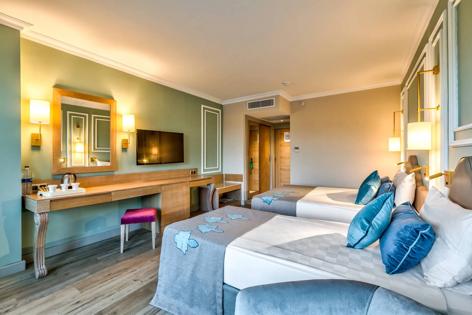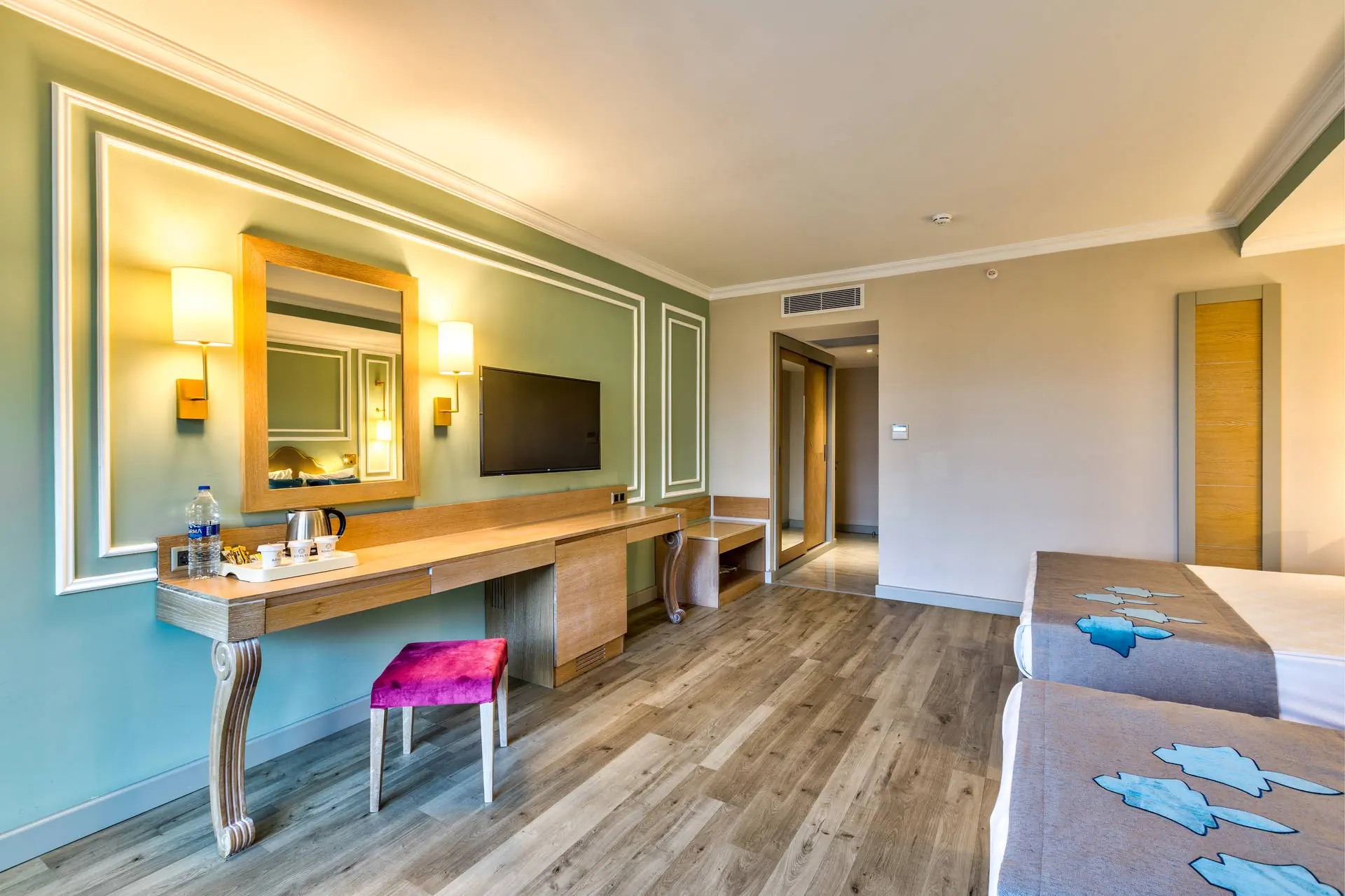 Położenie Hotel położony jest w turystycznym regionie Evrenseki. Odległość od lotniska w Antalyi wynosi około 56 km. Obiekt znajduje się około 7 km od centrum Side, gdzie można znaleźć klimatyczne restauracje i lokalne sklepiki. Manavgat oddalony jest o około 13 km. Dostępny jest dojazd lokalnym transportem. Wyżywienie Rodzaje wyżywienia i posiłki: Ultra All Inclusive: Śniadanie: 07:00 - 10:00. Późne śniadanie: 10:00 - 11:00. Lunch: 12:30 - 14:30. Obiadokolacja: 19:00 - 21:00. Bufet nocny: 23:00 - 07:00. Przekąski w barze przy basenie oraz na plaży: 12:30 - 16:00. Ciasto i słodkie przekąski w pattiserii: 10:00 - 19:00. Lody: 12:30 - 16:00 oraz 18:00 - 21:00. Placki tureckie: 12:30 - 16:00. Gofry: 12:30 - 16:00. Bary: Lokalne napoje bezalkoholowe i alkoholowe dostępne w wyznaczonych barach (brak serwisu pomiędzy 8:00 - 10:00 rano). Bar Vitamin: mogą obowiązywać dodatkowe opłaty. Pozostałe informacje: Za opłatą: część alkoholi importowanych, napoje butelkowane. Plaża Odległość plaży od hotelu wynosi około 300 metrów. Szeroka, piaszczysto-żwirowa plaża. Leżaki, parasole i ręczniki plażowe dostępne bezpłatnie. Plaża wyróżniona certyfikatem Błękitnej Flagi. Do dyspozycji gości Recepcja 24h/7, lobby, 5 wind. 5 basenów: basen główny, basen dla dzieci, basen kryty oraz mini aquapark z 2 basenami i 6 zjeżdżalniami. Leżaki i parasole przy basenie bezpłatnie. Atrakcje dla dzieci: baseny, mini aquapark ze zjeżdżalniami. Restauracje: 5 restauracji, w tym główna i 4 restauracje à la carte (owoce morza, barbeque, włoska), 6 barów, w tym bar w lobby, bar przy plaży i bar przy basenie, pattiseria. Pozostałe informacje: mini biblioteka, butik (płatne), pralnia (płatne), fryzjer (płatne), wypożyczalnia samochodów i rowerów (płatne), opieka medyczna (płatne). Program sportowy i animacyjny Dla każdego: gry i zabawy, gimnastyka przy basenie, trampoliny, wieczorne show, tenis stołowy, tenis ziemny, squash, rzutki, boccia, siatkówka plażowa, aerobik, sala fitness, łaźnia turecka, sauna. Dla dzieci: duży mini klub (4-12 lat), mini disco, plac zabaw. Za dodatkową opłatą: oświetlenie do tenisa i squasha, bilard, kręgle, gry video, centrum SPA (masaże i zabiegi kosmetyczne), sporty wodne na plaży. Internet Bezpłatny Internet Wi-Fi na terenie całego hotelu, również w pokojach. Kategoria lokalna ***** Naszym zdaniem Hotel o wysokim standardzie, doskonały dla rodzin z dziećmi, oferuje bogaty program animacyjny, zapewniający rozrywkę dla wszystkich. Położony w dogodnej lokalizacji, zaledwie kilka kroków od szerokiej, piaszczystej plaży, umożliwia relaks w pięknym otoczeniu. Bliskość malowniczego miasteczka Side ułatwia odkrywanie lokalnych atrakcji. Spośród hoteli Adalya, ten obiekt wyróżnia się dostosowaniem do potrzeb rodzin, co czyni go świetnym wyborem dla osób poszukujących komfortu i różnorodnych form spędzania czasu. Strona www www.adalyahotels.com
