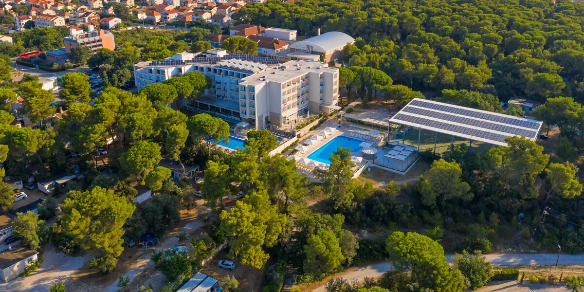 Otoczony pięknym sosnowym lasem Hotel Adria*** pozwoli poczuć klimat prawdziwego wypoczynku nad Adriatykiem w słonecznej Dalmacji. Hotel z kompleksem basenowym i strefą wellness jest usytuowany 350 m od Soline Beach – głównej plaży Biogradu na Moru i jedynie 800 m od centrum tego urokliwego nadmorskiego miasteczka. To atrakcyjna oferta na wakacje all inclusive z dziećmi w Chorwacji. Udogodnienia: Aquapark, Basen zewnętrzny, Basen dla dzieci, SPA, Sauna, Grota solna, Masaże, Wellness, Zabiegi odnowy biologicznej, Bar / restauracja, Sala zabaw dla dzieci, Pokój gier, Kącik zabaw dla dzieci, Animacje dla dzieci, Ogród / Park, Plac zabaw dla dzieci, Boisko sportowe, Kręgielnia, Klimatyzacja, Winda, Dla niepełnosprawnych, Parking, Płatność kartą