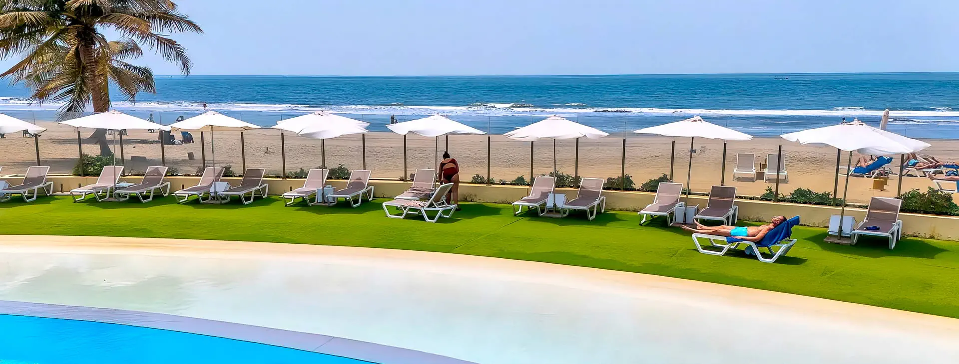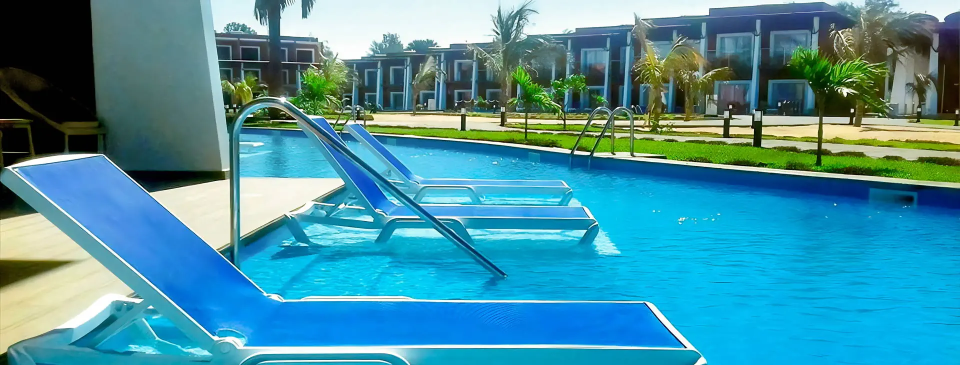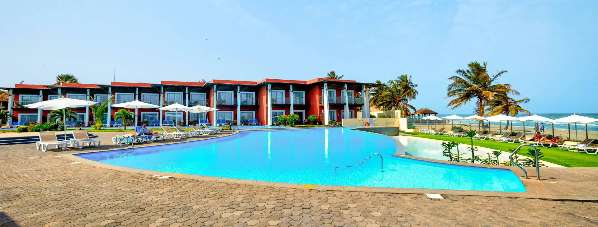 Położenie: Hotel położony jest w pobliżu najsłynniejszych kurortów turystycznych w Gambii – Kotu oraz Kololi. Do najsłynniejszej ulicy Senegambia jest ok. 1km - tam znajdziemy liczne restauracje, bary i kluby. Połączenie nowoczesnego wystroju z afrykańskim stylem, otoczenie ogrodu oraz widok na Ocean Atlantycki stwarzają idealne warunki do wypoczynku. W odległości ok. 5 km od hotelu znajduje się 18-dołkowe pole golfowe. Do największego miasta Gambii – Serrekunda jest ok. 6 km, do lotniska ok. 25 km. W pobliżu hotelu znajdują się liczne lokalne sklepiki, bary oraz restauracje. Plaża: Piaszczysta, szeroka bezpośrednio przy hotelu z łagodnym zejściem do wody. Serwis plażowy bezpłatny. Do dyspozycji gości: Recepcja 24h, lobby, restauracja główna (czynna 7.00 – 22.30), bar, centralny punkt hotelu stanowi duży basen z tarasem słonecznym skąd roztacza się przepiękny widok na ocean, leżaki i parasole przy basenie. Dodatkowo płatne: pralnia, salon kosmetyczny. Pokoje: Elegancki i pięknie utrzymany kompleks hotelowy składający się z kilku 1-piętrowych budynków, otoczony tropikalną zielenią oferuje zakwaterowanie w 141 przestronnych pokojach. Każdy komfortowo wyposażony w łazienkę (wc, prysznic, suszarka do włosów), TVsat, mini lodówkę, zestaw do przygotowywania kawy i herbaty, telefon, klimatyzację oraz sejf (dodatkowo płatny). Pokój standardowy Swim-up (pow. ok. 30 m2) dla max 3 osób, 1 łóżko podwójne lub 2 łóżka typu twin, z widokiem na basen lub ogród. Wyżywienie: Śniadania w formie bogatego bufetu. Za dopłatą obiadokolacje. Program sportowy i animacyjny: Hotel organizuje codziennie animacje i zajęcia sportowe. W hotelu znajduje się sala fitness z przyrządami do ćwiczeń oraz kort do gry w padla. Internet: Bezprzewodowy Internet Wi-Fi na terenie całego kompleksu bezpłatnie. Kategoria lokalna: **** Strona www: www.africanprincesshotel.com Naszym zdaniem: Nowy, ekskluzywny hotel położony przy pięknej plaży i niedaleko centrum turystycznego Senegambia. Zdecydowanie polecamy!
