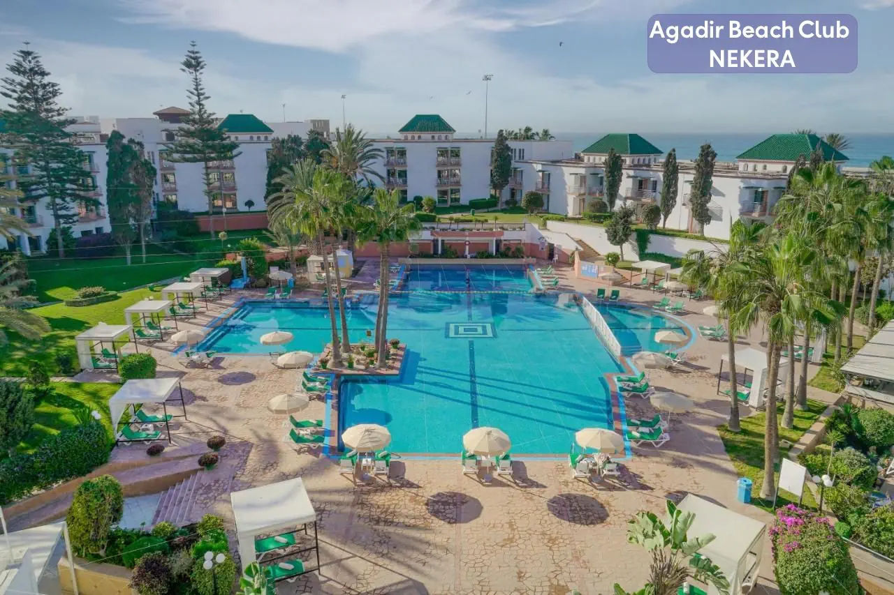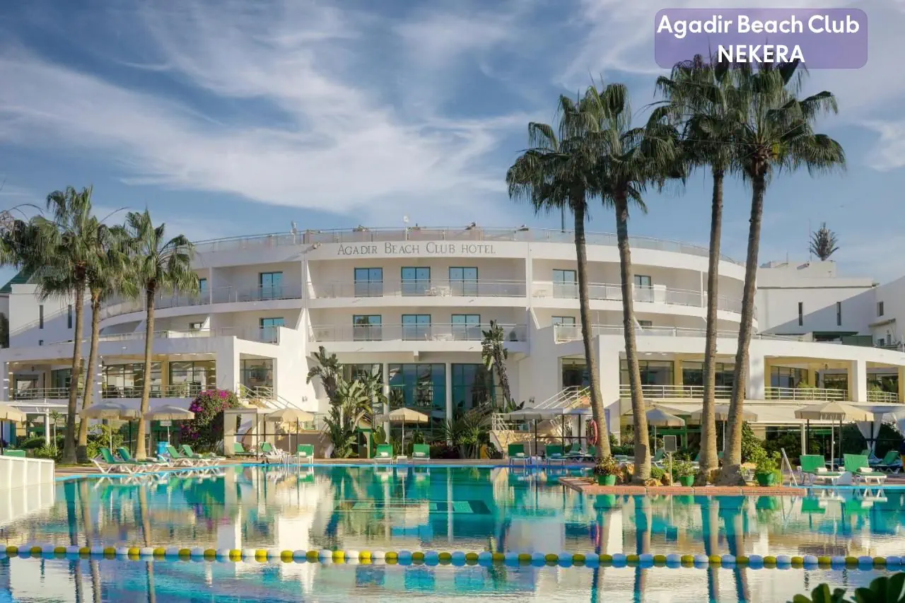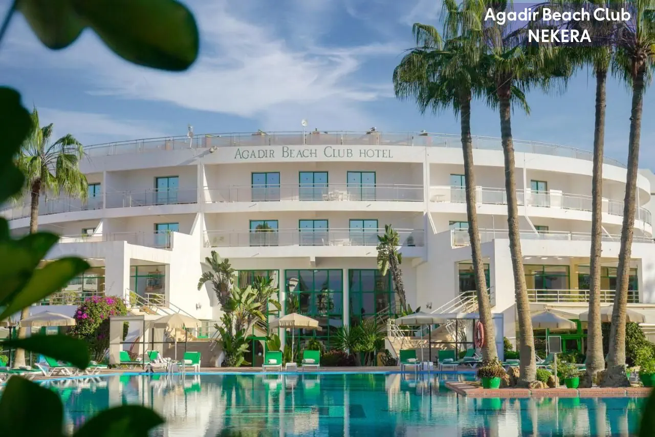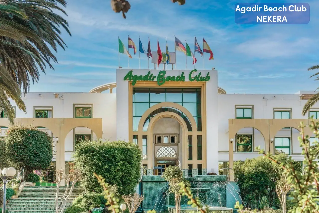 Czterogwiazdkowy, hotel Agadir Beach Club położony jest bezpośrednio przy pięknej, szerokiej plaży w Agadirze, jednym z najbardziej znanych kurortów nadmorskich w Maroku. Znajduje się zaledwie kilka minut spacerem od centrum miasta, gdzie goście mogą cieszyć się lokalnymi restauracjami, sklepami i atrakcjami turystycznymi. Dzięki swojej doskonałej lokalizacji, hotel oferuje nie tylko widoki na Ocean Atlantycki, ale również łatwy dostęp do tętniącego życiem miasta. Ten obiekt to doskonały wybór na relaksujący i komfortowy wypoczynek w sercu Agadiru. Dzięki bogatej ofercie gastronomicznej, różnorodnym udogodnieniom, licznym atrakcjom oraz doskonałej lokalizacji przy plaży, hotel spełnia oczekiwania zarówno par, rodzin, jak i osób podróżujących samotnie. To idealne miejsce na niezapomniane wakacje w Maroku
