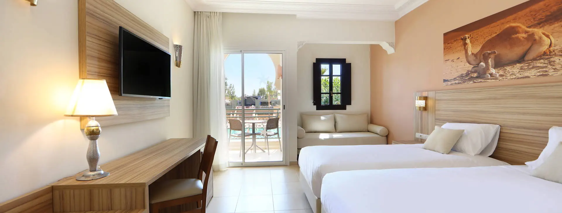 Położenie: Czterogwiazdkowy hotel miejski znanej sieci Iberostar, położony poza ścisłym centrum miasta u podnóża malowniczych gór Atlas, ok. 13 km od centrum Marrakeszu oraz popularnego placu Jemaa el-Fna, który znajduje się na liście Światowego dziedzictwa UNESCO życie tam tętni przez całą dobę (można tu spotkać m.in. zaklinaczy węży, połykaczy ognia, treserów małp czy skosztować marokańskich specjałów z przenośnych garkuchni). Hotel odnowiony na przełomie 2016/2017r. UWAGA!Pierwszy i ostatni nocleg realizowany w hotelu 3- lub 4-gwiazdkowym w Agadirze. Do dyspozycji gości: Obszerny hall z recepcją, winda, restauracja główna, restauracja marokańska a la carte, 3 bary: lobby bar (9:00 – 24:00), przy basenie (10:00 – 19:00), Zen Bar (10:00 – 18:00), duży basen zewnętrzny, basen dla dzieci z mini-aquaparkiem ze zjeżdżalniami, klub zabaw dla dzieci i nastolatków (od 4 do 12 roku życia), punkt wymiany walut, klub nocny La Gazelle (22:00 – 1:00). Przy basenach leżaki i parasole, ręczniki – bezpłatne. Za dodatkową opłatą: butik, fryzjer, SPA (9:00 – 18:00), wypożyczalnia samochodów. Hotel akceptuje karty kredytowe (VISA, MASTERCARD). Pokoje: Hotel dysponuje 318 pokojami różnego typu. Klientom oferujemy zakwaterowanie w pokojach standardowych (możliwa dopłata do pokoju z widokiem na ogród, basen lub góry) wyposażonymi w łazienkę z prysznicem, suszarkę do włosów, telefon, TV-sat, minibar i sejf (dostępne za dodatkową dopłatą), klimatyzację/ogrzewanie. W każdym pokoju balkon lub taras. Wyżywienie: All inclusive: śniadania (7.00-10:00), lunche (13:00 -15:00) i kolacje (18.30 – 21.30) w formie bogatego bufetu w restauracji głównej, lokalne napoje alkoholowe i bezalkoholowe do posiłków. 1 x na pobyt kolacja w restauracji a la carte (wymagana wcześniejsza rezerwacja). Przekąski w określonych godzinach dostępne w lobby barze i barze przy basenie. Piwo, lokalne i importowane napoje alkoholowe oraz napoje niealkoholowe są serwowane do godziny 24:00 w hotelowych barach. Program sportowy i animacyjny: Hotel prowadzi bogate animacje dla dzieci i dorosłych w ciągu dnia (gry i zawody). Wieczorami muzyka na żywo oraz różnego rodzaju przedstawienia. Na terenie hotelu do dyspozycji gości znajdują się korty tenisowe, boisko multisportowe, siłownia, fitness. Za dodatkową opłatą: lekcje golfa, lekcje tenisa, wypożyczalnia rowerów, wypożyczalnia quadów, lekcje jazdy konnej, łucznictwo, zabiegi SPA. Internet: Bezpłatny internet Wi-Fi na terenie całego hotelu oraz w pokojach. Kategoria lokalna: **** Strona www: