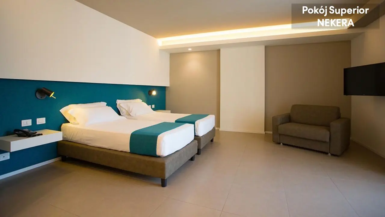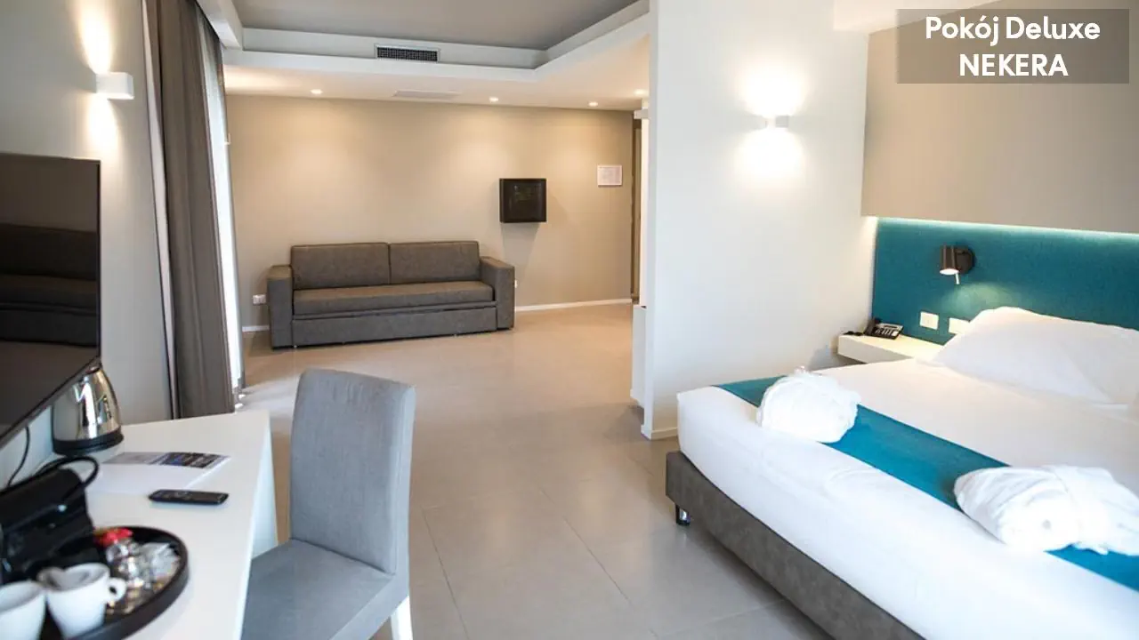Noclegi, wyżywienie zgodnie z rezerwacją, telefoniczną opiekę rezydenta. Dodatkowo w przypadku imprez pakietowych z przelotem, oprócz ww. świadczeń w cenie zawarty jest: przelot, opłata lotniskowa, opłata za wylot z lotniska lokalnego, transfer lotnisko-hotel-lotnisko (chyba, że dana oferta stanowi inaczej), ubezpieczenie dla imprez turystycznych, bezpośrednia opieka polskojęzycznego rezydenta - w sezonie letnim (wakacyjnym): Kreta, Rodos, Turcja (Riwiera), Majorka, Bułgaria, całorocznie: Malta, na pozostałych kierunkach opieka telefoniczna lub przez czat w serwisie moja.nekera.pl. W przypadku imprez turystycznych opartych o przeloty przewóz bagażu może być nieuwzględniony w cenie. Cena uzależniona jest m.in. od przewoźnika oraz terminu wyjazdu, należy ją zweryfikować podczas zakupu. Linie lotnicze, w których bagaż jest w cenie (20 kg bagaż główny oraz bagaż podręczny) - przeloty czarterowe: Enter Air, LOT (dla wylotów na Rodos), Sky Express, Holiday Europe, European Air Charter, Ryan Sun (dla wylotów na Rodos) oraz przeloty rejsowe: Sun Express, Corendon, Pegasus Airlines, Emirates, Fly Dubai, Quatar Airlines, Air France, Austrian Airlines.Przykładowe linie lotnicze, gdzie bagaż jest dodatkowo płatny to: FR (Ryanair), W6 (WizzAir), Easy Jet. Podane godziny serwowania posiłków oraz funkcjonowania poszczególnych elementów infrastruktury hotelowej mogą ulec nieznacznym zmianom, ze względu na sezonowość, siły wyższe i inne okoliczności.