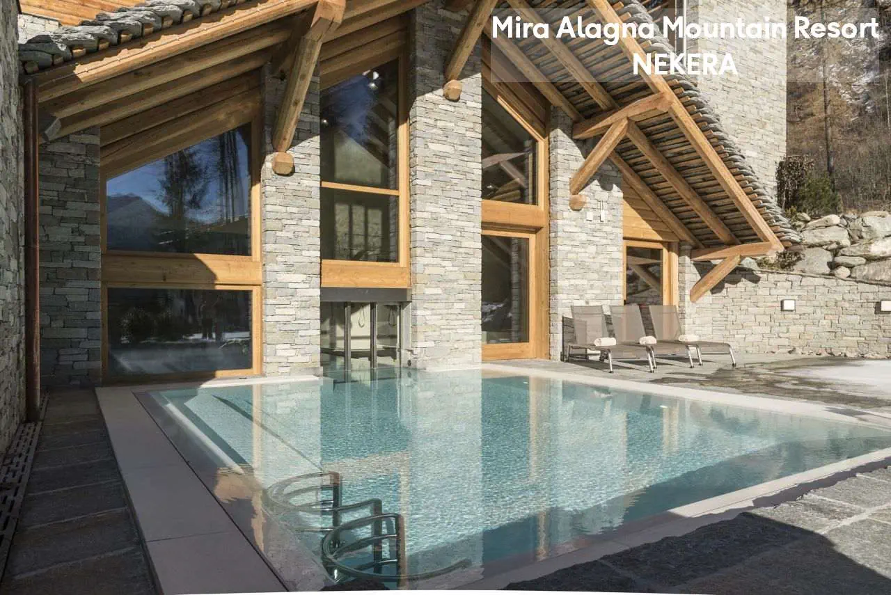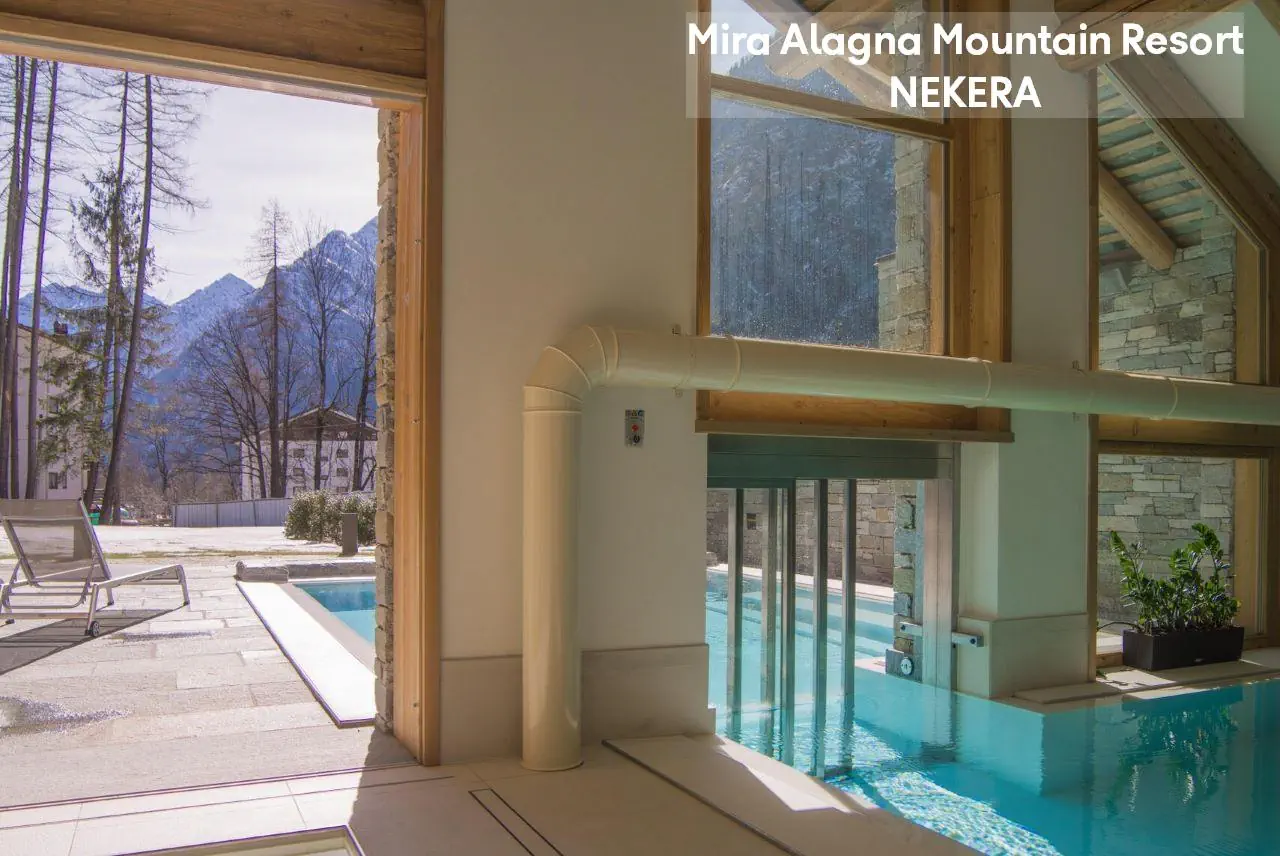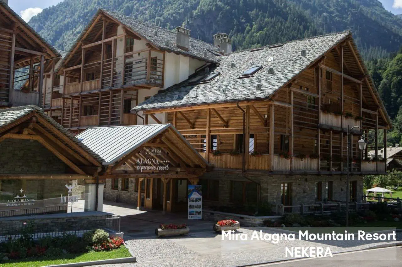 w spokojnej dolinie, w niewielkiej miejscowości Alagna Valsesia, w regionie narciarskim Monte Rosa (Alpy Piemonckie). Najbliższe stoki narciarskie oddalone o ok. 200 m. od hotelu, kolejka linowa Alagna-Pianalunga Gondola oddalona o ok. 600 m. Prywatne i lokalne skibusy do wyciągów narciarskich w sezonie zimowym, w określonych godzinach gratis.