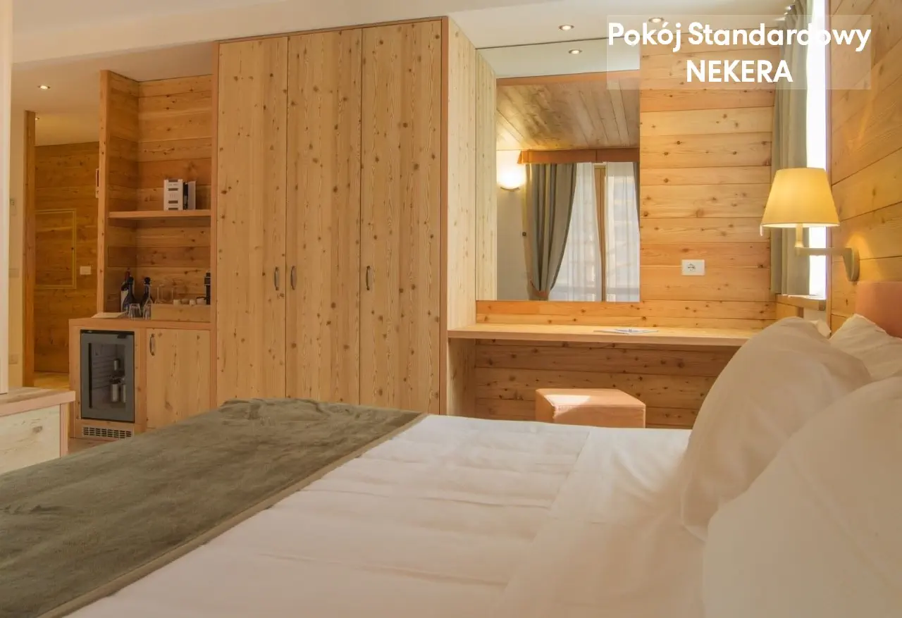 komfortowe, gustownie urządzone w alpejskim stylu Pokoje Dwuosobowe Standard (DBL STANDARD): ok. 30-32 m2; strefa dzienna z rozkładaną sofą oraz łóżko małżeńskie. Dla 2-4 soób. Ogrzewanie, TV-Sat., telefon, sejf, minibar (za opłatą), zestaw do parzenia kawy / herbaty, niektóre pokoje z balkonem / tarasem (bez gwarancji dostępności), łazienka z przysznicem, WC, suszarką. Zestaw do Spa (ręcznik kąpielowy, kapcie, szlafrok). Łóżeczko dla dziecka do 2 lat na zapytanie, za opłatą 10 EUR / doba.