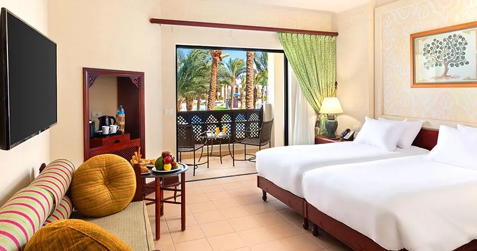 Pokój Standard ok. 30 m² Bezpłatne WI-FI Łazienka z prysznicem, WC Suszarka do włosów Klimatyzacja Telefon - płatny TV-Sat Minibar - płatny (codziennie butelka wody mineralnej bezpłatnie) Zestaw do zaparzania herbaty i kawy - codziennie uzupełniany Sejf - bezpłatny Balkon lub taras Pokój z widokiem na ogród (standard GV) Pokój z widokiem na basen (standard pool view) Pokój Family Inter-leading Składa się z małego przedsionka, z którego prowadzą drzwi do dwóch sypialni i dwóch łazienek