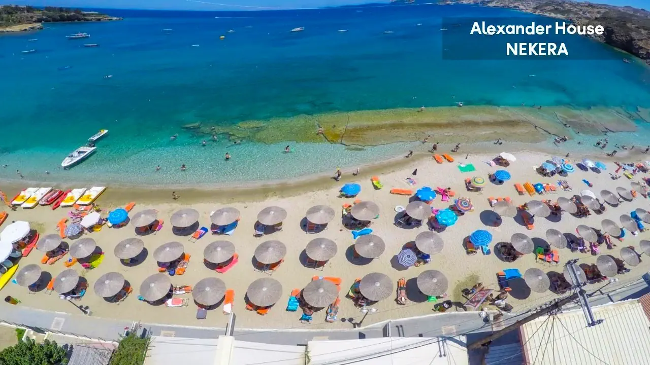 • ok. 150 m od hotelu • piaszczysta, publiczna, zatokowa • łagodne zejście do wody • leżaki i parasole słoneczne (płatne) • tawerny (płatne)