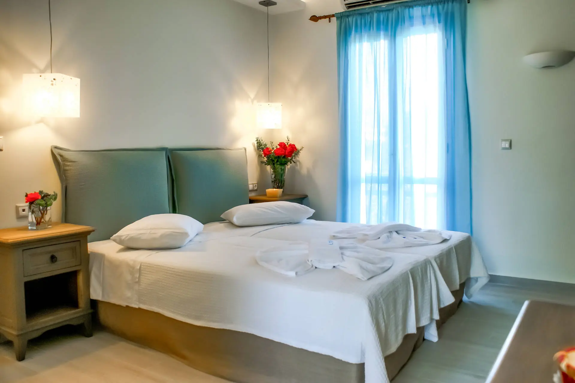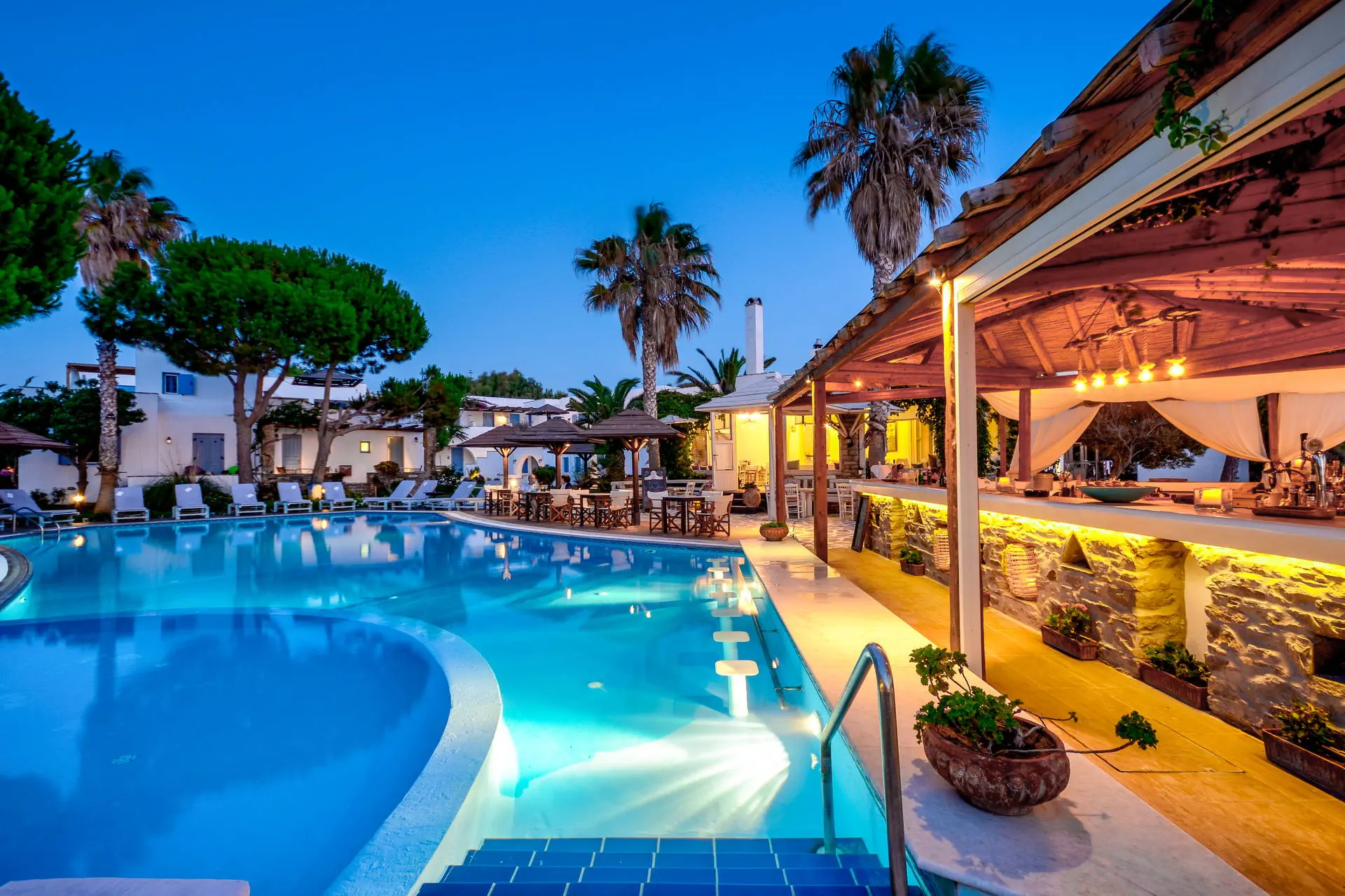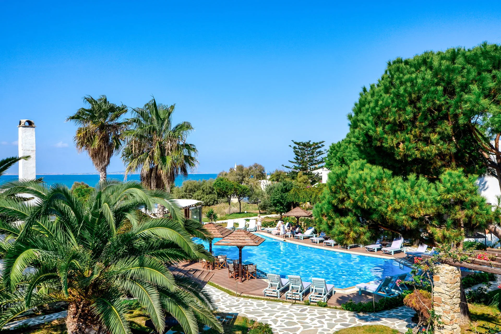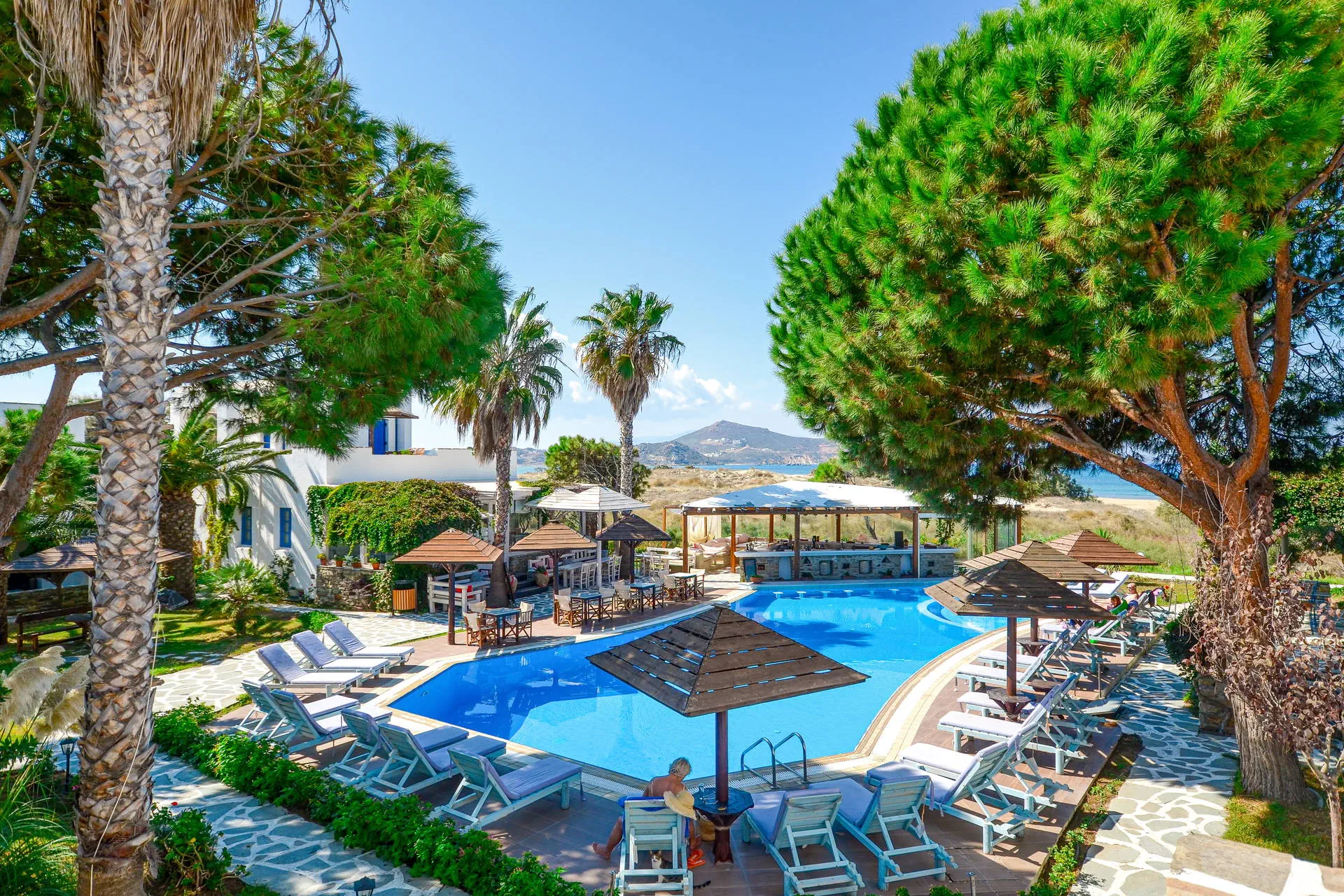 Kategoria lokalna **** Strona www Położenie Alkyoni Beach to elegancki hotel położony w otoczeniu zadbanego ogrodu, kilka minus spacerem od Naxos Town, stolicy wyspy. Wieczorami miasto tętni życiem, w prawdziwej greckiej atmosferze. Samo Naxos poszczycić się może najpiękniejszymi plażami spośród wszystkich wysp należących do archipelagu Cyklady, z którymi jest dobrze skomunikowana. W centrum miasta znajduje się port oferujący połączenia m.in. z Santorini i Mykonos. Na Naxos w lipcu i sierpniu organizowany jest festiwal, w ramach którego dostępne są takie atrakcje jak: kino pod gwiazdami, pokazy tańca, sztuki teatralne. Transfer z lotniska do hotelu trwa ok. 3 - 3,5 godz. (obejmuje przeprawę promową). Cena nie obejmuje lokalnego podatku turystycznego w wysokości 3 EUR/pokój/dzień. Podatek jest obligatoryjny i płatny bezpośrednio w recepcji, przed zakwaterowaniem Klientów w hotelu. Plaża Najbliższa plaża w centrum Naxos Town znajduje się ok. 150 m od hotelu. Leżaki i parasole - dodatkowo płatne (ok. 7 EUR/komplet). Do dyspozycji gości Recepcja z lobby, parking, restauracja, basen zewnętrzny z tarasem słonecznym (leżaki i parasole bezpłatnie), bar przy basenie, restauracja a'la carte (dodatkowo płatna). Pokoje Komfortowo urządzone pokoje 2 - osobowe z łazienkami i balkonami lub tarasami (meble ogrodowe). Pokoje wyposażone są w klimatyzację (indywidualnie sterowana, bezpłatna), TV - sat, lodówkę, sejf (bezpłatny), minibar (dodatkowo płatny). W łazience suszarka do włosów. Wyżywienie Śniadania w formie bufetu. Program sportowy i animacyjny Na plaży sporty wodne (dodatkowo płatne). Internet Internet Wi-Fi dostepny w pokojach i lobby (bezpłatnie). Naszym zdaniem Zadbany, zdudowany w cykladzkim stylu, zatopiony w pięknym ogordzie hotel. Zapraszamy do relaksu przy ładnie zaaranżowanym basenie z widokiem na morze i Naxos Town.