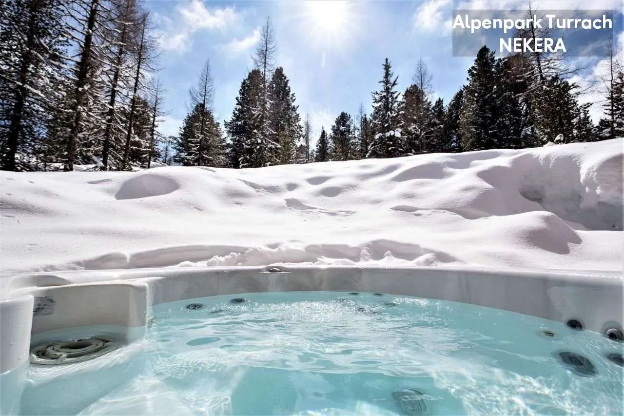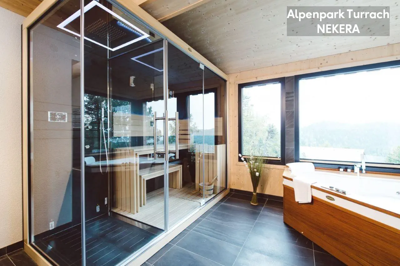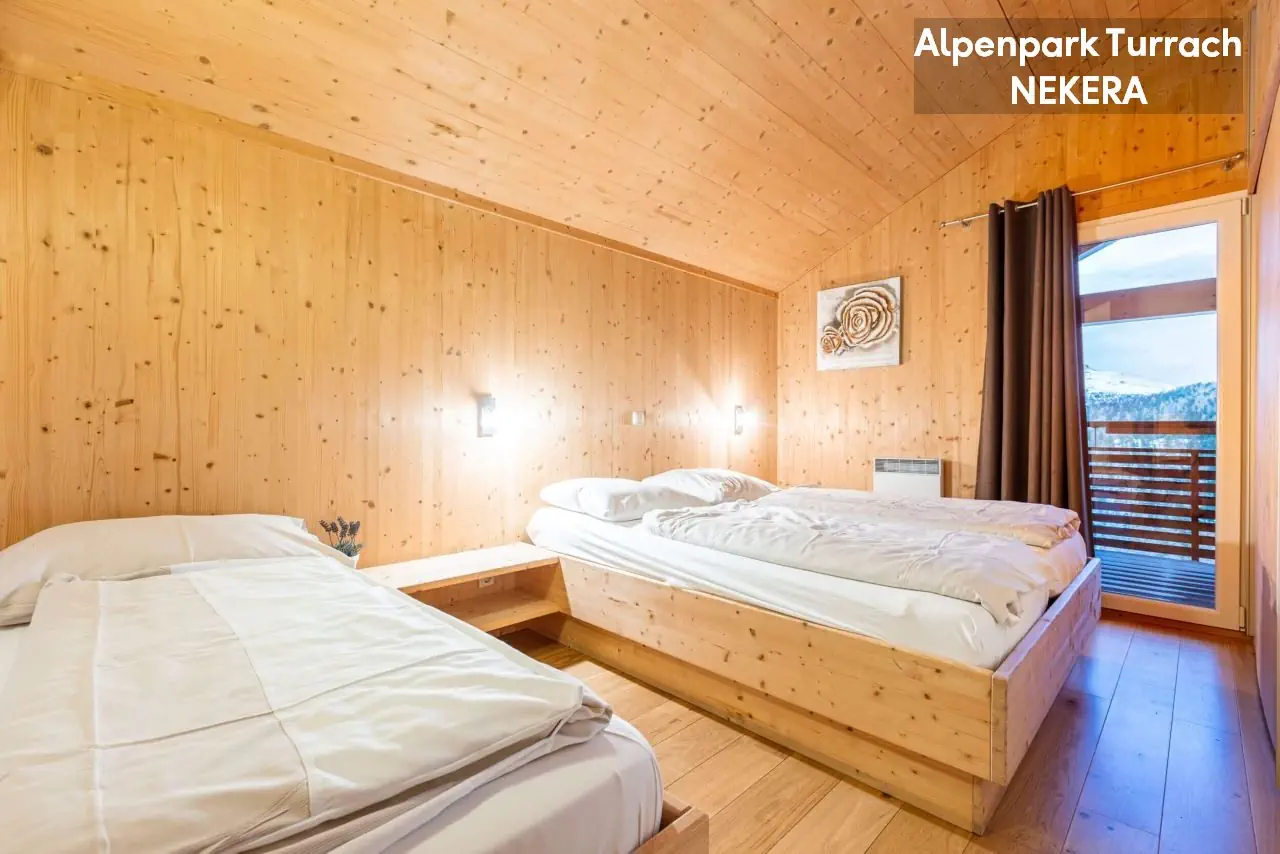 Chalet Superior z prywatnym Spa dla 6 osób: ok. 100-120 m2; 3 sypialnie oraz pokój dzienny z aneksem kuchennym i kącikem jadalnym oraz TV-Sat. Aneks kuchenny wyposażony w: płytę ceramiczną, piekarnik, zmywarkę, lodówkę z zamrażarką, toster, czajnik elektryczny, ekspres do kawy, naczynia i sztućce. Łazienna Spa z wanną z whirlpoolem lub okrągłym jacuzzi, prysznic wellness oraz kabina na podczerwień. Dodatkowe 2 łazienki z prysznicami i WC. Chalet Superior z prywatnym Spa dla 8 osób: ok. 120 m2; 4 sypialnie oraz pokój dzienny z aneksem kuchennym i kącikem jadalnym oraz TV-Sat. Aneks kuchenny wyposażony w: płytę ceramiczną, piekarnik, zmywarkę, lodówkę z zamrażarką, toster, czajnik elektryczny, ekspres do kawy, naczynia i sztućce. Łazienna Spa z wanną z whirlpoolem lub okrągłym jacuzzi, prysznic wellness oraz kabina na podczerwień. Dodatkowe 2 łazienki z prysznicami i WC. Chalet Superior z prywatnym Spa dla 10 osób: ok. 120 m2: 4 sypialnie oraz pokój dzienny z rozkładaną sofą dla 2 osób, z aneksem kuchennym i kącikem jadalnym oraz TV-Sat. Aneks kuchenny wyposażony w: płytę ceramiczną, piekarnik, zmywarkę, lodówkę z zamrażarką, toster, czajnik elektryczny, ekspres do kawy, naczynia i sztućce. Łazienna Spa z wanną z whirlpoolem lub okrągłym jacuzzi, prysznic wellness oraz kabina na podczerwień. Dodatkowe 2 łazienki z prysznicami i WC. Uwaga: komplet pościeli i ręczników za dodatkową opłatą ok. 14,90 EUR / od osoby, do zapłaty na miejscu na recepcji.