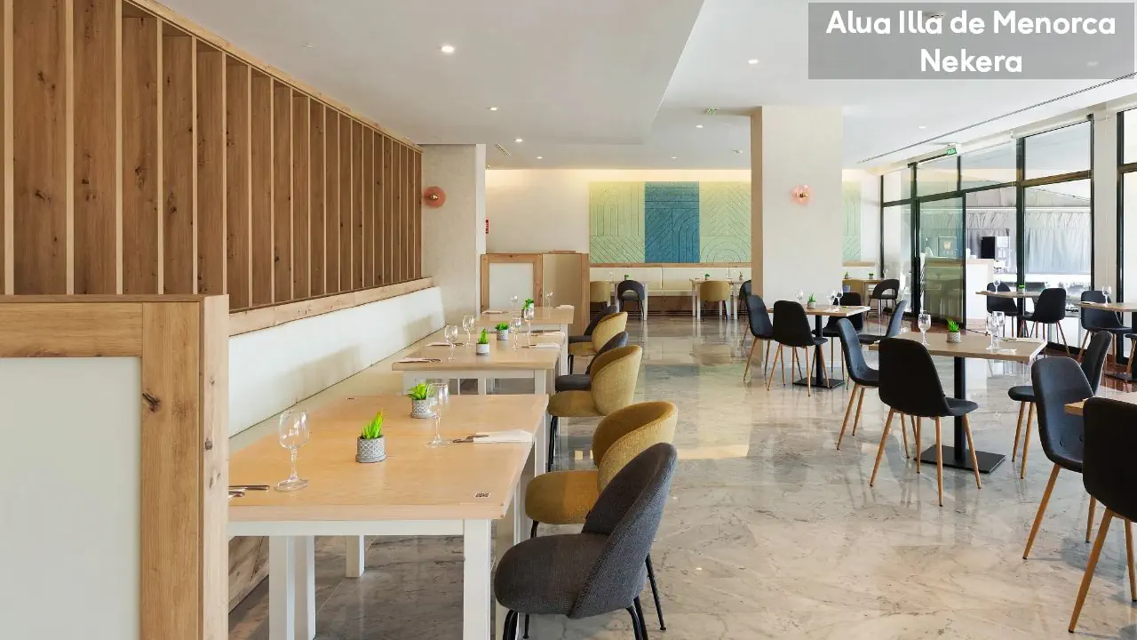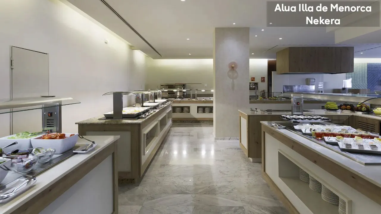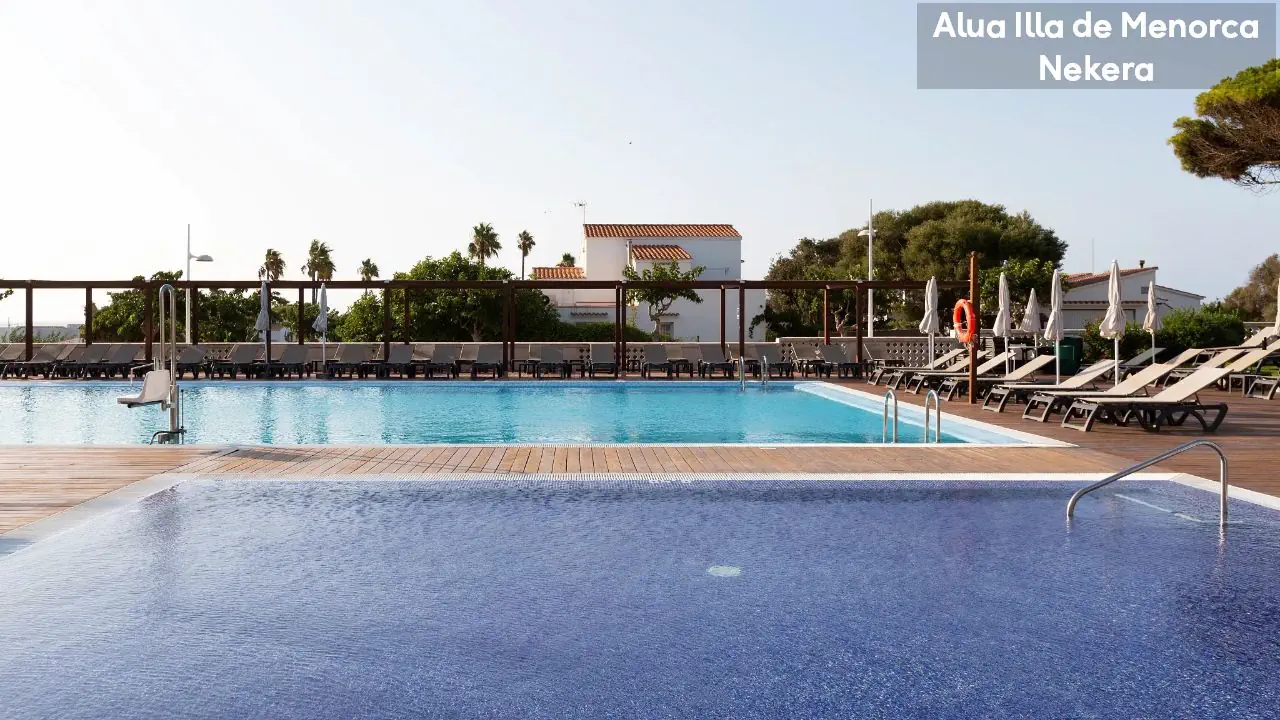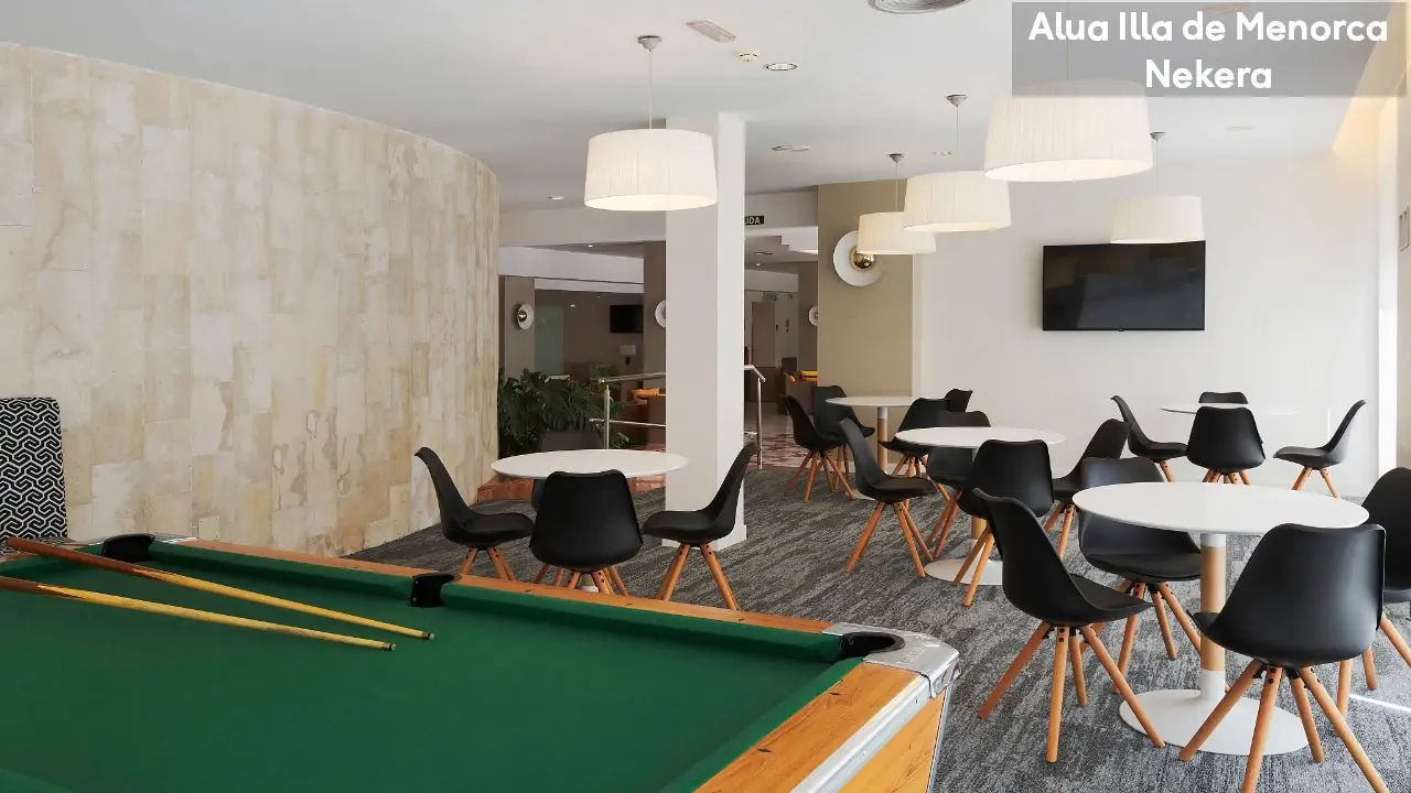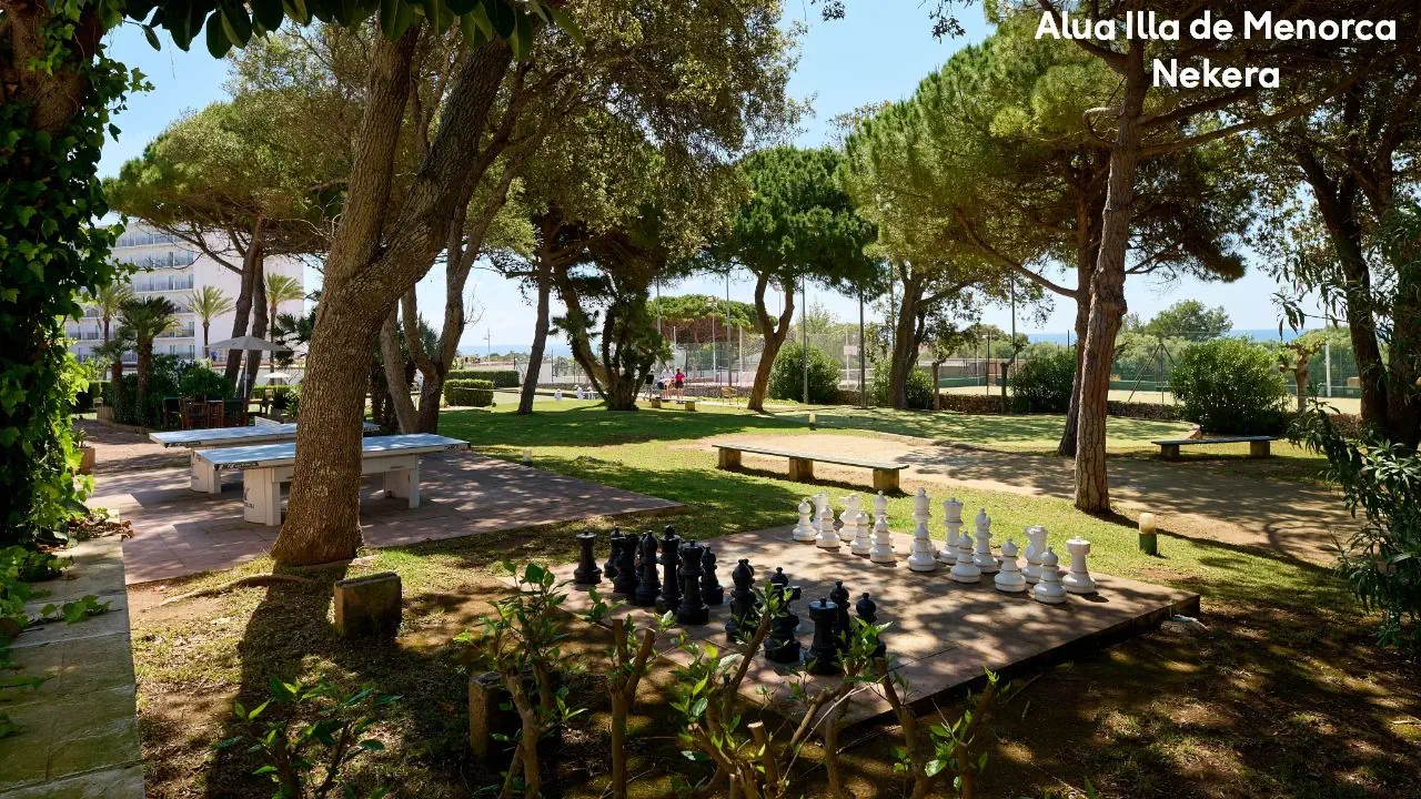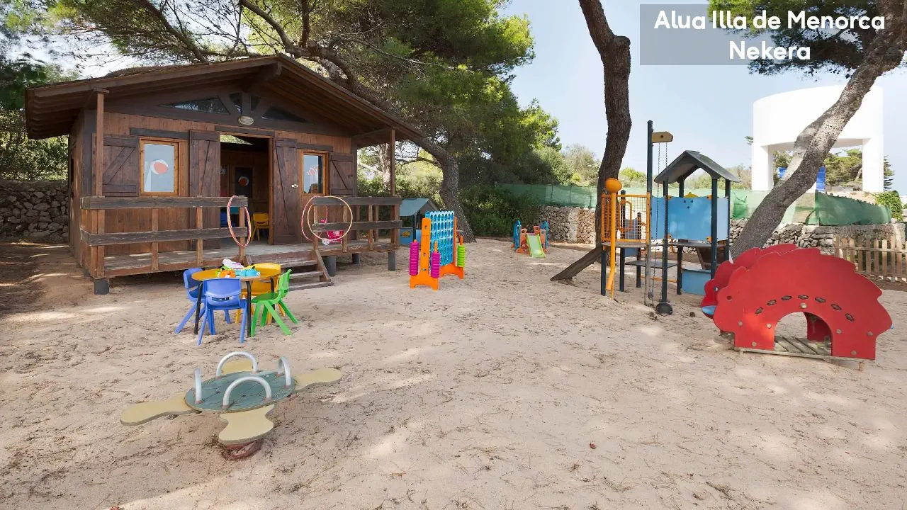Hotel Alua Ilha de Menorka posiada 228 pokoi. Do dyspozycji gości pozostają: dwa baseny: zewnętrzny oraz dla dzieci; bary w lobby oraz przy basenie, recepcja, ogród, taras. Dla najmłodszych przygotowano specjalny mini klub, plac zabaw i mini dyskotekę. Wielbiciele sportu mogą skorzystać z bogatej oferty zajęć rekreacyjnych (m.in. tenis, szkoła nurkowania – dodatkowo płatne)