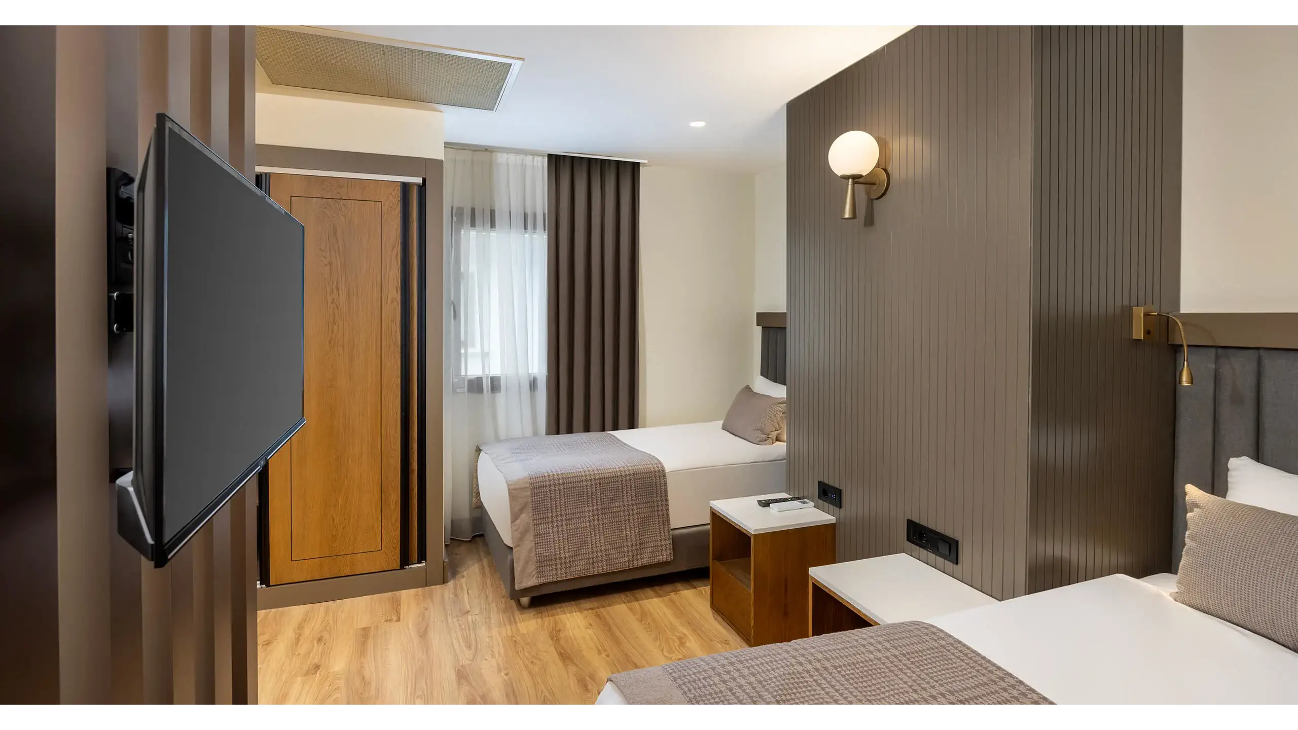 Dla max. 3 osób, Przestrzeń zewnętrzna: Balkon, Kanały telewizji: Angielski, Telefon w pokoju, prysznic, Powierzchnia pokoju: ok. 35 m2, Dostawka: sofa, Rodzaj podłogi: laminat, Sprzątanie codziennie, 1 sypialnia, Maksymalna liczba osób dorosłych: 3, Maksymalna liczba dzieci: 2, Widok na ogród, Liczba łazienek: 1, Liczba toalet: 1, Zestaw do parzenia kawy i herbaty, Klimatyzacja: Klimatyzacja centralna, Działa w godzinach: 24h