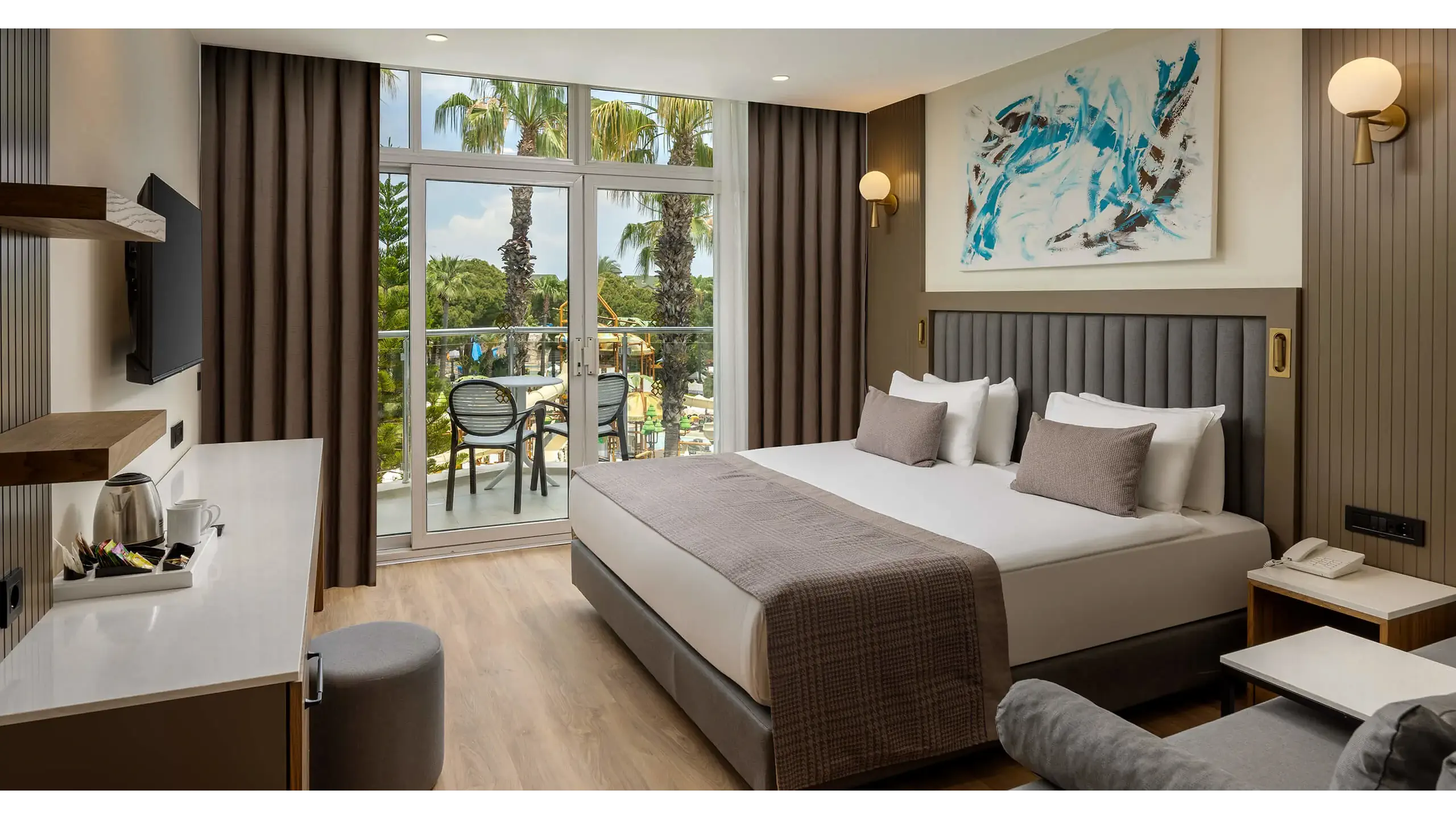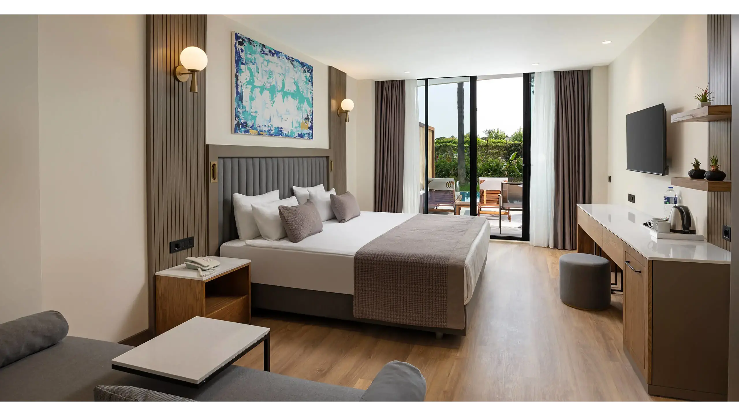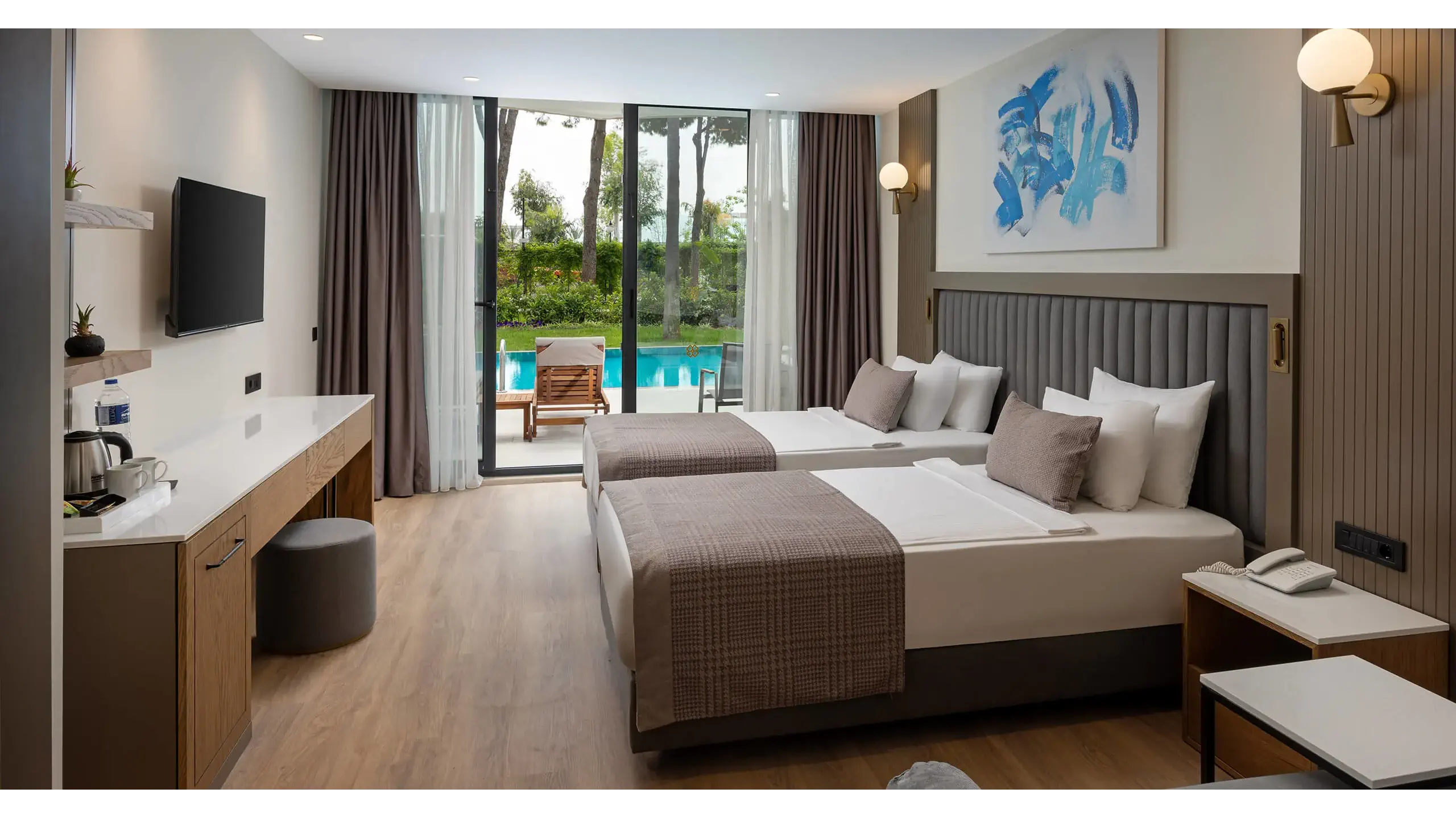 Dla max. 3 osób, Przestrzeń zewnętrzna: Balkon, Kanały telewizji: Angielski, Telefon w pokoju, prysznic, Powierzchnia pokoju: ok. 35 m2, Dostawka: sofa, Rodzaj podłogi: laminat, Sprzątanie codziennie, 1 sypialnia, Maksymalna liczba osób dorosłych: 3, Maksymalna liczba dzieci: 2, Widok na basen, Liczba łazienek: 1, Liczba toalet: 1, Zestaw do parzenia kawy i herbaty, Klimatyzacja: Klimatyzacja centralna, Działa w godzinach: 24h