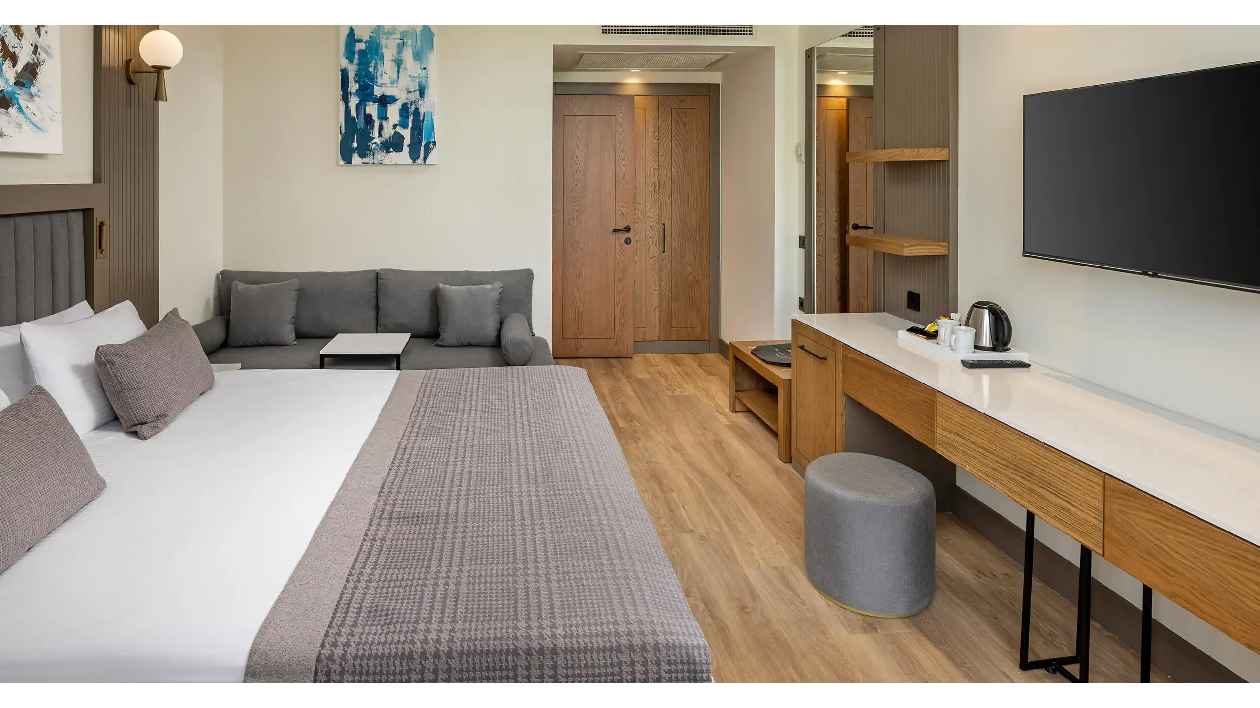 Dla max. 4 osób, Przestrzeń zewnętrzna: Balkon, Kanały telewizji: Angielski, Telefon w pokoju, prysznic, Powierzchnia pokoju: ok. 56 m2, Dostawka: sofa, Rodzaj podłogi: laminat, Sprzątanie codziennie, 2 sypialnie, Drzwi łączące między pokojami, Maksymalna liczba osób dorosłych: 4, Maksymalna liczba dzieci: 3, Widok na dziedziniec,Od strony basenu,Widok na basen, Liczba łazienek: 2, Liczba toalet: 2, Zestaw do parzenia kawy i herbaty, Klimatyzacja: Klimatyzacja centralna, Działa w godzinach: 24h, Kwiecień, Maj, Czerwiec, Lipiec, Sierpień, Wrzesień, Październik