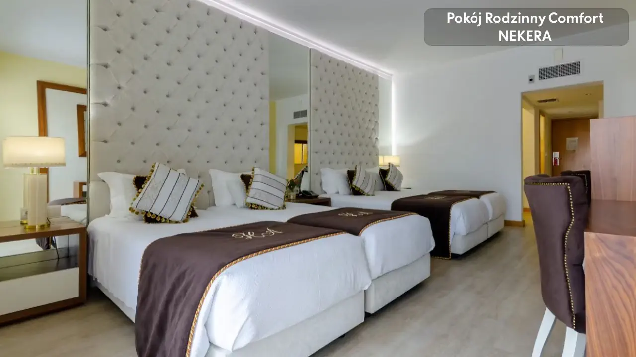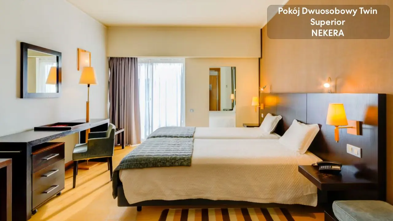 Noclegi, wyżywienie zgodnie z rezerwacją, telefoniczną opiekę rezydenta. Dodatkowo w przypadku imprez pakietowych z przelotem, oprócz ww. świadczeń w cenie zawarty jest: przelot, opłata lotniskowa, opłata za wylot z lotniska lokalnego, transfer lotnisko-hotel-lotnisko (chyba, że dana oferta stanowi inaczej), ubezpieczenie dla imprez turystycznych, bezpośrednia opieka polskojęzycznego rezydenta - w sezonie letnim (wakacyjnym): Kreta, Rodos, Turcja (Riwiera), Majorka, Bułgaria, całorocznie: Malta, na pozostałych kierunkach opieka telefoniczna lub przez czat w serwisie moja.nekera.pl. W przypadku imprez turystycznych opartych o przeloty przewóz bagażu może być nieuwzględniony w cenie. Cena uzależniona jest m.in. od przewoźnika oraz terminu wyjazdu, należy ją zweryfikować podczas zakupu. Linie lotnicze, w których bagaż jest w cenie (20 kg bagaż główny oraz bagaż podręczny) - przeloty czarterowe: Enter Air, LOT (dla wylotów na Rodos), Sky Express, Holiday Europe, European Air Charter, Ryan Sun (dla wylotów na Rodos) oraz przeloty rejsowe: Sun Express, Corendon, Pegasus Airlines, Emirates, Fly Dubai, Quatar Airlines, Air France, Austrian Airlines.Przykładowe linie lotnicze, gdzie bagaż jest dodatkowo płatny to: FR (Ryanair), W6 (WizzAir), Easy Jet. Podane godziny serwowania posiłków oraz funkcjonowania poszczególnych elementów infrastruktury hotelowej mogą ulec nieznacznym zmianom, ze względu na sezonowość, siły wyższe i inne okoliczności.