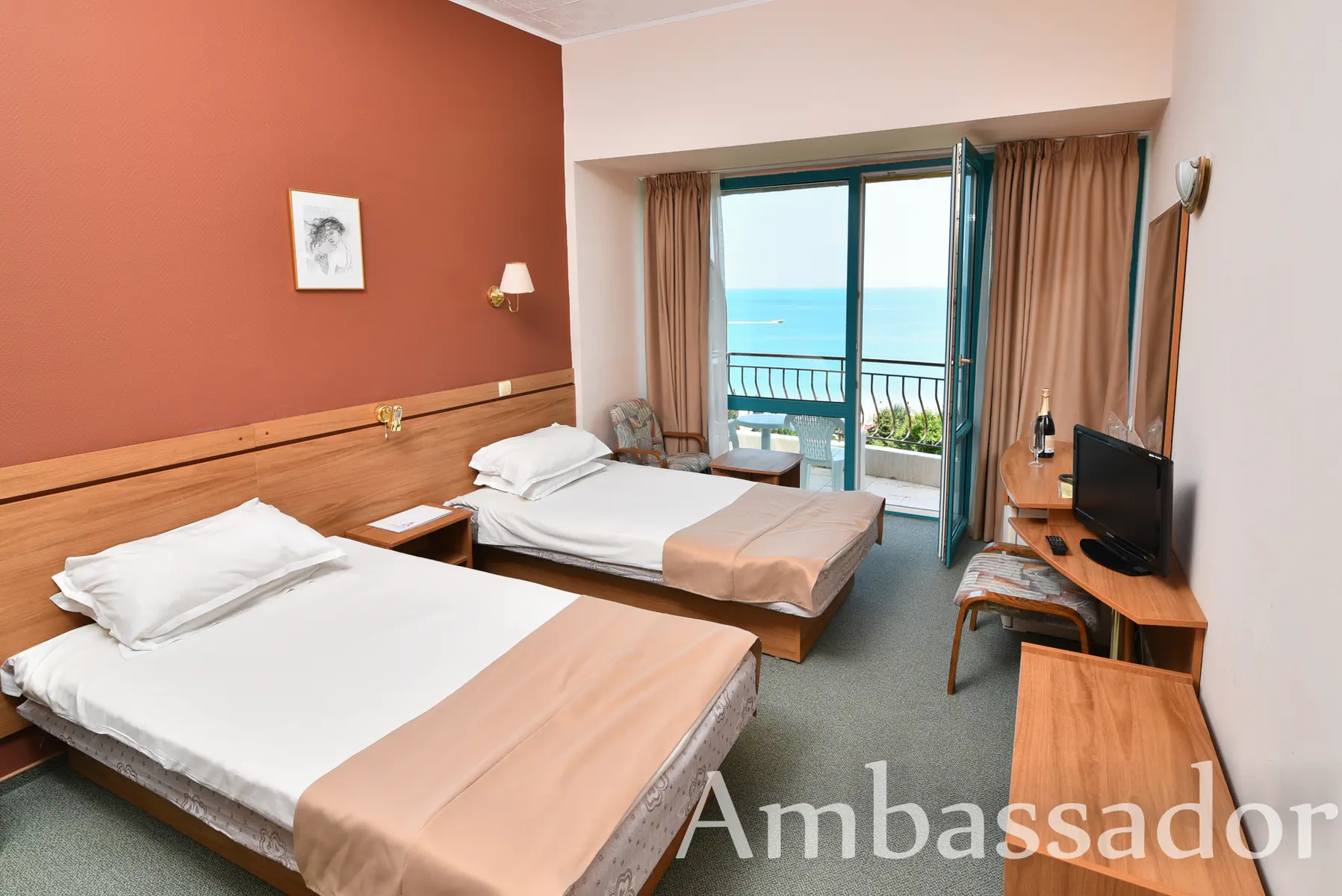 Hotel Ambassador to skromny ale wygodny obiekt, przeznaczony dla gości którzy cenią sobie bliskość centrum Złotych Piasków i piaszczystej plaży. Dwa warianty wyżywienia, smaczna kuchnia, basen zewnętrzny z wydzielonym brodzikiem dla dzieci oraz centrum SPA to tylko niektóre z atutów tego hotelu.