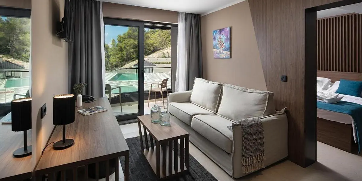Otwarty w 2024 roku na malowniczej wyspie Korčula czterogwiazdkowy Aminess Alfir Resort to świetne miejsce na urlop w Chorwacji. Położony zaledwie 450 m od najbliższej plaży, z zewnętrznymi basenami i widokami na Adriatyk stwarza idealne warunki do odpoczynku. Udogodnienia: Basen zewnętrzny, Basen dla dzieci, SPA, Sauna, Masaże, Wellness, Zabiegi odnowy biologicznej, Bar / restauracja, Plac zabaw dla dzieci, Sporty wodne, Klimatyzacja, Pobyt z pupilem, Winda, Parking strzeżony / monitorowany, Parking, Płatność kartą, Przy plaży
