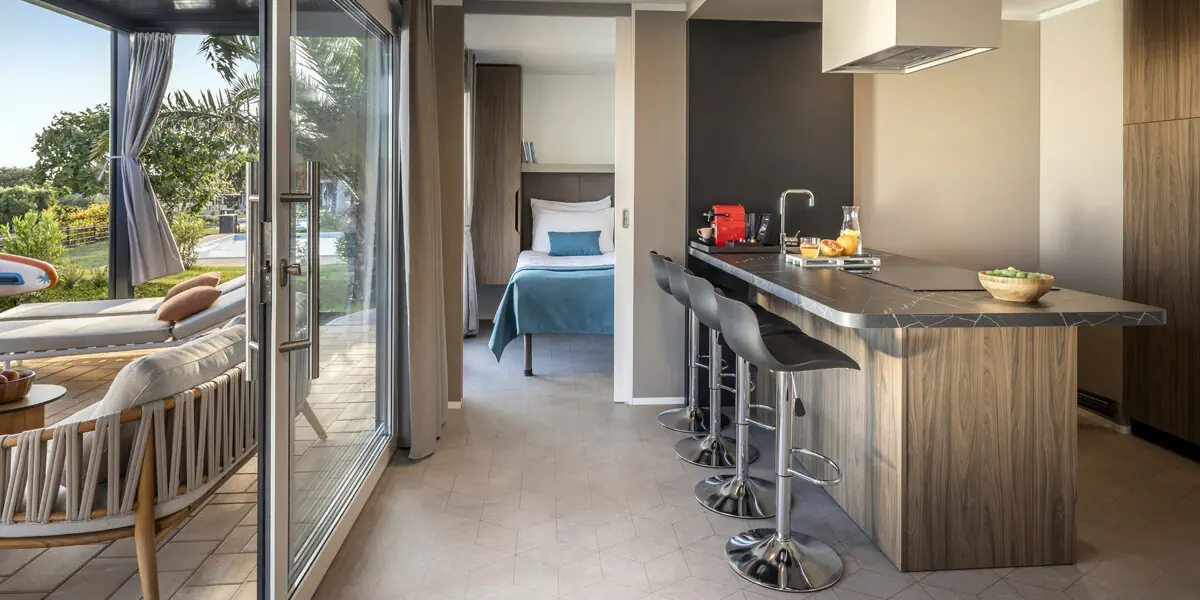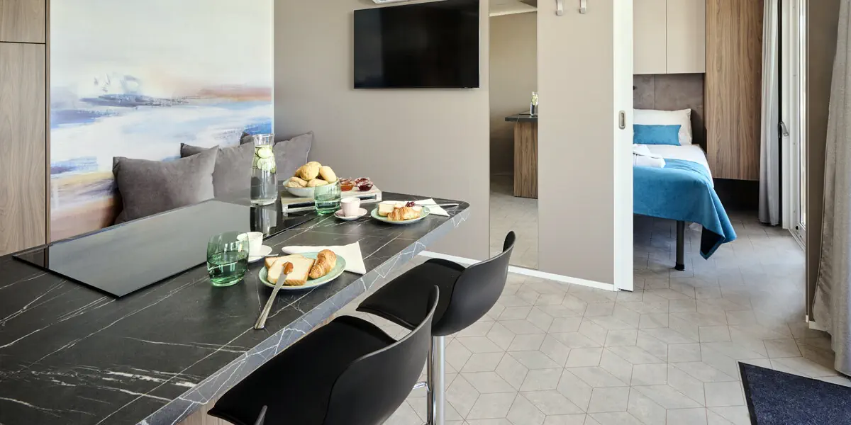 Aminess Sirena Holiday Homes**** mieści się nad samym Adriatykiem, na zachodnim wybrzeżu półwyspu Istria, 1 km na wschód od centrum Novigradu.