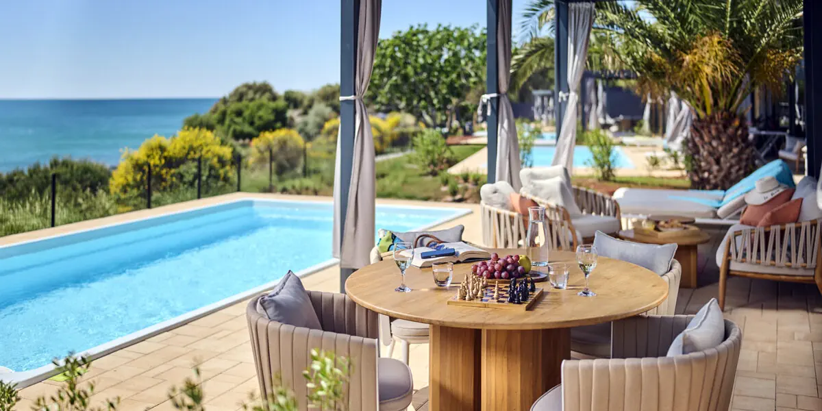 Nowoczesny domek z 2025 roku! Domek posiada prywatny basen oraz widok na morze. Jest klimatyzowany i wyposażony w wysokim standardzie. Ma 2 sypialnie, przestronny salon, duży taras (27 m2), prywatny basen (41 m2), 2 łazienki z prysznicami i w pełni wyposażony aneks kuchenny. Do tego 4 leżaki, a na tarasie stół i 4 krzesła