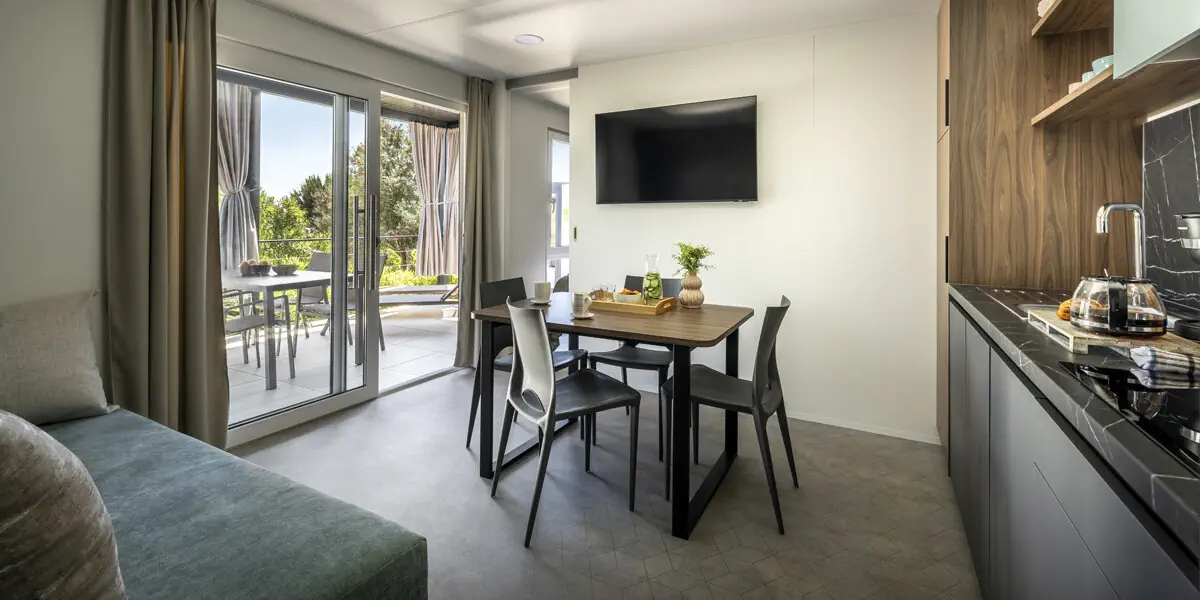 Aminess Sirena Holiday Homes**** to kompleks klimatyzowanych wakacyjnych domków wspaniale usytuowanych w sosnowym lesie nad spokojną adriatycką zatoką. Mieści się przy pięknej plaży wyróżnionej Błękitną Flagą, zaledwie kwadrans spacerem od starego miasta Novigradu. Udanym wypoczynkiem nacieszą się tutaj wszyscy miłośnicy swobodnych słonecznych wakacji. Udogodnienia: Basen zewnętrzny, Bar / restauracja, Sala zabaw dla dzieci, Kącik zabaw dla dzieci, Animacje dla dzieci, Ogród / Park, Plac zabaw dla dzieci, Kort tenisowy, Minigolf, Sporty wodne, Klimatyzacja, Pobyt z pupilem, Parking, Płatność kartą, Przy plaży