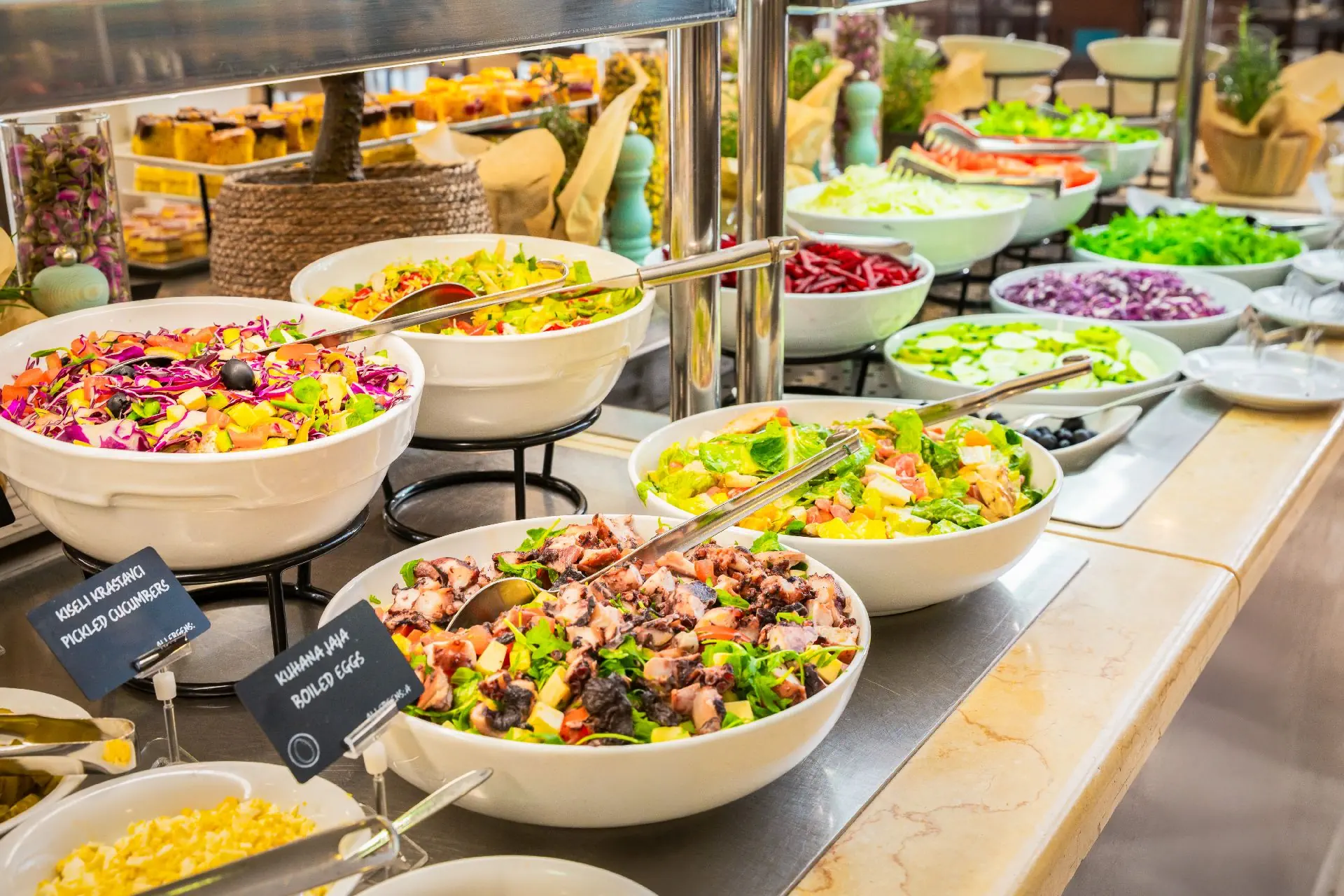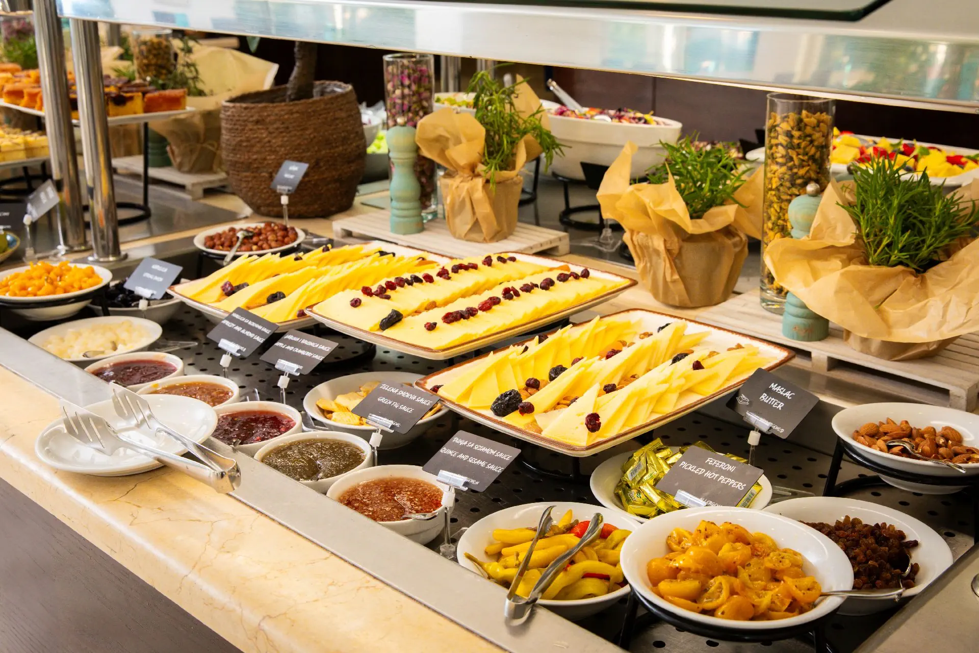 HALF BOARD+ w terminie 18.04.-31.10.2026: śniadania (07:00-10:00) i obiadokolacje (19:00-21:00) w formie bufetu. W terminie 18.04.-31.10.2026 napój z dystrybutora do obiadokolacji w cenie (lokalne wino i piwo, napoje bezalkoholowe, woda mineralna).