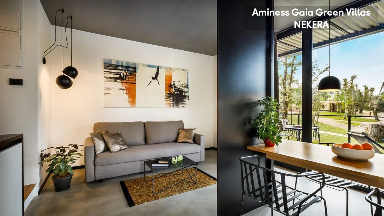 kompleks składa się z nowoczesnych, wolnostojących willi otoczonych zielenią, stanowiących niezależną część resortu Njivice. Do dyspozycji Gości: recepcja Aminess Njivice (check-in/out), rozległy teren zielony z alejkami spacerowymi, dostęp do kompleksu basenowego w Aminess Style Camping Atea Resort oraz możliwość korzystania z centrum fitness w pobliskim hotelu Magal by Aminess (dodatkowo płatne). Na terenie resortu znajdują się bary i restauracje, w tym 7 Seas Restaurant & Bar z ofertą a la carte oraz inne restauracje i beach bary przy plaży – wszystkie usługi gastronomiczne są dodatkowo płatne.