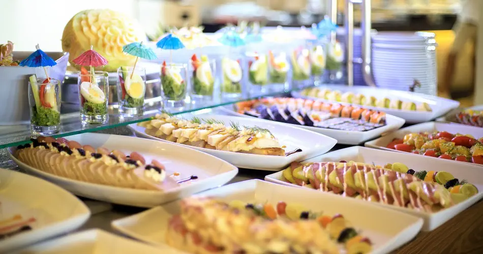 All Inclusive: Śniadanie, obiad, kolacja w formie bufetu w restauracji głównej Wczesne śniadanie, późne śniadanie i kolacja Przekąski, lody w ciągu dnia w barach wskazanych przez hotel Napoje bezalkoholowe i alkohole lokalnej produkcji w barach wskazanych przez hotel w godzinach 10:00-24:00