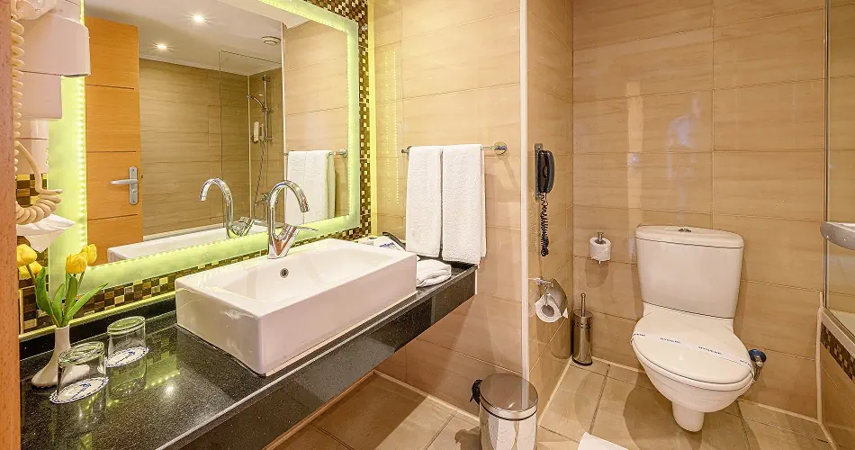 Recepcja 3 restauracje, 8 barów 3 baseny w tym jeden połączony z basenem dla dzieci (jeden podgrzewany w sezonie zimowym) Aquapark dla dzieci i dorosłych (strefa dla dzieci podgrzewana w sezonie zimowym) Dla dzieci: plac zabaw, program animacyjny, mini klub (4-12 lat), łóżeczko dla dziecka do 2 lat, na zapytanie - bezpłatne Centrum Spa (masaże, jacuzzi, sauna, łaźnia parowa, łaźnia turecka, hamam, salon urody, fryzjer) - płatne Opieka medyczna, apteka - płatne Sklepy - płatne Pralnia - płatna Oficjalna kategoria 4*