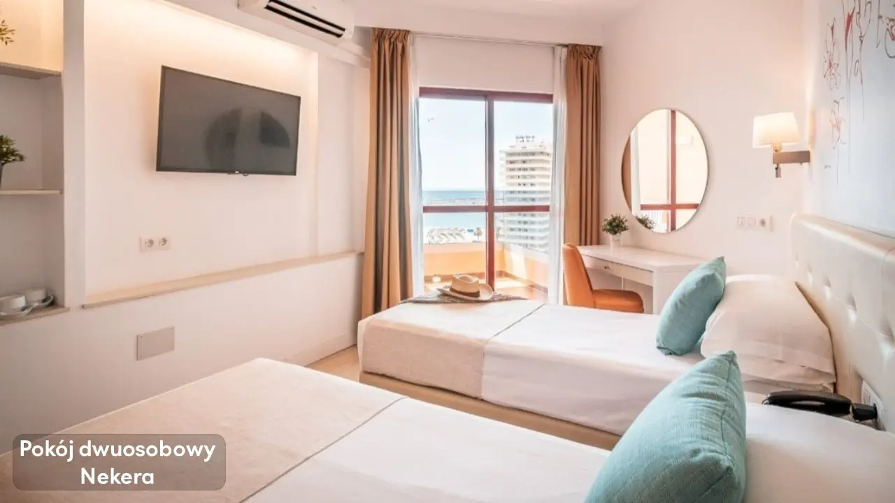 Noclegi, wyżywienie zgodnie z rezerwacją, telefoniczną opiekę rezydenta. Dodatkowo w przypadku imprez pakietowych z przelotem, oprócz ww. świadczeń w cenie zawarty jest: przelot, opłata lotniskowa, opłata za wylot z lotniska lokalnego, transfer lotnisko-hotel-lotnisko (chyba, że dana oferta stanowi inaczej), ubezpieczenie dla imprez turystycznych, bezpośrednia opieka polskojęzycznego rezydenta - w sezonie letnim (wakacyjnym): Kreta, Rodos, Turcja (Riwiera), Majorka, Bułgaria, całorocznie: Malta, na pozostałych kierunkach opieka telefoniczna lub przez czat w serwisie moja.nekera.pl. W przypadku imprez turystycznych opartych o przeloty przewóz bagażu może być nieuwzględniony w cenie. Cena uzależniona jest m.in. od przewoźnika oraz terminu wyjazdu, należy ją zweryfikować podczas zakupu. Linie lotnicze, w których bagaż jest w cenie (20 kg bagaż główny oraz bagaż podręczny) - przeloty czarterowe: Enter Air, LOT (dla wylotów na Rodos), Sky Express, Holiday Europe, European Air Charter, Ryan Sun (dla wylotów na Rodos) oraz przeloty rejsowe: Sun Express, Corendon, Pegasus Airlines, Emirates, Fly Dubai, Quatar Airlines, Air France, Austrian Airlines.Przykładowe linie lotnicze, gdzie bagaż jest dodatkowo płatny to: FR (Ryanair), W6 (WizzAir), Easy Jet. Podane godziny serwowania posiłków oraz funkcjonowania poszczególnych elementów infrastruktury hotelowej mogą ulec nieznacznym zmianom, ze względu na sezonowość, siły wyższe i inne okoliczności. TELEFONICZNA OPIEKA W JEZYKU POLSKIM