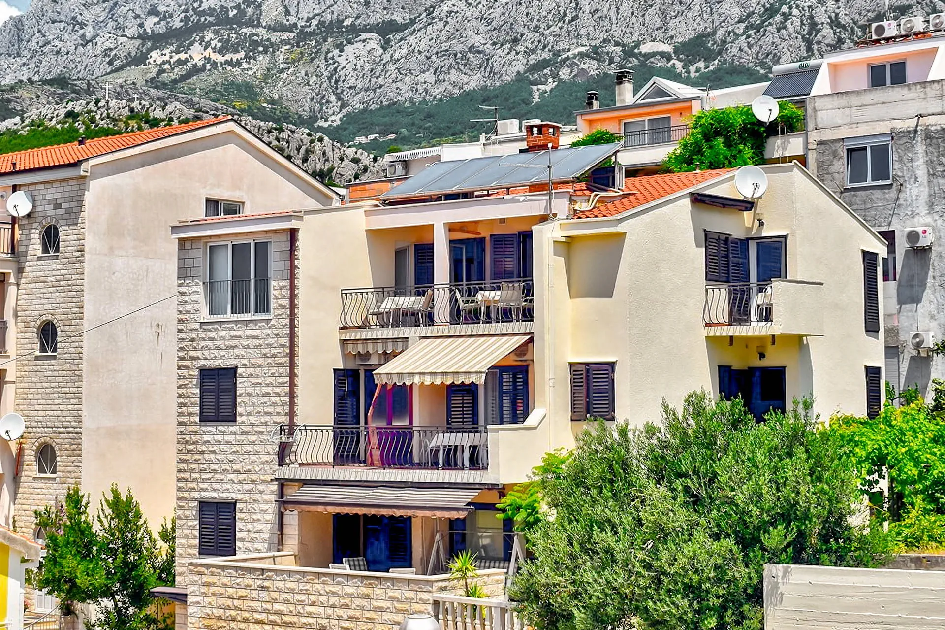 Położenie Odległość od lotniska w Splicie to ok 100 km, transfer trwa ok. 1,5-2 godziny.Obiekt położony jest w urokliwej, willowej części miasteczka Makarska, zlokalizowanej u stóp masywu Biokovo. W pobliżu znajdują się sklepy spożywcze, domowe winiarnie, piekarnie, apteka, liczne bary, kafejki, restauracje i dyskoteki. Okolica słynie z największych atrakcji tej części Chorwacji, m.in. wyspy Hvar i Brac czy Wodospady Krka. Plaża Odległość od obiektu wynosi około 350-500 metrów. Plaża jest żwirowa i szeroka. Pokoje Oferowane dwu i trzyosobowe pokoje znajdują się w niewielkich 2, 3 kondygnacyjnych obiektach. Wszystkie wygodnie i funkcjonalnie urządzone, posiadają łazienkę, balkon lub taras. Każdy pokój wyposażony w indywidualnie sterowaną klimatyzację (dodatkowo płatna 5euro/dzień) oraz w pełni wyposażony aneks kuchenny. Wyżywienie Rodzaje wyżywienia i posiłki: Bez wyżywienia Kategoria lokalna *** Do dyspozycji gości Pozostałe informacje: hotel dysponuje własnym parkingiem (bezpłatny) - nie gwarantujemy dostępności wolnych miejsc. Program sportowy i animacyjny Dla każdego: boiska do koszykówki i piłki nożnej. Za dodatkową opłatą: sporty wodne (rowerki wodne, motorówki, narty wodne, skutery). Naszym zdaniem Obiekt u podnóża masywu Biokovo, nad Morzem Adriatyckim, oferuje piękne widoki i bliskość natury. To doskonałe miejsce dla tych, którzy chcą połączyć relaks z samodzielnym planowaniem posiłków, korzystając z uroków okolicy.