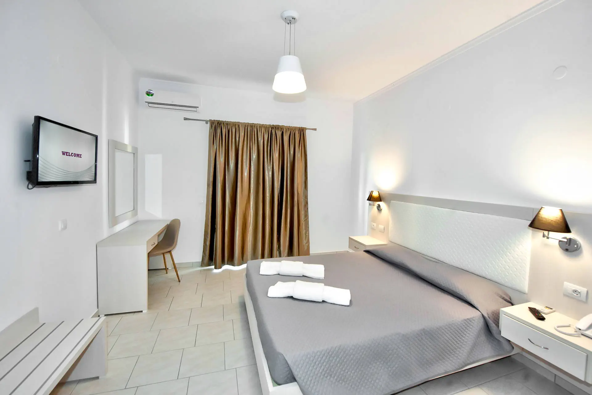 Położenie Do lotniska jest ok. 22 km, transfer trwa ok 35-40 min.Obiekt znajduje się około 1 km od niewielkiej miejscowości Liapades oraz około 6 km od znanego kurortu Paleokastritsa. Około 1 km od miejsca zakwaterowania znajduje się przystanek komunikacji lokalnej. Obiekt położony jest na wzgórzu, na zachodnim wybrzeżu Korfu. Wyżywienie Rodzaje wyżywienia i posiłki: All Inclusive: Śniadania: 07:30 - 10:00. Obiady: 12:30 - 14:30. Obiadokolacje: 19:00 - 21:30. Kanapki, kawa, herbata w ciągu dnia i ciasto po południu. Lokalne napoje alkoholowe i bezalkoholowe: 10:30 - 23:00. Koktajle dnia: 20:00 - 23:00. Restauracje: Restauracja a’la carte: zniżki 20% - 30% na napoje i 20% na jedzenie. Bary: Bar na plaży: zniżki 20% - 30% na napoje. Pozostałe informacje: Hotel zastrzega sobie prawo zmiany godzin serwowania posiłków i napojów. Plaża Plaża Glyko u podnóża wzgórza, na którym znajduje się hotel Aqua Blue. Plaża Gefyra oddalona o około 150 m od hotelu. Na plażę Glyko prowadzi stroma ścieżka. Plaża Glyko jest niewielka, piaszczysto-kamienista. Plaża Gefyra jest zatokowa, piaszczysto-żwirowa, z łagodnym wejściem do wody. Leżaki i parasole na plaży Gefyra płatne ok. 15 Eur/komplet. Do dyspozycji gości Hotel jest częścią Ninos Complex. Klienci mogą korzystać z udogodnień całego kompleksu.Recepcja i lobby dostępne dla Gości hotelu. Ogród, tarasy słoneczne z leżakami i parasolami. 2 baseny i brodzik, ręczniki basenowe (płatne), leżaki i parasole przy basenach. Restauracje: restauracja, restauracja a’la carte, bary. Pozostałe informacje: opiekunka do dziecka (płatna), parking, sejf w recepcji (płatny), akceptacja zwierząt do 2 kg (za opłatą, na potwierdzenie), darmowy bus na plażę oraz do restauracji (rezerwacja na recepcji). Program sportowy i animacyjny Dla każdego: 2x w tygodniu muzyka na żywo. Za dodatkową opłatą: sporty wodne na plaży. Internet Wi-fi w recepcji, w barze na plaży i w restauracji gratis. Kategoria lokalna **** Naszym zdaniem Hotel usytuowany na wzgórzu, otoczony zielenią, oferuje spokojny wypoczynek w kameralnym miejscu. Bliskość plaży z krystaliczną wodą zapewnia doskonałe warunki do relaksu. Pokoje różnego typu, w tym maisonette z antresolą i pokoje rodzinne, pomieszczą do 4 osób, co czyni je idealnym wyborem dla rodzin. Goście mogą korzystać z udogodnień kompleksu Ninos, a świeże i różnorodne posiłki zadowolą każde podniebienie. Hotel stanowi doskonałą bazę dla osób ceniących spokój i bliskość natury. Strona www www.aquabluecorfu.com Pokoje Hotel Aqua Blue posiada 36 pokoi rozlokowanych w parterowych lub 1-piętrowych budynkach. Wszystkie z niezbędnym wyposażeniem, klimatyzowane, z łazienką (suszarka do włosów, kosmetyki kąpielowe), TV-sat, małą lodówką oraz z balkonem lub tarasem (meble balkonowe). Łóżeczko dla dziecka do 2 lat gratis (ilość ograniczona).