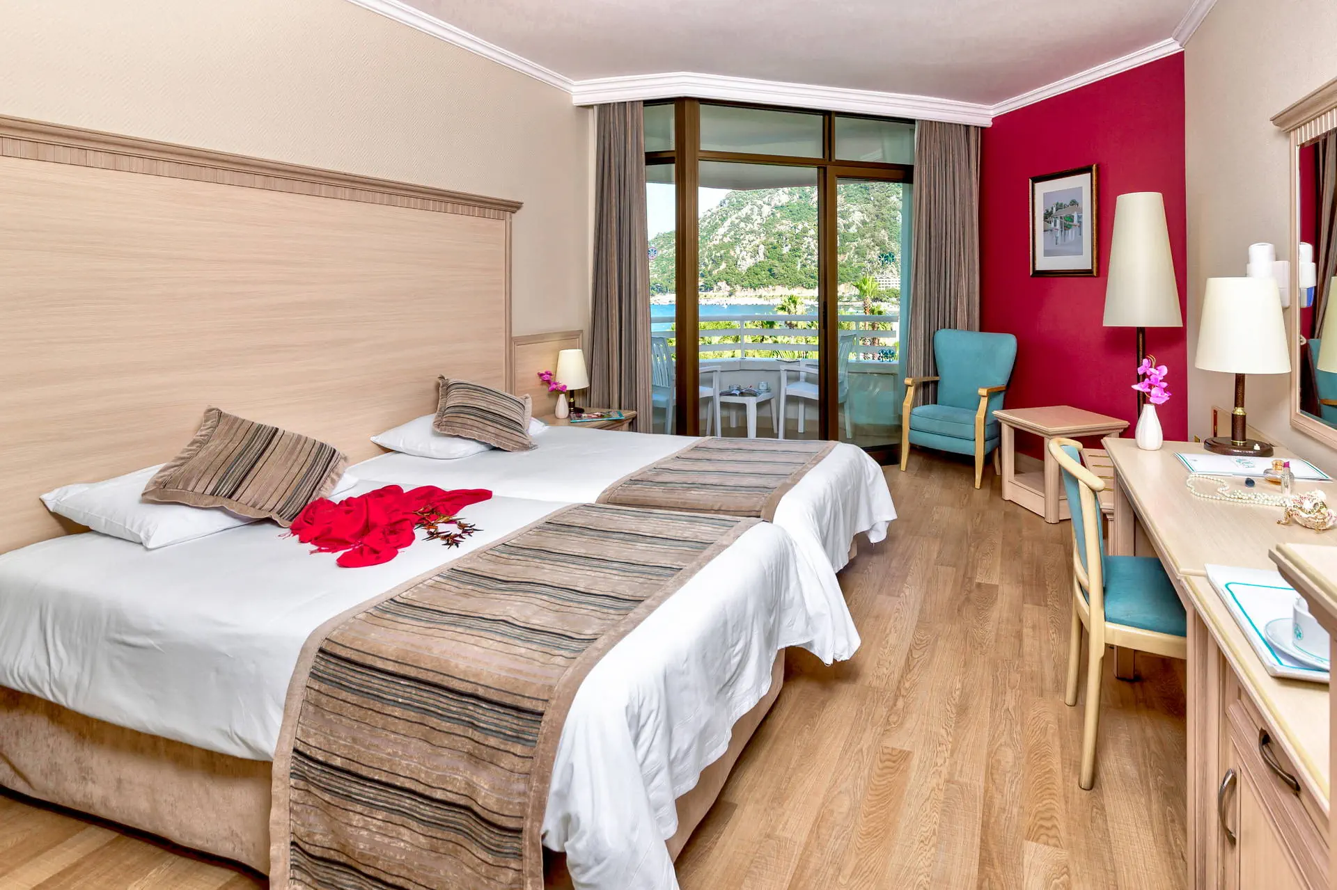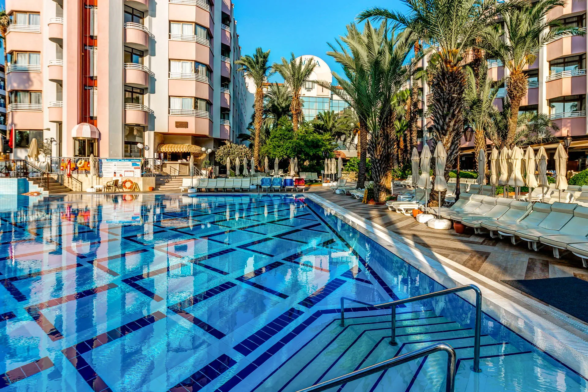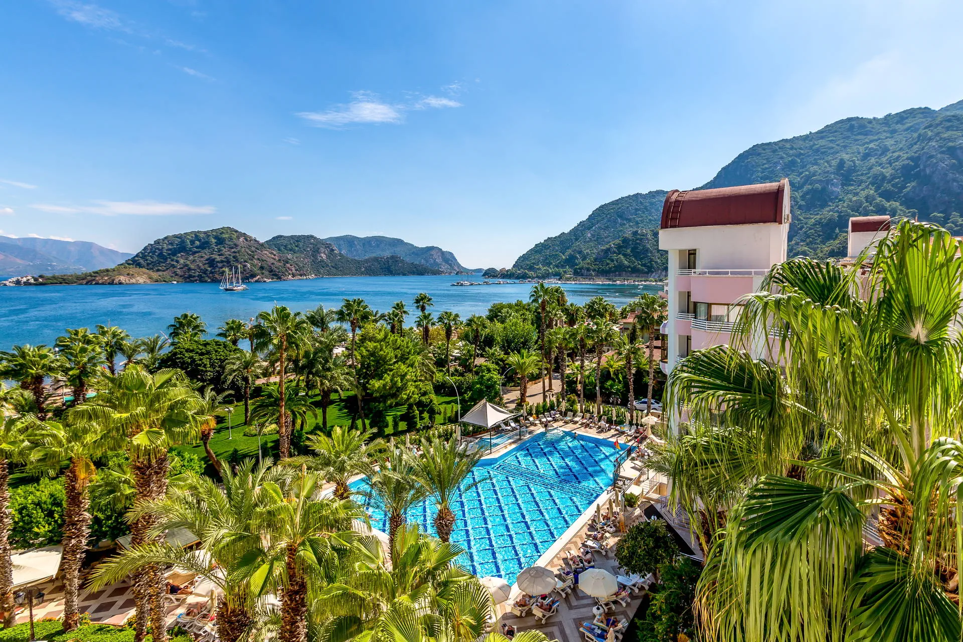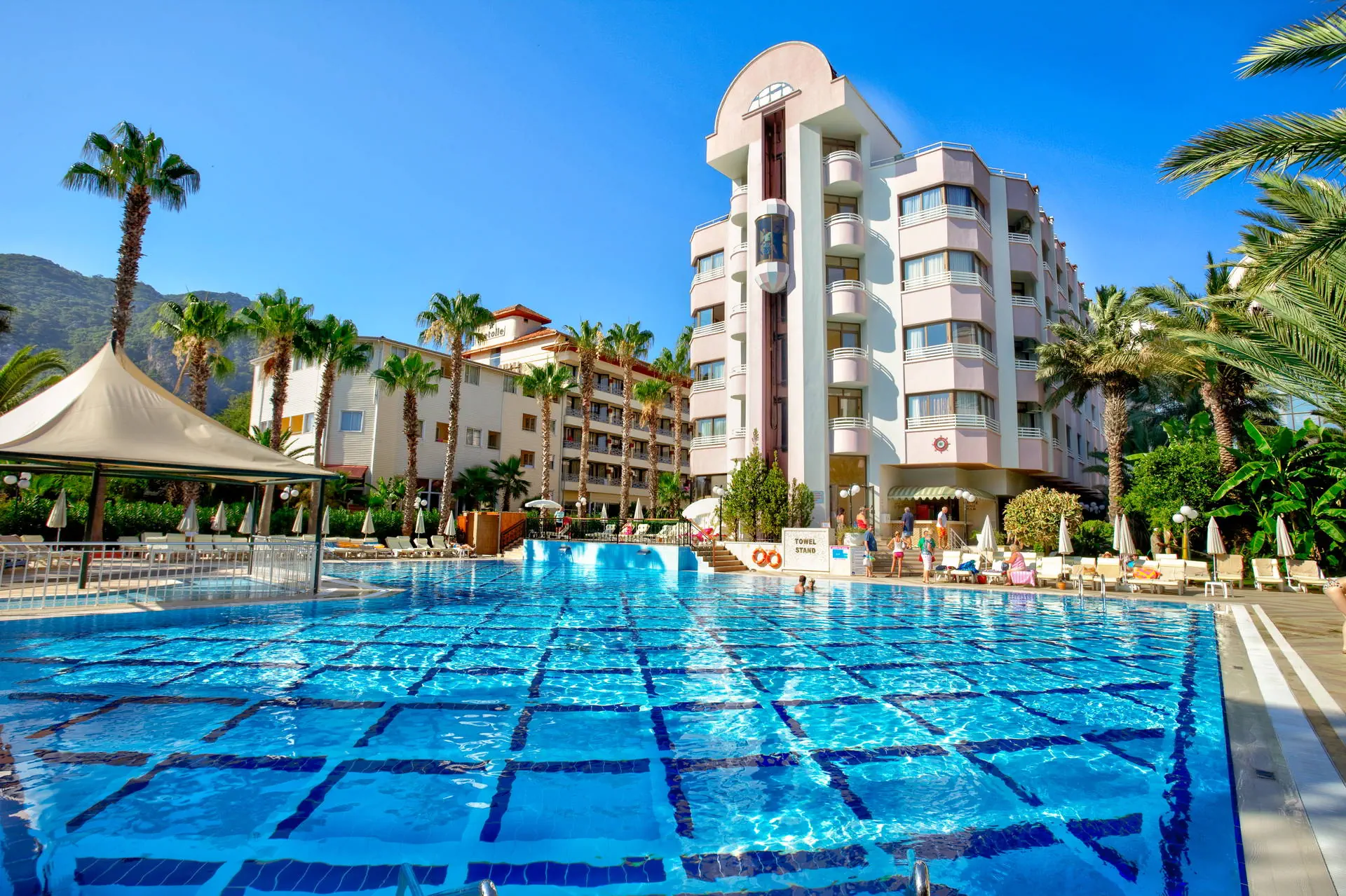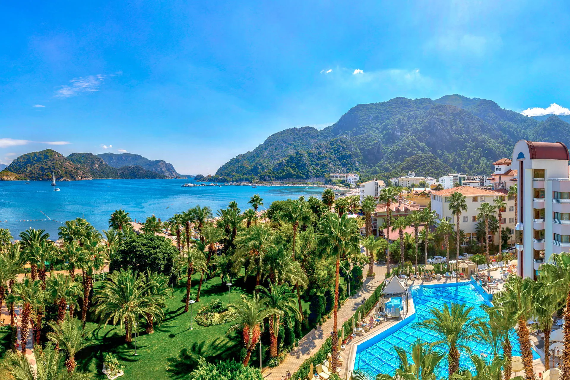 Położenie Hotel położony w malowniczym zakątku w niezwykle pięknej scenerii. Do centrum Icmeler zaledwie ok. 200 m z licznymi sklepami, tawernami, restauracjami i klubami. Ok. 7 km do rozrywkowego Marmaris i ok. 110 km do lotniska Dalaman. Plaża Hotel zlokalizowany tuż przy szerokiej i piaszczystej plaży wyróżnionej certyfikatem Błękitnej Flagi. Bezpłatne leżaki, parasole oraz ręczniki. Do dyspozycji gości Recepcja 24h, przestronne lobby, restauracja główna, 3 restauracje a’la carte: włoska, z owocami morza i turecka (za dodatkową opłatą, wymagana wcześniejsza rezerwacja), 4 bary, basen z bezpłatnymi leżakami, parasolami i ręcznikami, brodzik dla dzieci. Ponadto za dodatkową opłatą: fotograf, jubiler, fryzjer, pralnia, lekarz, sale konferencyjne. Wyżywienie All Inclusive: śniadanie (07:00-10:00), lunch (12:30-14:00), obiadokolacja (19:00-21:30) w formie bogatego bufetu. W ciągu dnia: słodkie przekąski (11:00-18:00), lody (11:00-17:30), naleśniki (11:00-17:00), przekąski (09:00-24:00), lokalne napoje alkoholowe i bezalkoholowe dostępne w godzinach 10:00-23:00. Za dodatkową opłatą pozostałe napoje. Program sportowy i animacyjny Hotel prowadzi dzienne i wieczorne animacje dla dzieci i dorosłych. Wieczorne show, muzyka na żywo, turecki wieczór. Dla dzieci: mini klub (4-12 lat), mini disco, plac zabaw. Ponadto: siłownia, tenis stołowy, bilard, sauna, łaźnia parowa, kort. Za dodatkową opłatą: zabiegi w centrum SPA, sporty wodne na plaży. Internet Bezpłatny Internet Wi-Fi na terenie całego hotelu. Kategoria lokalna ***** Naszym zdaniem Lokalizacja hotelu czyni ten obiekt niezwykle atrakcyjnym. Idealne miejsce dla rodzin z dziećmi ze względu na bogate animacje oraz dla par pragnących spędzić niezapomniany wyjazd w dobrej klasy hotelu z malowniczymi widokami. Strona www www.hotelaqua.com