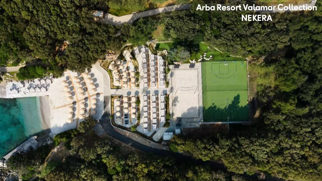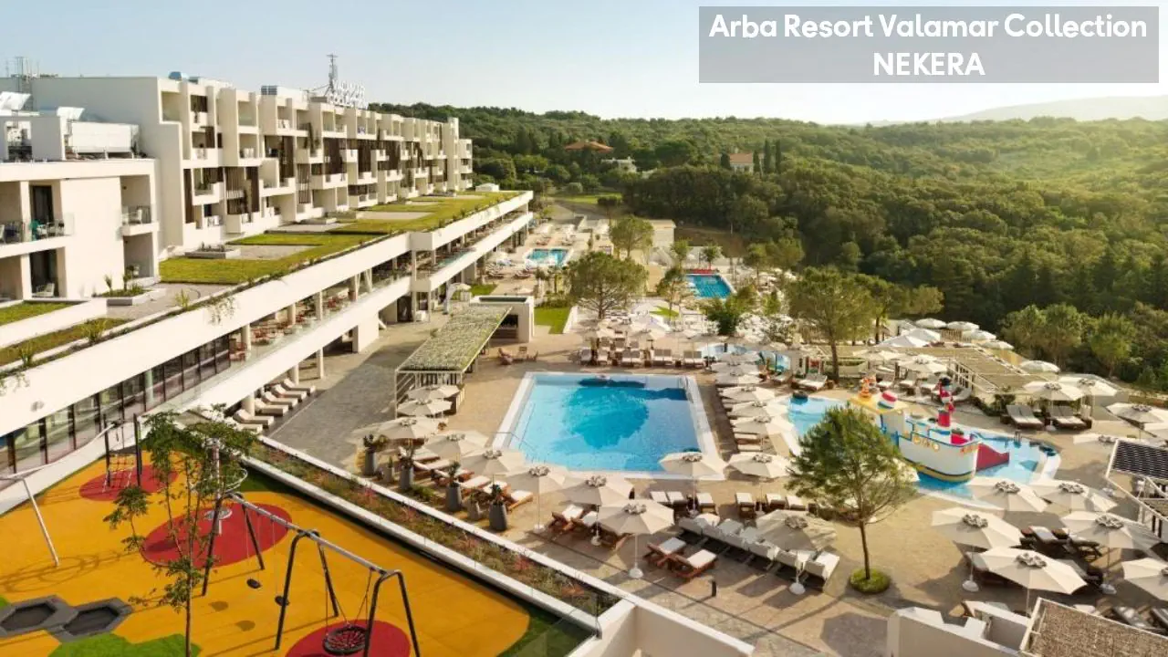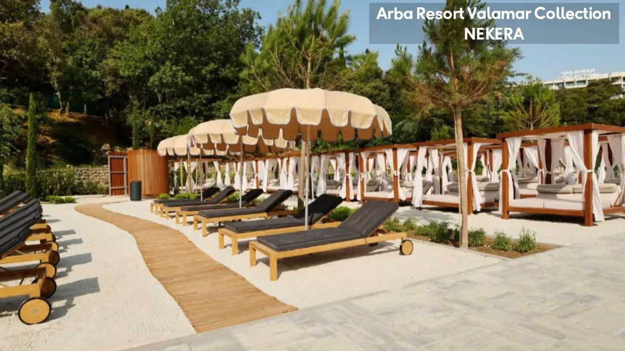 zlokalizowany jest w malowniczej miejscowości Lopar, w północnej części wyspy Rab, w otoczeniu śródziemnomorskiej roślinności. Hotel oddalony jest o ok. 12 km od zabytkowego miasta Rab. W pobliżu znajdują się lokalne sklepy i restauracje, a słynna Rajska Plaża (Paradise Beach) oddalona jest o zaledwie kilka kroków od resortu. Przystanek autobusowy znajduje się w bliskiej odległości. Najbliższe lotnisko to port lotniczy Rijeka (RJK) na wyspie Krk, oddalony o ok. 60 km (wymagana przeprawa promowa).