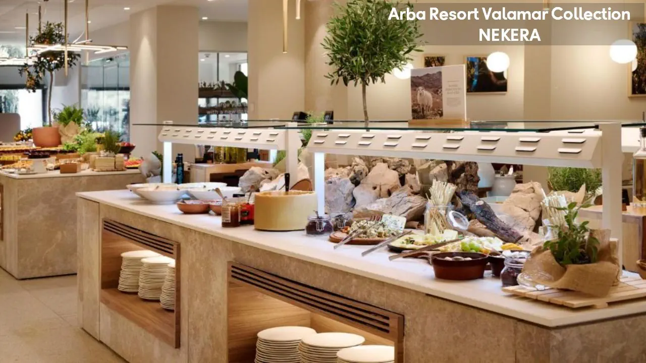 Full Board Plus. Posiłki w formie bogatego bufetu w restauracji Mediterraneo: śniadanie (07:00 – 10:00), lunch (12:00 – 14:00) oraz kolacja (19:00 – 21:00). W cenę posiłków wliczone są lokalne napoje z dystrybutora: wino (białe, czerwone), piwo, soki oraz woda mineralna. Dodatkowo płatne: wszystkie napoje w barach oraz zamówienia a la carte.