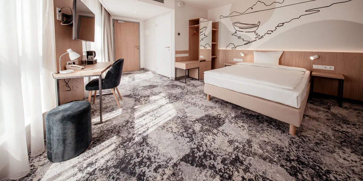 Wygodny i przestronny pokój z nowoczesną łazienką. W wyposażeniu: łóżko z materacem 140 x 200 cm, szafa, biurko z krzesłem, fotel, szafki nocne, tv, łazienka z prysznicem
