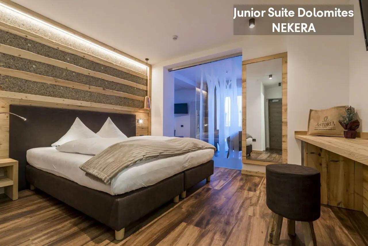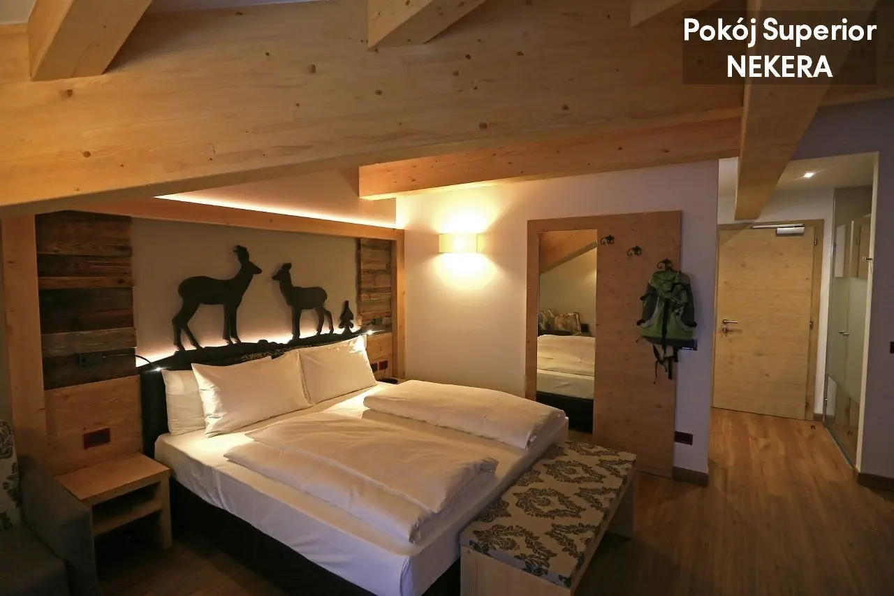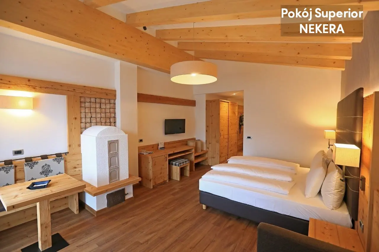 pokoje dwuosobowe Superior: ok. 24 m2; ogrzewanie, TV-Sat., telefon, sejf, minibar (za opłatą), balkon, wanna lub prysznic, WC, suszarka. Dla 2-3 osób. Junior Suite Dolomites: ok. 26 m2, nowocześnie urządzona, dla 2-3 osób, poza tym wyposażona jak pokoje Superior. Łóżeczko dla dziecka do 2 lat gratis.