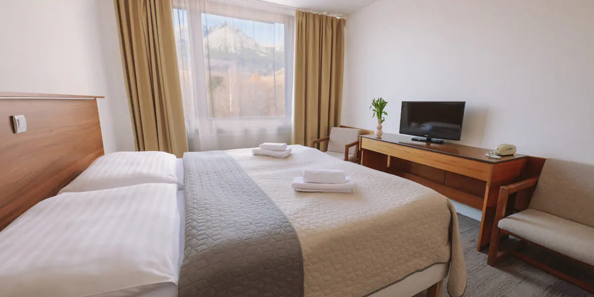 Atlas Hotel Tatry jest położony u stóp Łomnicy na Słowacji, w uzdrowiskowej części Tatrzańskiej Łomnicy, Tatrzańskich Matlarach. Bliskość górskich szlaków i sporego ośrodka narciarskiego, oszałamiające widoki, wygodne pokoje z balkonami, wyżywienie i dostęp do basenu w sąsiednim hotelu sprawiają, że warto tu przyjechać o każdej porze roku. Udogodnienia: Bar / restauracja, Sala zabaw dla dzieci, Pokój gier, Plac zabaw dla dzieci, Boisko sportowe, Kort tenisowy, Pobyt z pupilem, Winda, Parking strzeżony / monitorowany, Parking, Płatność kartą