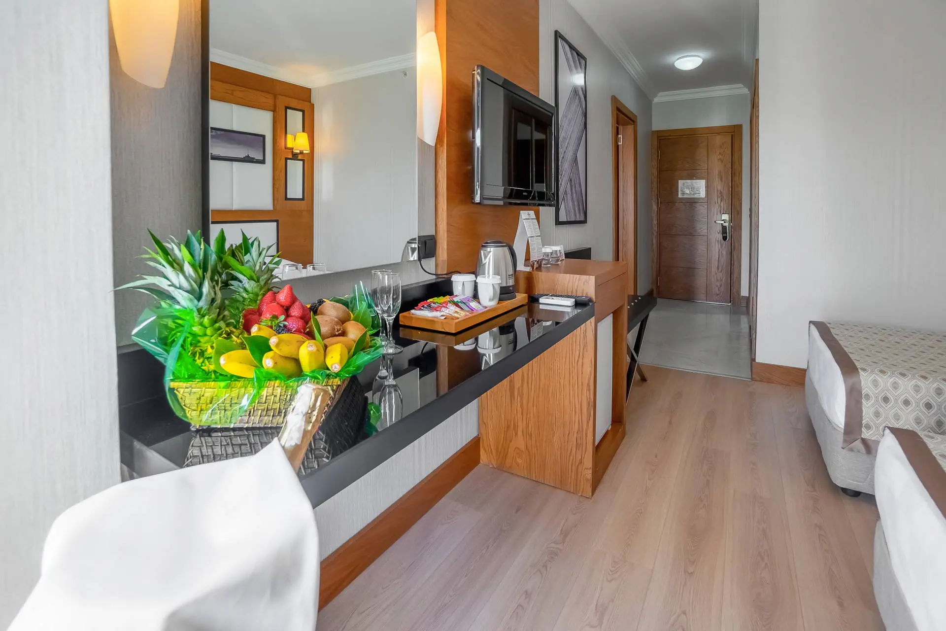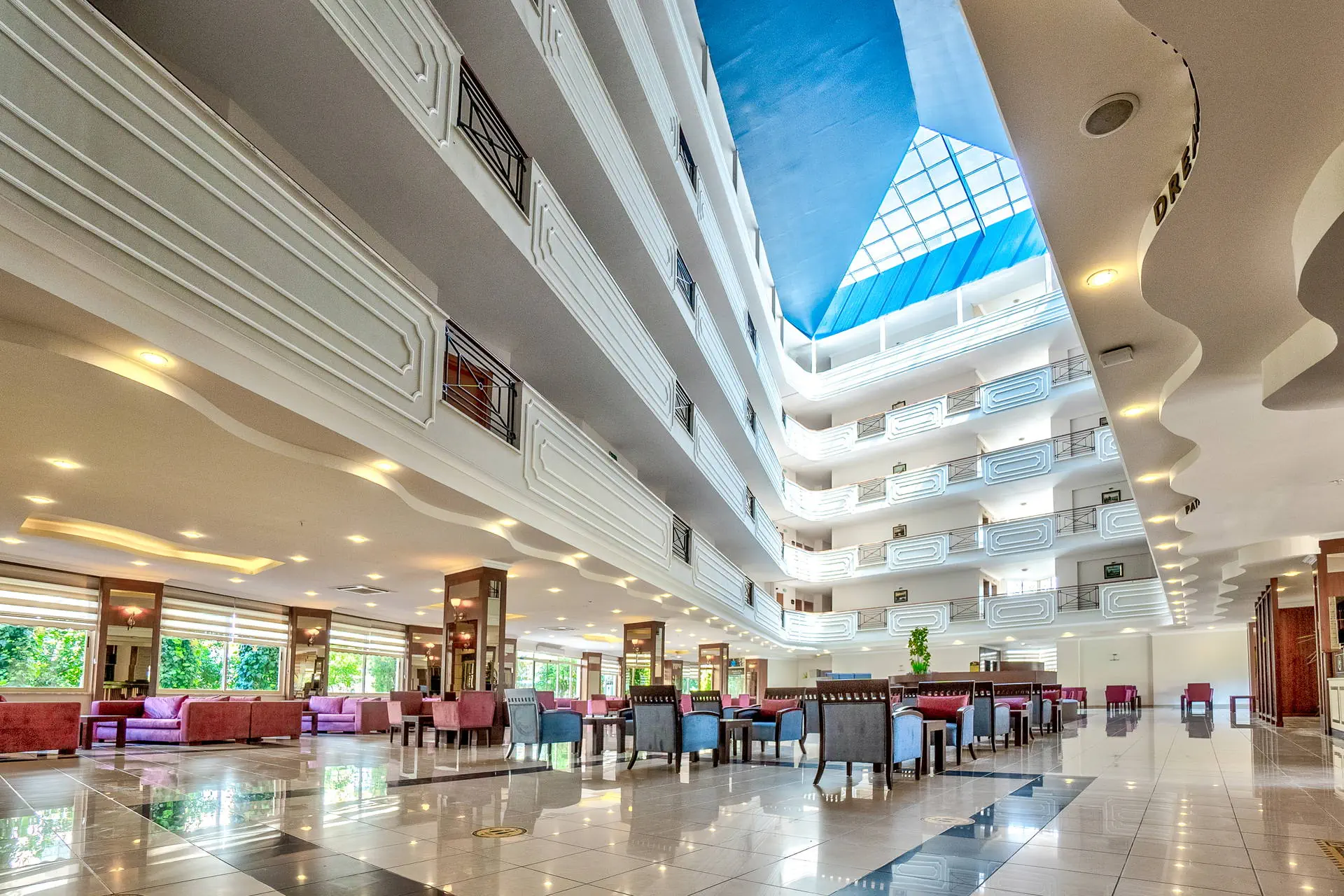 Do dyspozycji gości Recepcja 24h, lobby. 2 baseny zewnętrzne, basen wewnętrzny, basen ze zjeżdżalniami (otwarte w określonych godzinach), wydzielony brodzik dla dzieci. Restauracje: trzy restauracje, w tym restauracja główna i 2 restauracje a’la carte serwujące kuchnię włoską oraz turecką (restauracje czynne od 01.06 - jedna z restauracji bezpłatna raz na tydzień, wymagana rezerwacja), 7 barów, w tym bar w lobby dostępny 24h, bar przy basenie, bar przy plaży. Pozostałe informacje: za dodatkową opłatą: fryzjer, pralnia, punkt opieki medycznej, kawiarenka internetowa, minimarket, jubiler, fotograf, sklep z pamiątkami. Internet Bezpłatny Internet Wi-Fi dostępny na terenie całego hotelu, również w pokojach. Kategoria lokalna ***** Naszym zdaniem Elegancki i przestronny hotel zapewnia komfort dzięki pakietowi Ultra All Inclusive. Bogata oferta sportowa i animacyjna umożliwia aktywny wypoczynek dla dzieci i dorosłych. Goście mogą korzystać z różnorodnych form relaksu i rozrywki, co wyróżnia ten obiekt na tle konkurencji. Plaża Plaża oddalona o ok. 50 metrów od hotelu. Do plaży prowadzi przejście tunelem pod ulicą. Piaszczysto-żwirowa plaża. Bezpłatne ręczniki plażowe, leżaki i parasole. Plaża wyróżniona certyfikatem Błękitnej Flagi. Położenie Hotel położony jest w miejscowości Turkler. Oddalony od centrum Alanyi o ok. 25 km. Oddalony od lotniska w Antalyi o ok. 110 km. Program sportowy i animacyjny Dla każdego: zajęcia sportowe i animacyjne w ciągu dnia i wieczorami, boisko do koszykówki oraz siatkówki, rzutki, tenis stołowy, aerobik, aqua aerobik, siłownia, łaźnia turecka, sauna sucha i parowa, jacuzzi. Dla dzieci: mini club dla dzieci w wieku od 4 do 12 lat otwarty w godzinach (10:00-12:30) oraz (14:30-17:30), mini disco. Za dodatkową opłatą: bilard, masaże i zabiegi w centrum SPA, kawiarenka Internetowa, sporty wodne na plaży. Strona www www.aydinbeyhotels.com Wyżywienie Rodzaje wyżywienia i posiłki: Ultra All Inclusive: Śniadanie: 07:00 - 10:00. Późne śniadanie: 10:00 - 11:00. Lunch: 12:00 - 14:30. Obiadokolacja: 19:00 - 21:00; posiłki serwowane w formie bogatego bufetu. Przekąski: 12:30 - 16:30. Herbata, kawa, ciasta: 16:00 - 17:00. Wieczorne przekąski: 23:30 - 00:30. Restauracje: Restauracje a’la carte: 19:00 - 21:00. Bary: Lokalne napoje bezalkoholowe i alkoholowe dostępne w wybranych barach 24 h. Dodatkowe usługi: Dodatkowo płatne: soki ze świeżo wyciskanych owoców oraz kawa po turecku.