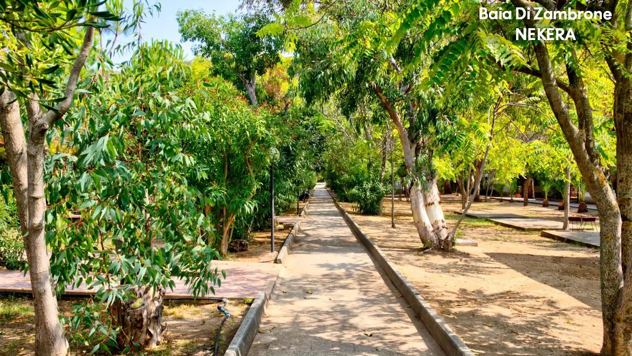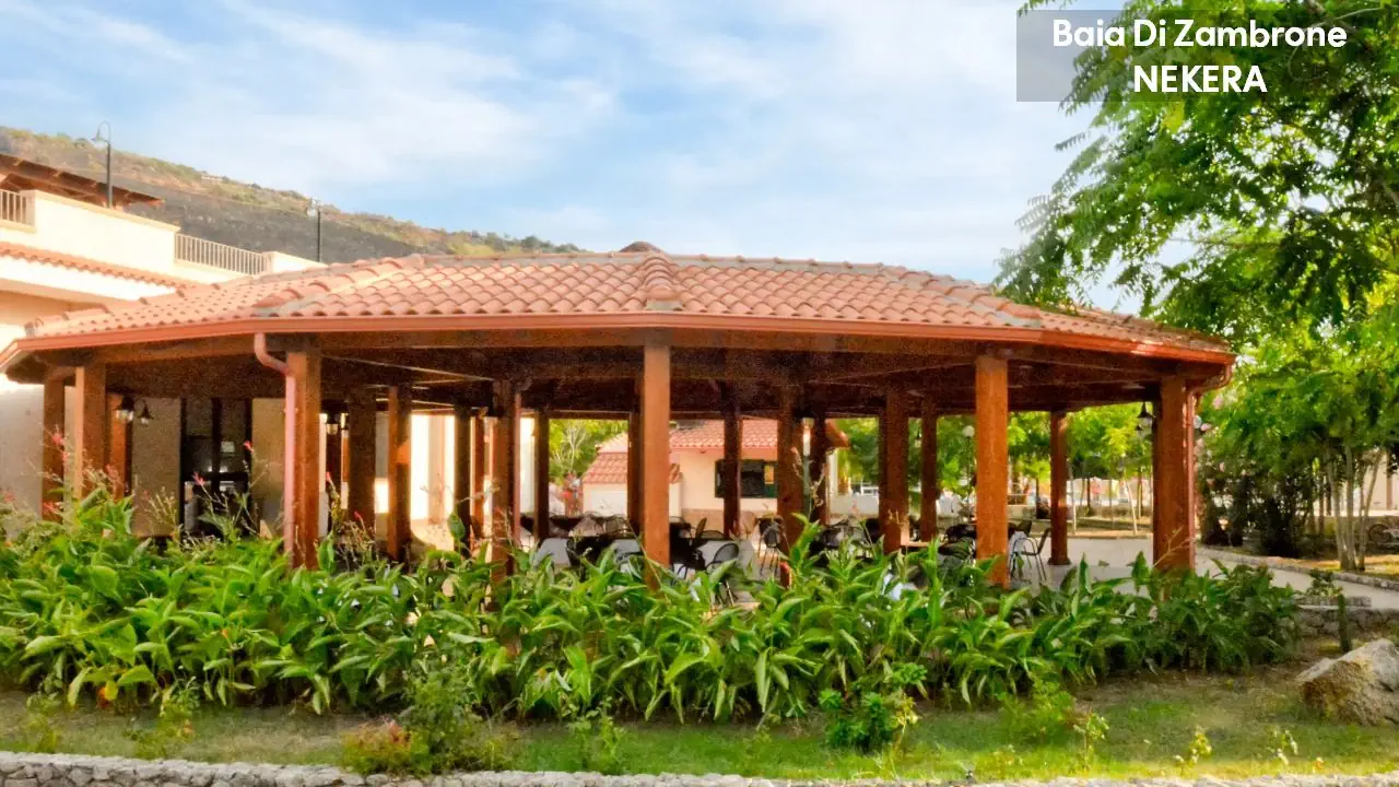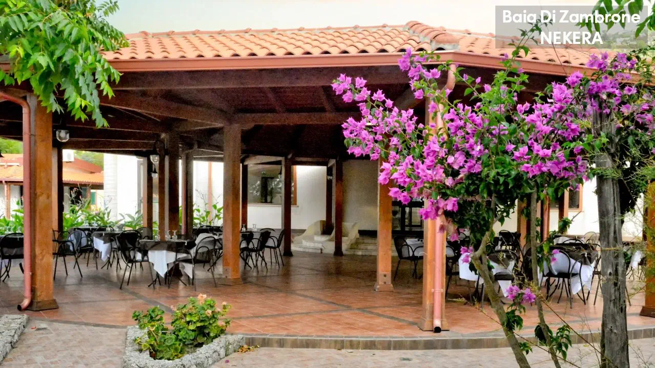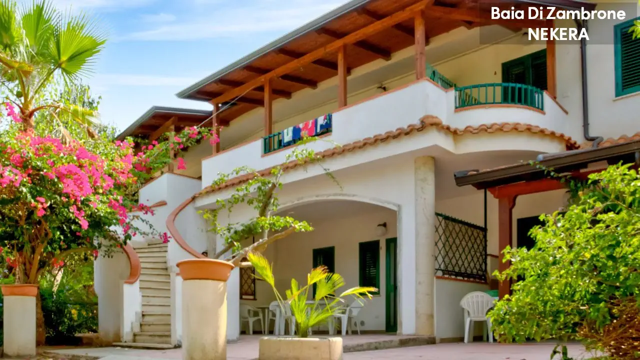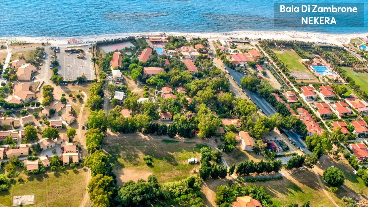 Hotel Baia di Zambrone położony jest na wzgórzu z pięknym widokiem na Morze Tyrreńskie i Wyspy Liparyjskie, w otoczeniu zieleni i śródziemnomorskiej roślinności. Do piaszczysto-żwirowej plaży prowadzi prywatna ścieżka (ok. 300 m). Do centrum Zambrone ok. 1 km, do Tropei ok. 8 km. Lotnisko Lamezia Terme oddalone jest o ok. 50 km.