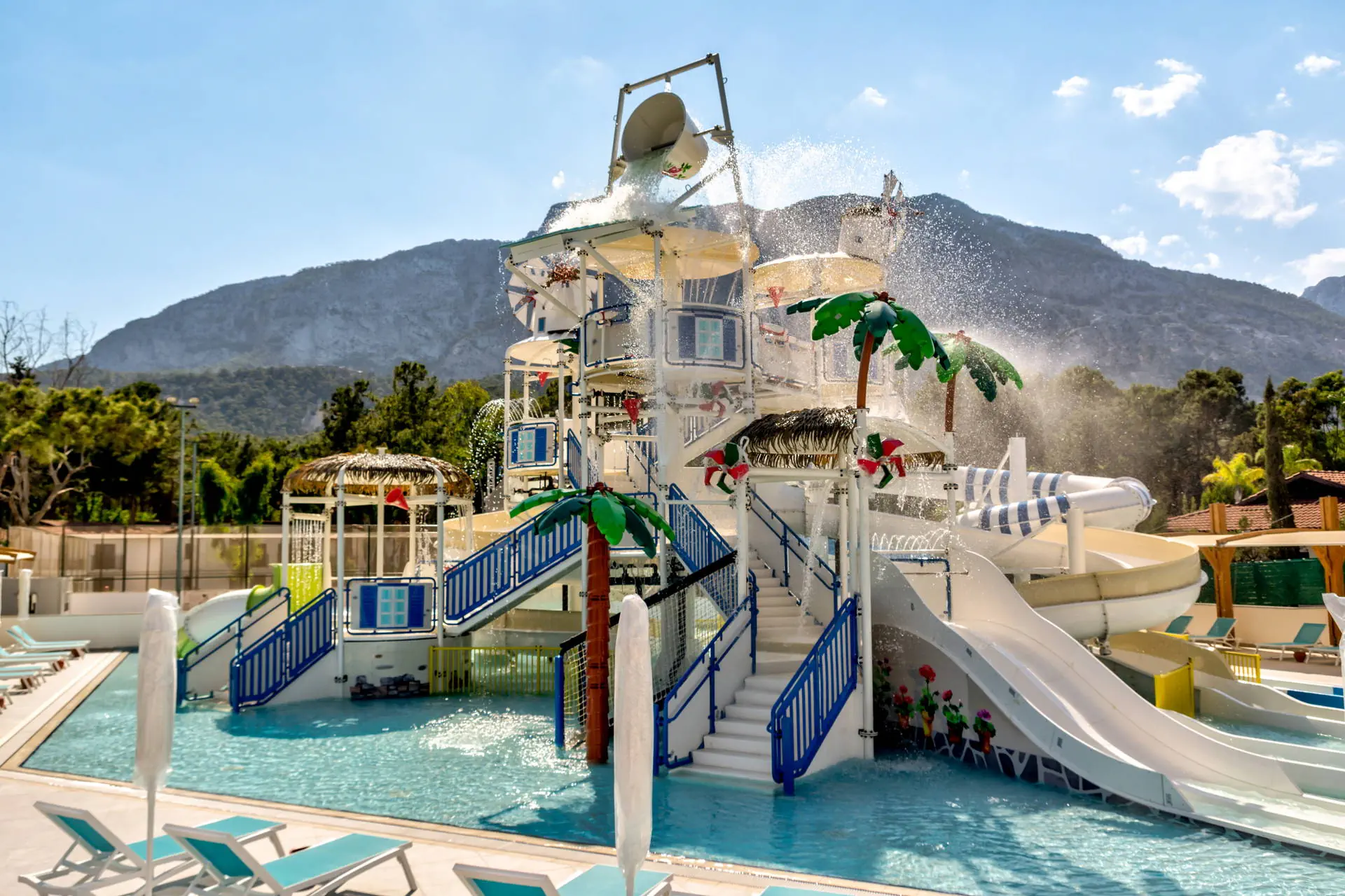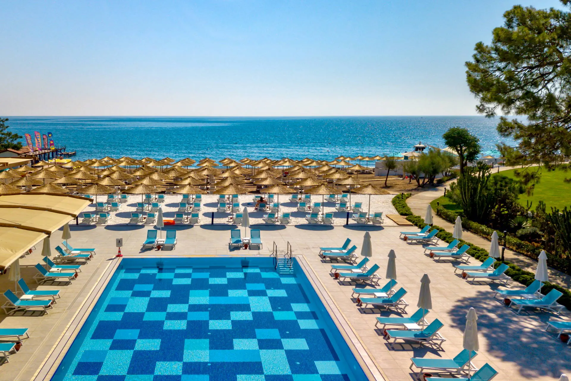 Położenie Do lotniska w Antalyi jest około 45 km. Do Kemer jest około 14 km. Hotel wybudowany jest w formie wioski wakacyjnej, położonej na dużym pięknym zielonym terenie. Plaża Prywatna, piaszczysto-żwirowa plaża o długości 180 m. Ręczniki, leżaki i parasole dostępne bezpłatnie. Na plaży znajdują się 2 pomosty. Do dyspozycji gości Recepcja i lobby dostępne dla Gości hotelu. 2 baseny zewnętrzne, wieża z 9 zjeżdżalniami. Restauracje: restauracja główna, 2 restauracje à la carte (włoska i rybna, płatne dodatkowo, wymagana rezerwacja), 5 barów, w tym bar przy basenie. Pozostałe informacje: punkt wymiany walut, sklepy (za dodatkową opłatą). Wyżywienie Rodzaje wyżywienia i posiłki: Ultra All Inclusive – posiłki w formie bufetu. Śniadanie: 07:00 - 10:30. Późne śniadanie: 10:30 - 12:00. Lunch: 12:30 - 14:30. Obiadokolacja: 18:30 - 21:30. Przekąski, gozleme i lody: 12:00 - 15:30. Nocne przekąski: 23:00 - 01:00. Bary: Napoje bezalkoholowe i lokalne alkohole dostępne 24 h w wybranym barze. Program sportowy i animacyjny Dla każdego: zabawy przy basenach, wieczorne show, siatkówka plażowa, aerobik, tenis stołowy, kort tenisowy rzutki, boccia. Dla dzieci: mini klub, plac zabaw, mini disco. Za dodatkową opłatą: sprzęt tenisowy i oświetlenie kortu płatne dodatkowo, sporty wodne na plaży, centrum SPA. Internet Wi-Fi na terenie hotelu jest bezpłatny. Kategoria lokalna ***** HV Naszym zdaniem Hotel położony na zadbanym terenie w pobliżu Kemer oferuje doskonałe warunki do wypoczynku. Szeroka plaża zapewnia relaks w pięknym otoczeniu. Na sezon 2020 zaplanowano remont, który podniesie standard obiektu. Aquapark to dodatkowa atrakcja, czyniąca go idealnym miejscem na rodzinne wakacje. Hotel spełni oczekiwania nawet najbardziej wymagających Gości, gwarantując udany wypoczynek. Strona www www.baiahotels.com
