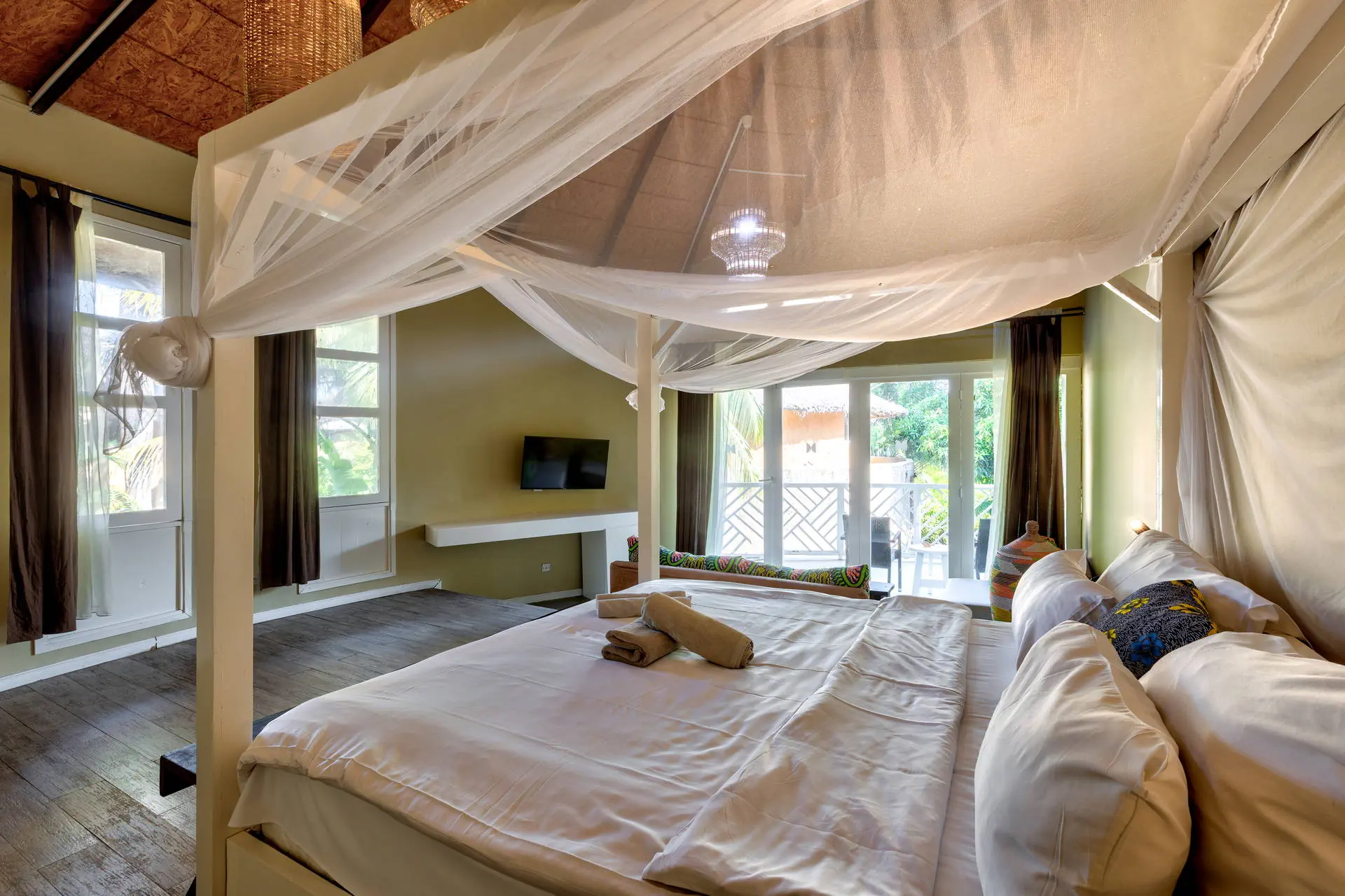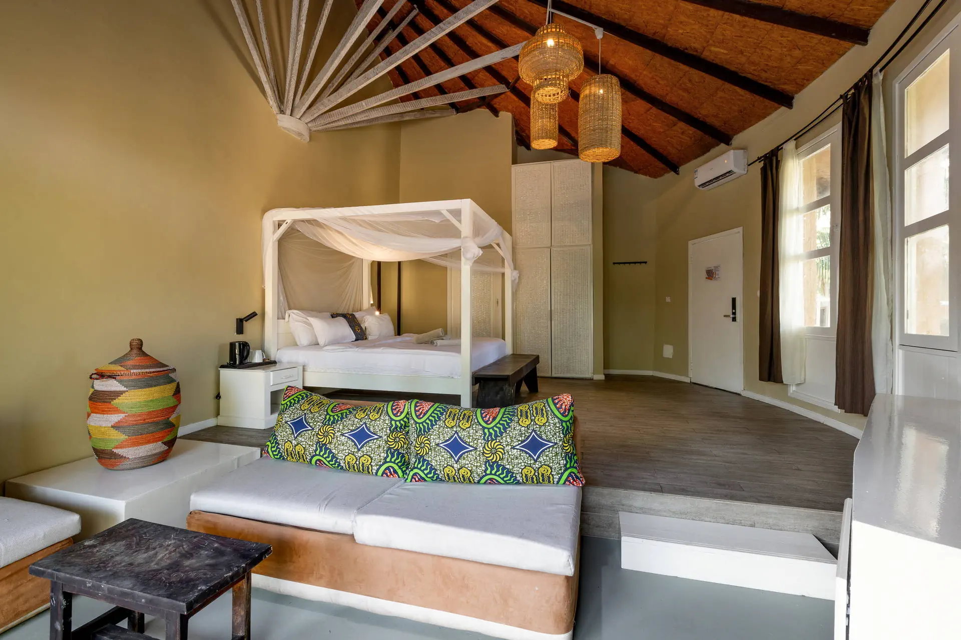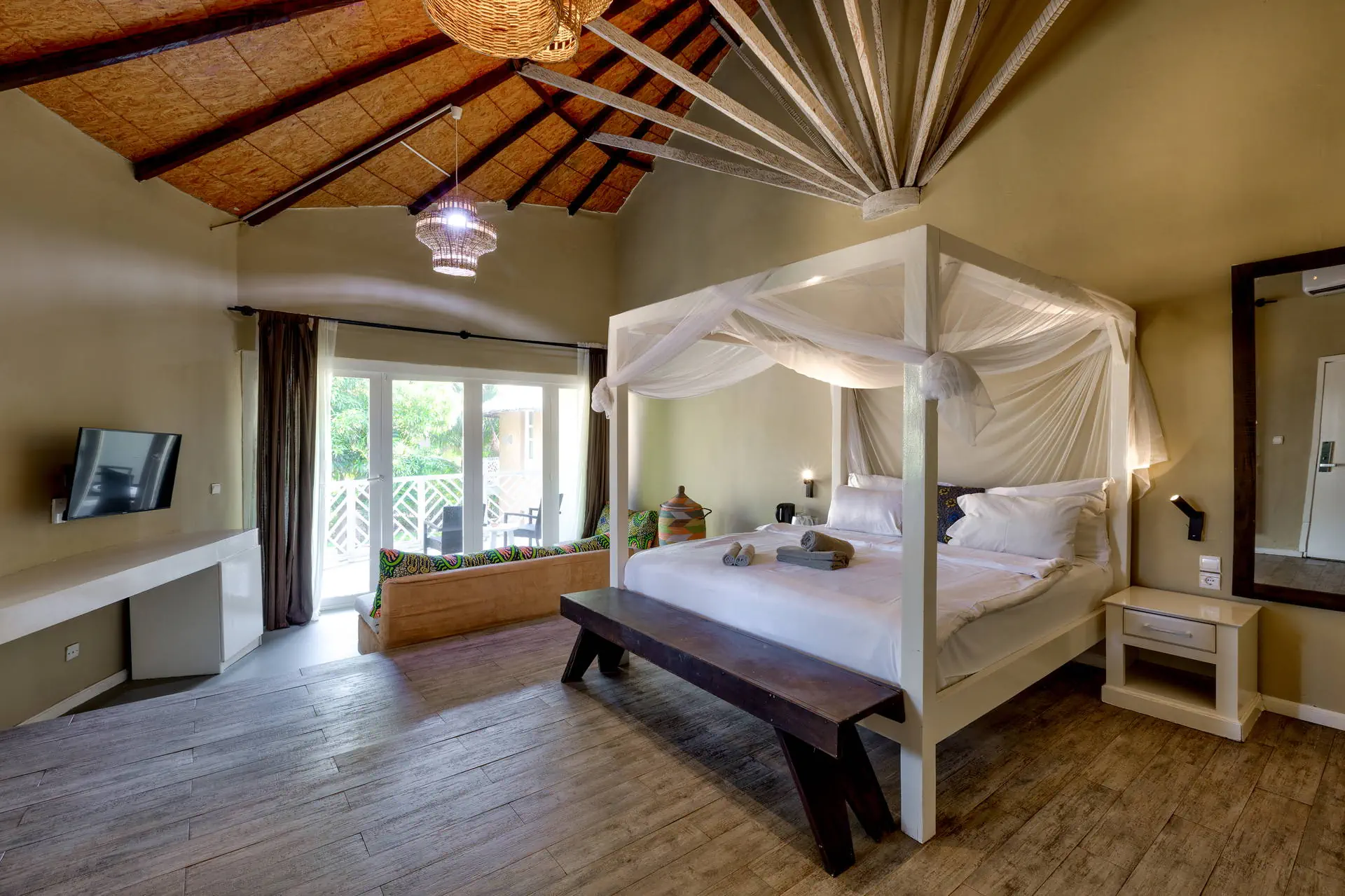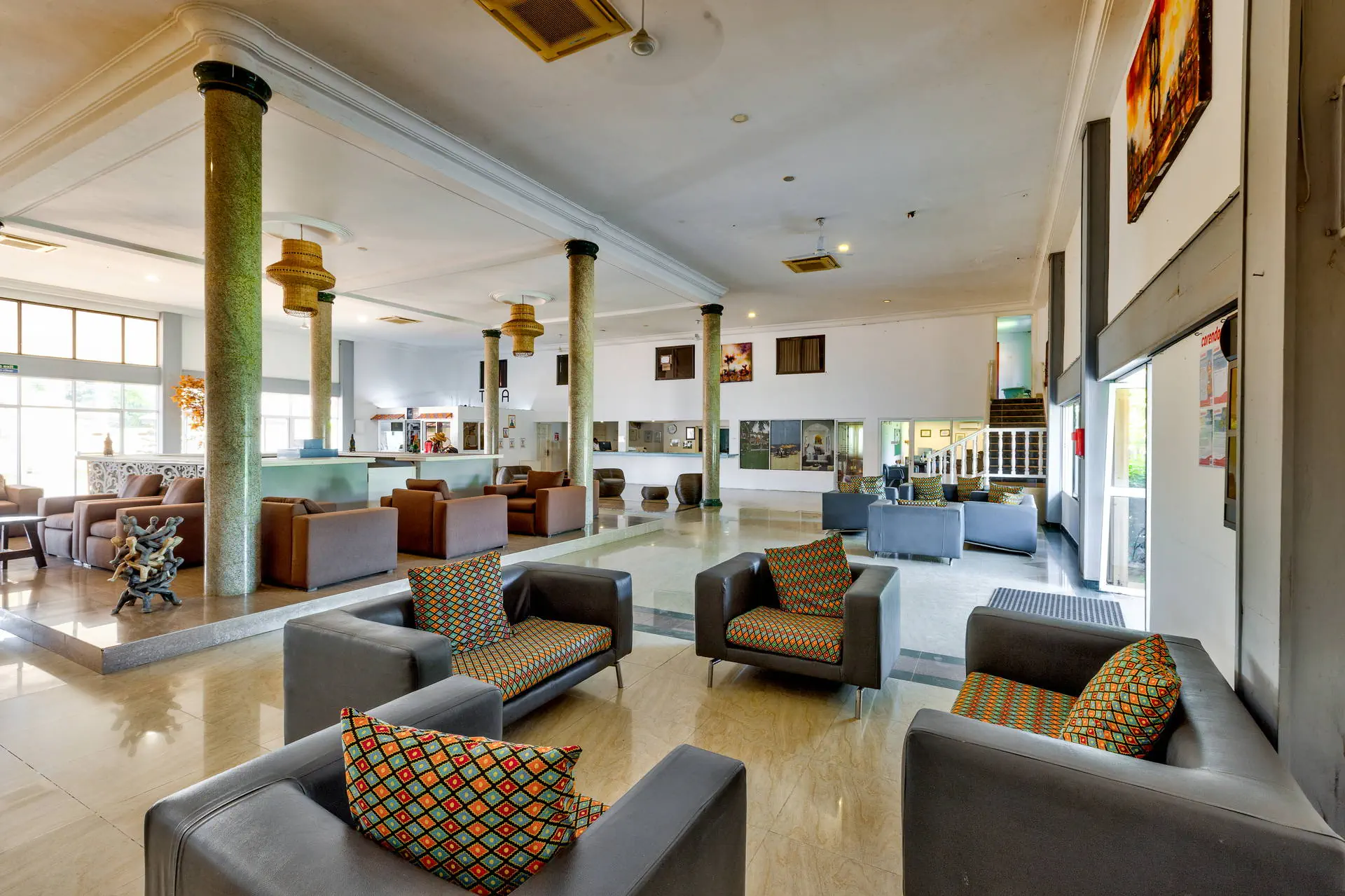 Pokoje Hotel dysponuje 64 elegancko urządzonymi, wygodnymi pokojami 2-osobowymi (1 łóżko typu king size, możliwość dostawki w formie sofy). Pokoje standardowe o pow. ok. 30m2 wyposażone są w łazienkę (prysznic, WC, suszarka do włosów), indywidualnie sterowaną klimatyzację, sejf, TV-sat, telefon, minibar, taras lub balkon (meble ogrodowe), widok na ogród. Plaża Plaża bezpośrednio przy hotelu. Urokliwa, szeroka, piaszczysta z łagodnym zejściem do morza. Leżaki, parasole i ręczniki bezpłatne. Do dyspozycji gości Recepcja 24h. 2 baseny o nieregularnym kształcie, parasole, leżaki i ręczniki – bezpłatnie. Restauracje: Restauracja Bantaba serwująca dania kuchni afrykańskiej i międzynarodowej, bar Bantaba przy plaży. Wyżywienie Rodzaje wyżywienia i posiłki: Śniadania w formie bufetu. Możliwość dokupienia obiadokolacji (serwowane, napoje płatne dodatkowo). Program sportowy i animacyjny Dla każdego: animacje 3 razy w tygodniu: muzyka na żywo, bingo, gry i zabawy; aerobik, siatkówka, rzutki. Za dodatkową opłatą: masaże, zabiegi na twarz i ciało, manicure, pedicure w hotelowym Centrum Wellness. Internet Bezprzewodowy Internet Wi-Fi w ogólnodostępnych częściach hotelu – bezpłatny. Kategoria lokalna **** Naszym zdaniem Bardzo atrakcyjny, nowy hotel urządzony w stylu etno. Wygodne pokoje, pięknie zaaranżowana przestrzeń, staranna obsługa to główne atuty tego obiektu. Z pewnością można go polecać wymagającym Klientom szukającym wygody w egzotycznym miejscu.. Strona www www.balafonresort.com Położenie Do lotniska w Banjul jest około 20 km. Kilka minut spacerem wzdłuż plaży od lokalnych barów plażowych. Około 1,5 km od centrum turystycznego – ulicy Senegambia. Do Parku Narodowego Bijilo jest około 3,5 km. Hotel położony jest w najpopularniejszym kurorcie gambijskiego wybrzeża – Kololi, otoczony tropikalnymi ogrodami.