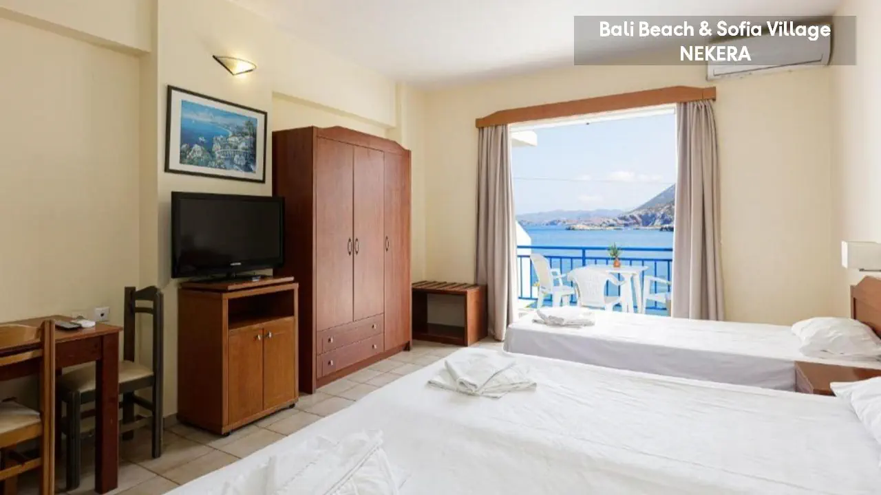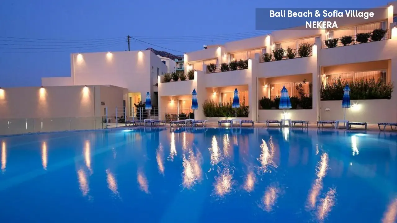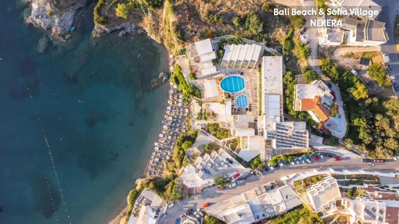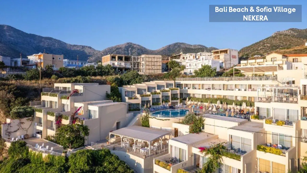 Bali Beach & Sofia Village to malowniczo położony kompleks wypoczynkowy, który zachwyca widokami na zatokę i krystalicznie czyste wody Morza Kreteńskiego. Usytuowany w urokliwej miejscowości Bali na północnym wybrzeżu wyspy Kreta, oferuje idealne połączenie relaksu i greckiej gościnności. Tarasowo rozmieszczone budynki, baseny z panoramą wybrzeża oraz bliskość piaszczystych zatok tworzą wymarzone warunki do słonecznego wypoczynku. To propozycja dla tych, którzy pragną spędzić wakacje w otoczeniu spektakularnych krajobrazów i śródziemnomorskiego klimatu.