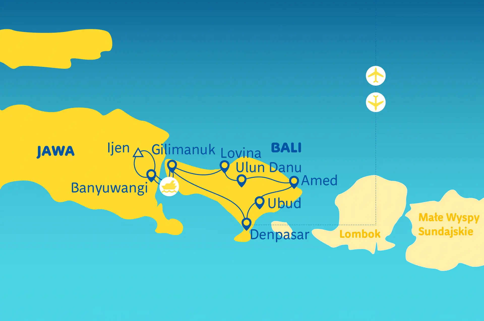 Pokoje w hotelu restauracja i bar Zakwaterowanie Hotele odpowiadające standardowi ***/**** w ocenie organizatora, wyjątek! 1 noc: w Bromo Cottage, kiedy to zapewniamy hotele **, z braku wyższej klasy hoteli. Pokoje: 2- osobowe, we wszystkich hotelach są wyposażone w łazienki z wc, klimatyzację i TV. Pokój 3- osobowy, to z reguły pokój 2 - osobowy z dostawką (dostawka na ogół w formie łóżka polowego lub rozkładanej kanapy). Część pobytowa Hotele: opisy poszczególnych hoteli w części dotyczących wczasów na Bali.