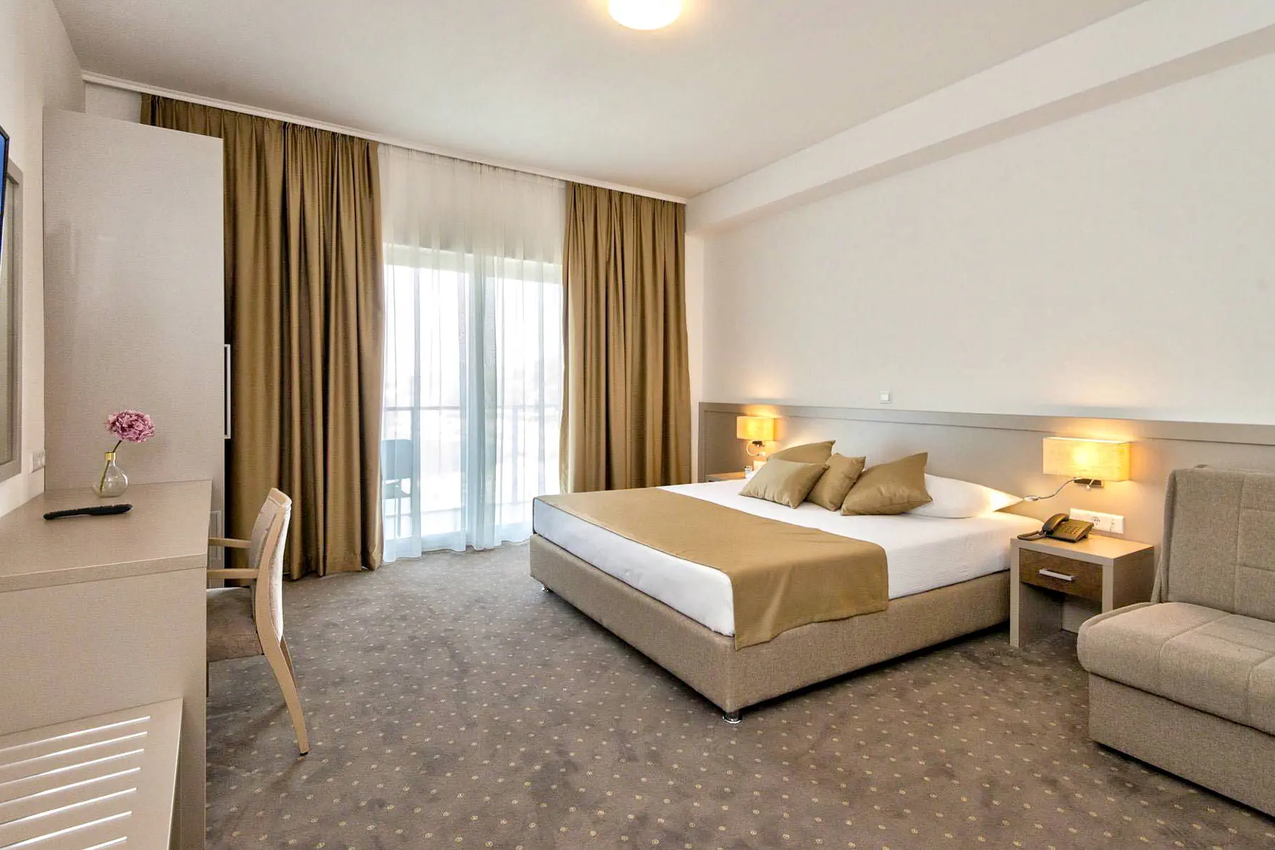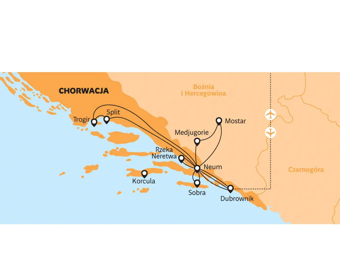 Zakwaterowanie Położenie: Nowoczesny, elegancki hotel położony jest w miejscowości Neum na terenie Bośni i Hercegowiny. Neum znajduje się ok. 65 km od Dubrownika, ok. 60 km od Medugorje, ok. 77 km od Mostaru i ok. 90 km od wyspy Korcula, co czyni go wymarzonym miejscem wypadowym do największych atrakcji Bałkanów. Atutem Neum jest również bliskość portu lotniczego w Dubrowniku - transfer z lotniska do hotelu trwa ok. 1,5 godz. W pobliżu hotelu znajdują się liczne sklepiki, restauracje i kawiarnie. Plaża: Obiekt oddalony jest od żwirowej plaży ok. 350 m, na którą codziennie wozi naszych gości bezpłatny bus hotelowy. Leżaki na plaży – płatne (ok. 2 EUR). Do dyspozycji gości: Pięciopiętrowy obiekt wybudowany w 2012 roku. Recepcja 24 godz., z przestronnym lobby z widokiem na morze, restauracja główna, restauracja a la carte, do dyspozycji gości 2 baseny wewnętrzny i zewnętrzny usytuowany na 6 piętrze obiektu, skąd rozciąga się piękny widok na Adriatyk, półwysep Peljesac i całą Neumską Riwierę, bar przy basenie z tarasem słonecznym, leżaki przy basenie bezpłatne dla gości hotelowych, sauna, 1 sala konferencyjno-biznesowa, sklep z pamiątkami, market, parking. Hotel akceptuje karty płatnicze. Pokoje: Hotel posiada 58 komfortowo i nowocześnie urządzonych pokoi z balkonami i łazienkami (prysznic) oraz suszarką do włosów. Pokoje wyposażone są w klimatyzację, minibar, telefon oraz telewizor LCD z dostępem do kanałów telewizji satelitarnej. Wyżywienie: Wyżywienie w formie bufetu: śniadania (06:30-09:00) i obiadokolacje (18:00-21:00). Rozrywki: Dla każdej grupy organizujemy wieczorek dalmatyński z muzyką na żywo (w cenie wycieczki), dla naszych gości bezpłatny poczęstunek oraz wino i rakija bez ograniczeń. Internet: Na terenie całego obiektu Internet Wi-Fi - bezpłatny. Kategoria lokalna: **** Strona www: www.hotel-jadran-neum.com Naszym zdaniem: Bogata infrastruktura hotelowa (baseny, sauna) zapewnia relaks po zwiedzaniu. Dogodne położenie hotelu w centrum Neum umożliwia korzystanie z miejscowych rozrywek. Ze względu na wysoki standard i korzystną lokalizację polecamy klientom pragnącym połączyć wypoczynek w komfortowych warunkach ze zwiedzaniem. Uwaga! Dla chętnych istnieje możliwość przedłużenia imprezy o tydzień pobytu w Chorwacji lub Bośni.