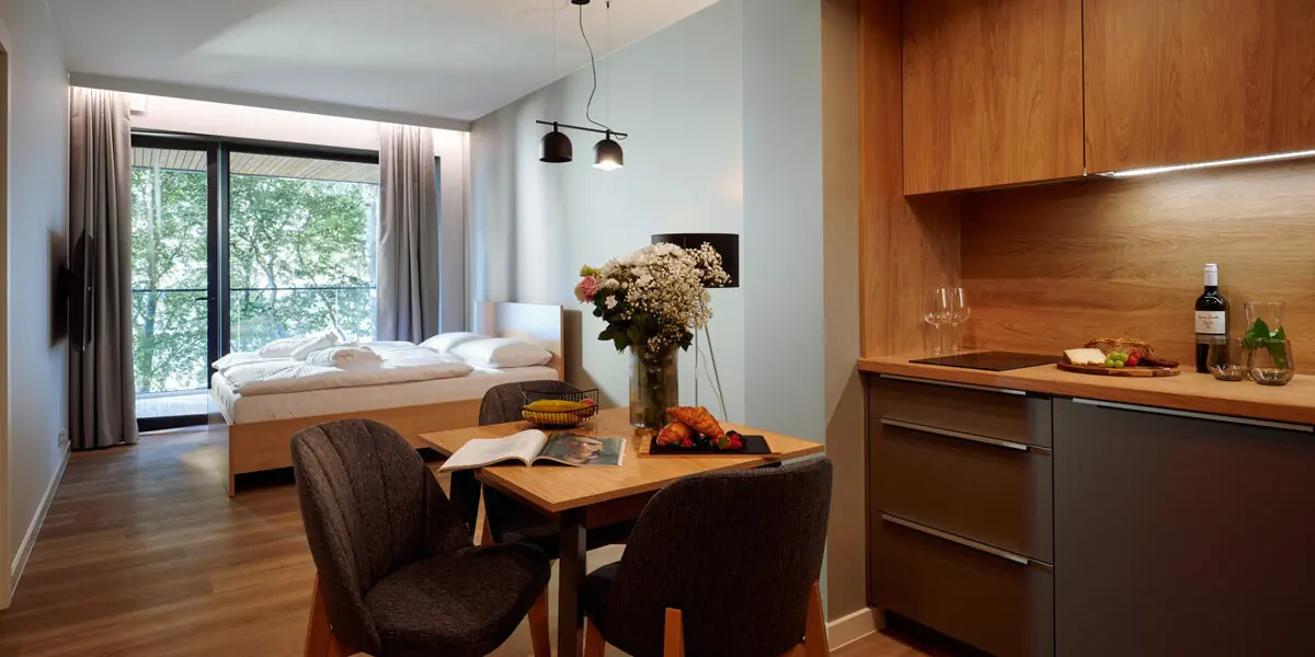 - Możliwość anulacji do 7 dni przed przyjazdem - Zakwaterowanie w komfortowym apartamencie z aneksem kuchennym - Codzienne śniadanie w formie bufetu - Nieograniczony dostęp do strefy wellness w godzinach otwarcia - Sala zabaw dla dzieci z multimedialnym, interaktywnym urządzeniem - Internet Wi-Fi - Podatek VAT