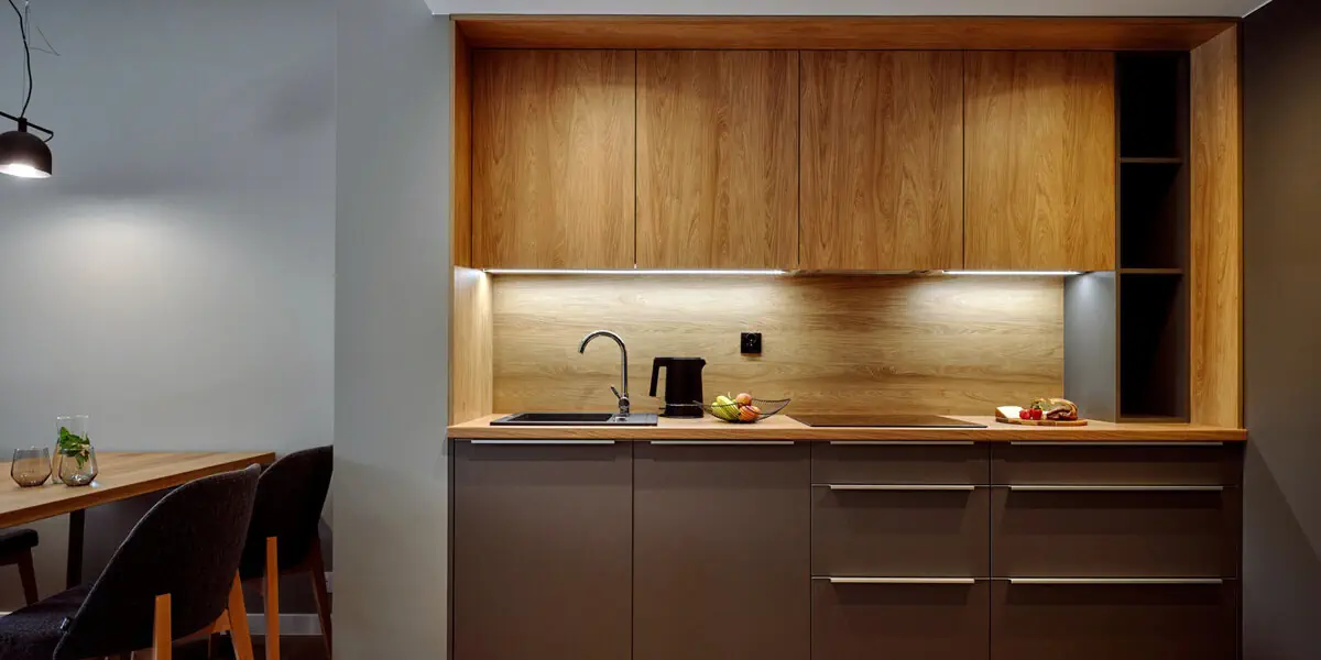 Komfortowy pokój z balkonem, aneksem kuchennym i widokiem na las
