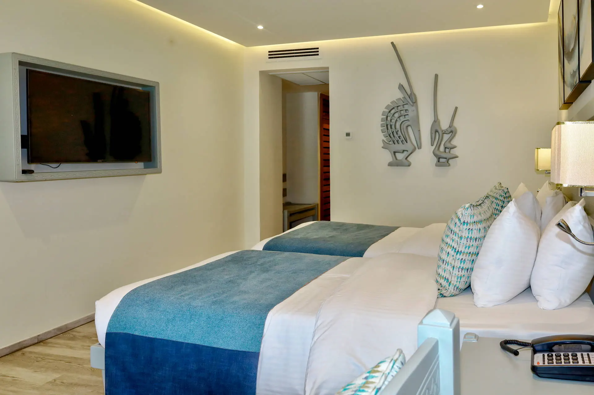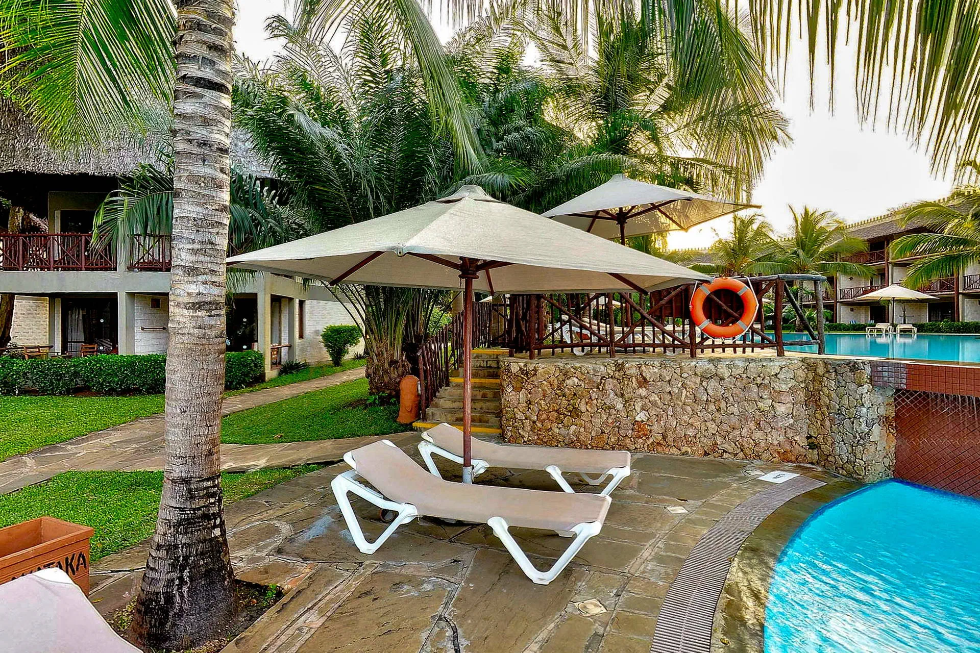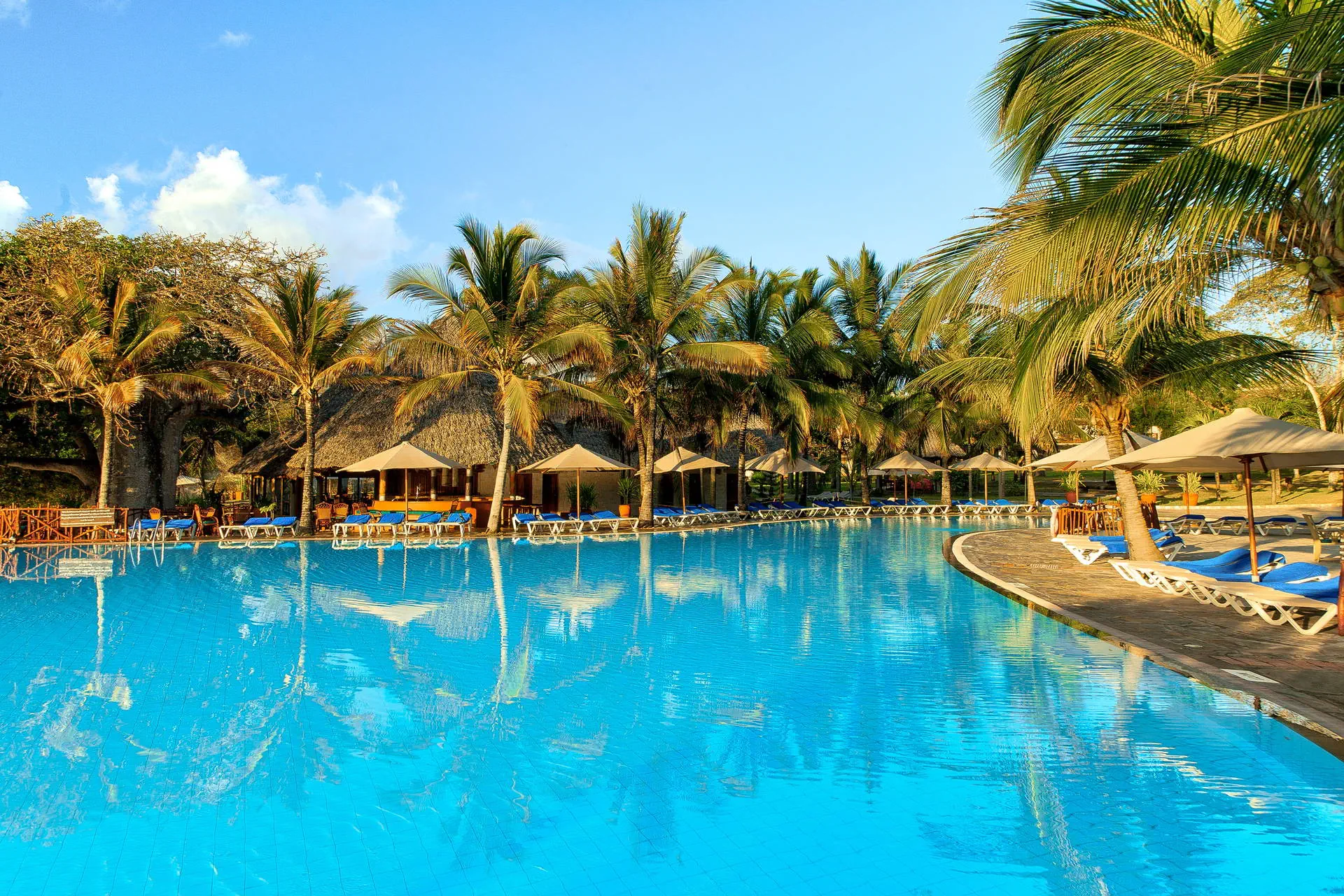 Internet Bezpłatny Internet Wi-Fi na terenie całego hotelu (tylko w zakresie obsługi poczty, przeglądania stron internetowych, social media, 2 urządzenia/pokój). Kategoria lokalna **** Naszym zdaniem Hotel usytuowany przy jednej z najpiękniejszych plaż w regionie oferuje przestronne pokoje i bogatą infrastrukturę, gwarantując wysoki standard usług. Egzotyczna atmosfera sprzyja relaksowi, a różnorodne animacje zapewniają rozrywkę dla każdego. Smaczne jedzenie zadowoli nawet najbardziej wymagających Gości. To doskonałe miejsce dla rodzin z dziećmi oraz osób ceniących komfort i jakość. Plaża Plaża Diani tuż przy hotelu. Szeroka z drobnym, białym piaskiem. Leżaki, parasole i ręczniki kąpielowe dostępne bezpłatnie w hotelowym ogrodzie. Położenie Do lotniska w Mombasie jest około 45 km. Obiekt otoczony jest pięknym ogrodem z tropikalną roślinnością, położony na rozległym terenie. Hotel składa się z budynku głównego oraz budynków bocznych, położony na terenie o powierzchni około 80 ha. Program sportowy i animacyjny Dla każdego: Hotel prowadzi bogate animacje w ciągu dnia i wieczorem m.in.: pokazy taneczne, akrobatyczne, spektakle w amfiteatrze. Kort tenisowy (oświetlenie i sprzęt w cenie), siatkówka plażowa, tenis stołowy, bilard, rzutki, łucznictwo, aqua aerobik, fitness, boccia, dyskoteka. Dla dzieci: gry i zabawy w mini klubie. Za dodatkową opłatą: centrum SPA, siłownia, sporty wodne na plaży (m.in.: windsurfing, kitesurfing, nurkowanie, wyprawy na ryby). Strona www www.baobab-beach-resort.com Wyżywienie Rodzaje wyżywienia i posiłki: All Inclusive: Śniadanie: 07:00 - 10:00. Lunch: 12:30 - 14:00. Obiadokolacja: 19:30 - 21:30. Pozostałe informacje: Lokalne napoje bezalkoholowe i alkoholowe oraz przekąski w godzinach otwarcia barów (10:00 - 24:00). 3 razy w tygodniu kolacje tematyczne, m.in. African Jungle Night, La Dolce Vita. Posiłki w formie bufetu. Do dyspozycji gości Recepcja 24h/7. 3 baseny (w tym jeden 3-kaskadowy), każdy z tarasem słonecznym, brodzik dla dzieci, jacuzzi, bezpłatne leżaki, parasole i ręczniki kąpielowe przy basenach. Restauracje: 3 restauracje - główna Karibu, Jodari z widokiem na plażę, Maridadi serwująca głównie dania kuchni azjatyckiej ze snack barem (11:00-17:00); 2 restauracje a’la carte płatne dodatkowo - Marhaba (kuchnia orientalna), Tangezi (kuchnia włoska, owoce morza, otwarta w szczycie sezonu); 5 barów - Sultan lobby bar, bar przy basenie, Tapa Tapa, Suli Suli (10:00-24:00), Porini przy amfiteatrze (21:30-00:00). Pozostałe informacje: Za opłatą: kantor, sklep z pamiątkami.