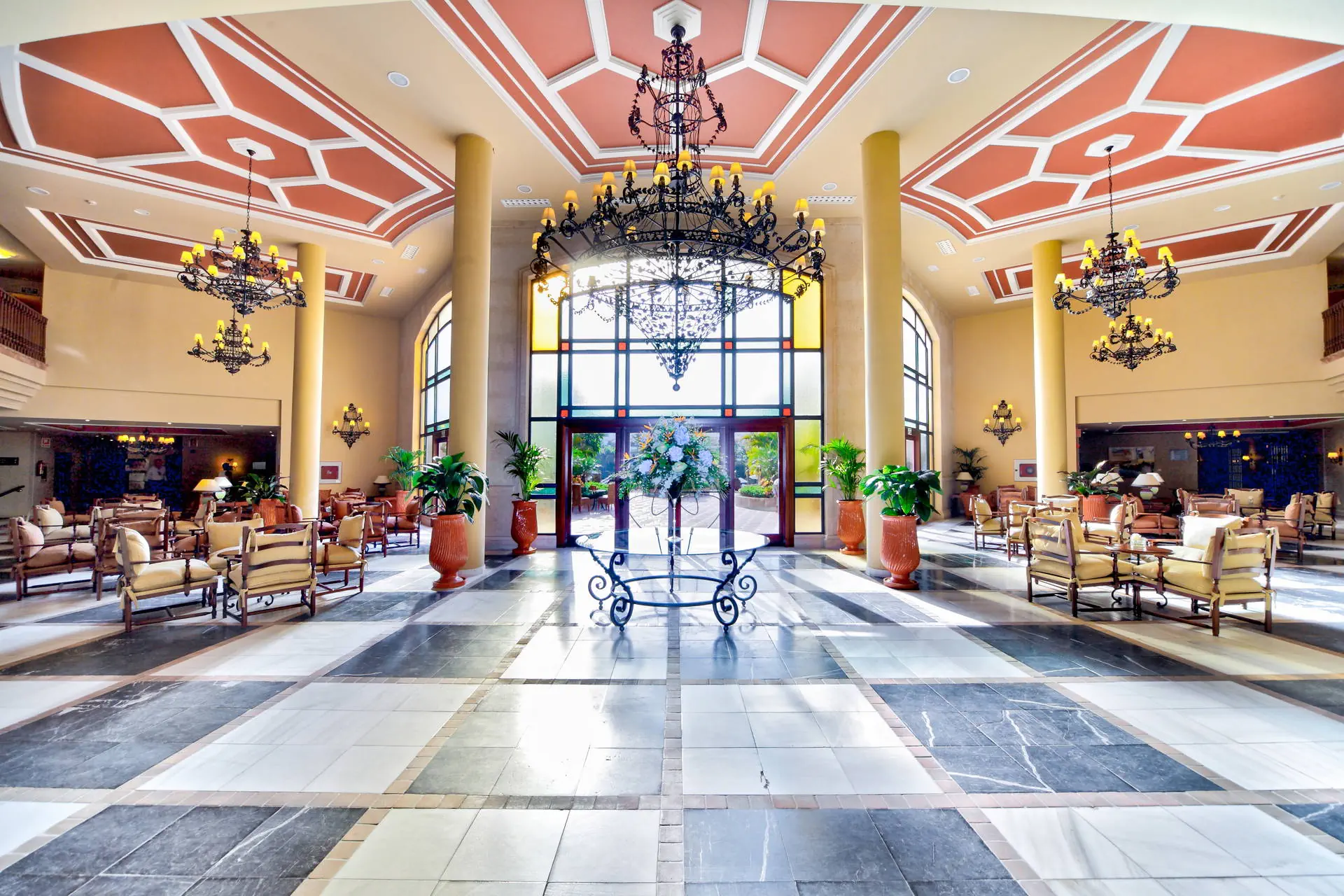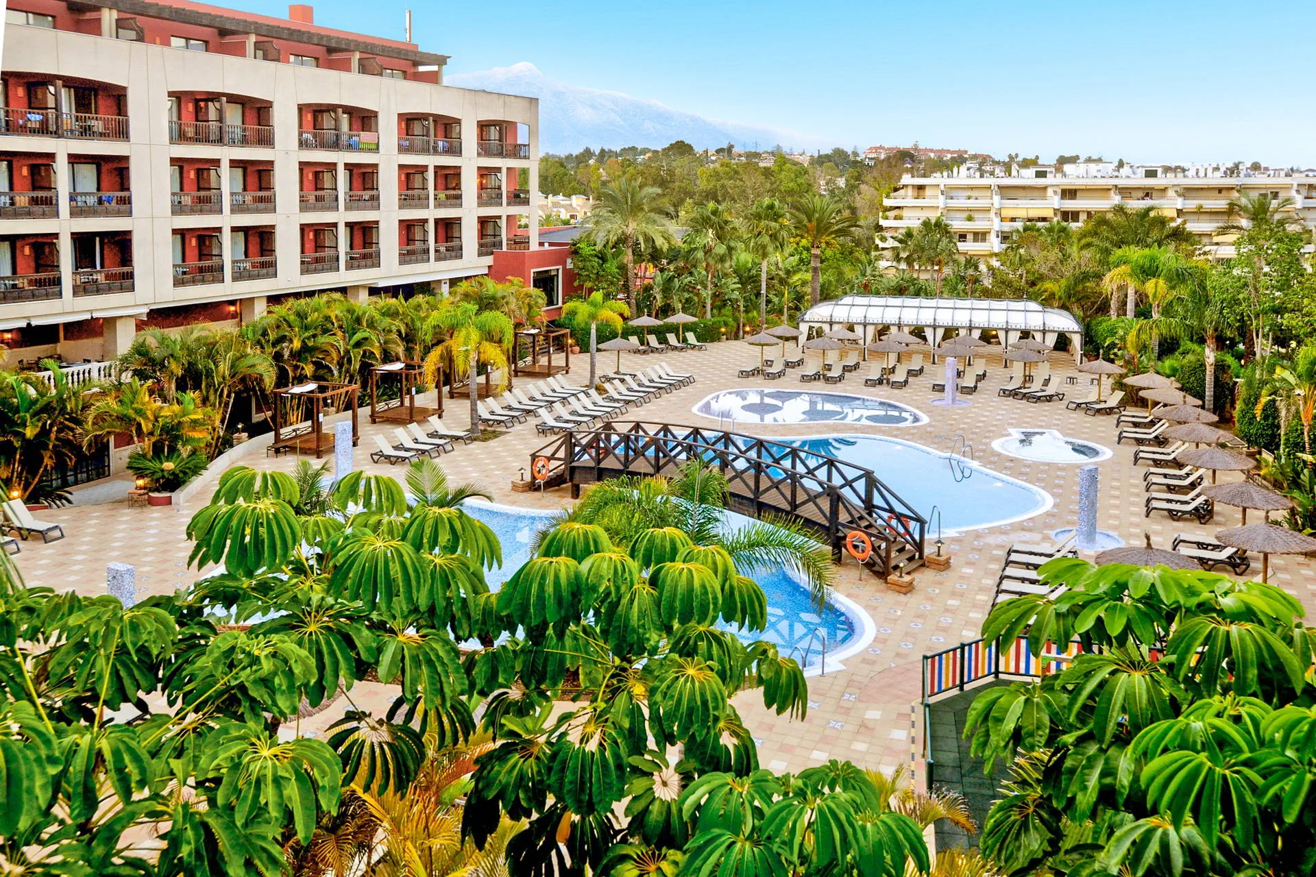 Do dyspozycji gości Recepcja, windy, przestronne i eleganckie lobby, restauracja główna Mediterraneo, lobby bar, snack-bar przy basenie, ogród z basenem o nieregularnym kształcie, brodzik dla dzieci (w basenach słodka woda), jacuzzi, taras słoneczny z leżakami i parasolami, łożka balijskie (płatne), plac zabaw, kantor, bankomat, sklep z pamiątkami, fryzjer, pralnia, wypożyczalnia samochodów. Hotel zapewnia ręczniki basenowe (depozyt ok. 10 EUR). Na plaży leżaki i parasole płatne ok. 12 EUR/komplet/dzień). Od połowy czerwca do połowy lipca hotel organizuje 2 x dziennie transfery (za dodatkową opłatą) do Marbelli, Puerto Banus oraz do klubów plażowych współpracujących z siecią Barcelo. Do połowy maja i od połowy września transfery te organizowane są 1 x dziennie lub mogą zostać zawieszone. Kategoria lokalna **** Naszym zdaniem Zadbany i elegancki hotel polecany osobom ceniącym nie tylko bardzo dobrą jakość serwisu gwarantowaną marką Barcelo, ale również możliwość aktywnego wypoczynku. Pokoje Hotel oferuje komfortowe i urządzone w kolonialnym stylu pokoje (możliwość 1 dostawki), z łazienką (wanna lub prysznic, wc, suszarka do włosów), indywidualnie sterowaną klimatyzacją, TV-sat LCD, telefonem, mini barem (dodatkowo płatny), sejfem ( ok. 3EUR/dzień) oraz z balkonem. Pokoje typu superior - przestronne (pow. ok. 33m2) - rozlkowane są w 4-piętrowym budynku głównym. Hotel akceptuje zwierzęta do 15 kg ( opłata ok. 20 EUR/dzień) – na zapytanie. Położenie Hotel należy do znanej hiszpańskiej sieci Barcelo. Położony jest ok. 10 km od Marbelli, ok. 3 km od Puerto Banus, w dzielnicy Guadalmina. Do lotniska w Maladze ok. 70 km. W bezpośredniej okolicy hotelu znajduje się jedno z największych pól golfowych w Europie. Program sportowy i animacyjny Dodatkowo płatne: kort do paddle ( ok.2 EUR/godz., oświetlenie ok. 15 EUR/godz.), centrum wellness (siłownia, sauna, łaźnia turecka) oraz pole golfowe. Od połowy czerwca do połowy września: codzienne animacje dla dzieci i dorosłych, mini klub, wieczorne przedstawienia. Wyżywienie Śniadania w formie bogatego bufetu. Istnieje mozliwość dopłaty do obiadokolacji. Dla pobytów od 16.06 do 08.09 istnieje możliwość dopłaty do lunchy lub do All Inclusive. All Inclusive: śniadania, lunche i obiadokolacje, przekąski w ciągu dnia (11:00-19:30), lokalne napoje alkoholowe i bezalkoholowe (11:00-24:00) serowowane w miejscach wyznaczonych przez hotel. Plaża Do piaszczystej plaży ok. 2,5 km. Internet Wi-fi na terenie hotelu gratis. Strona www www.barcelo.com