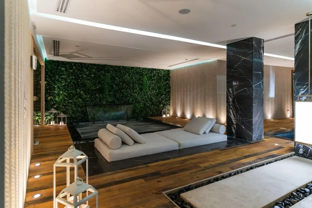Dla max. 4 osób, Przestrzeń zewnętrzna: Balkon i taras, Kanały telewizji: Angielski, Telefon w pokoju, wanna, prysznic, Powierzchnia pokoju: ok. 395 - 400 m2, Dostawka: łóżko standardowe, Rodzaj podłogi: płytki, Sprzątanie codziennie, Salon, część jadalniana, 1 sypialnia, Maksymalna liczba osób dorosłych: 2, Maksymalna liczba dzieci: 2, Concierge (bezpłatnie), Kwiaty i owoce, Bezpłatna pralnia, Widok na morze, Prywatny basen, Liczba łazienek: 2, Liczba toalet: 2, Zestaw do parzenia kawy i herbaty, Klimatyzacja: Klimatyzacja indywidualna