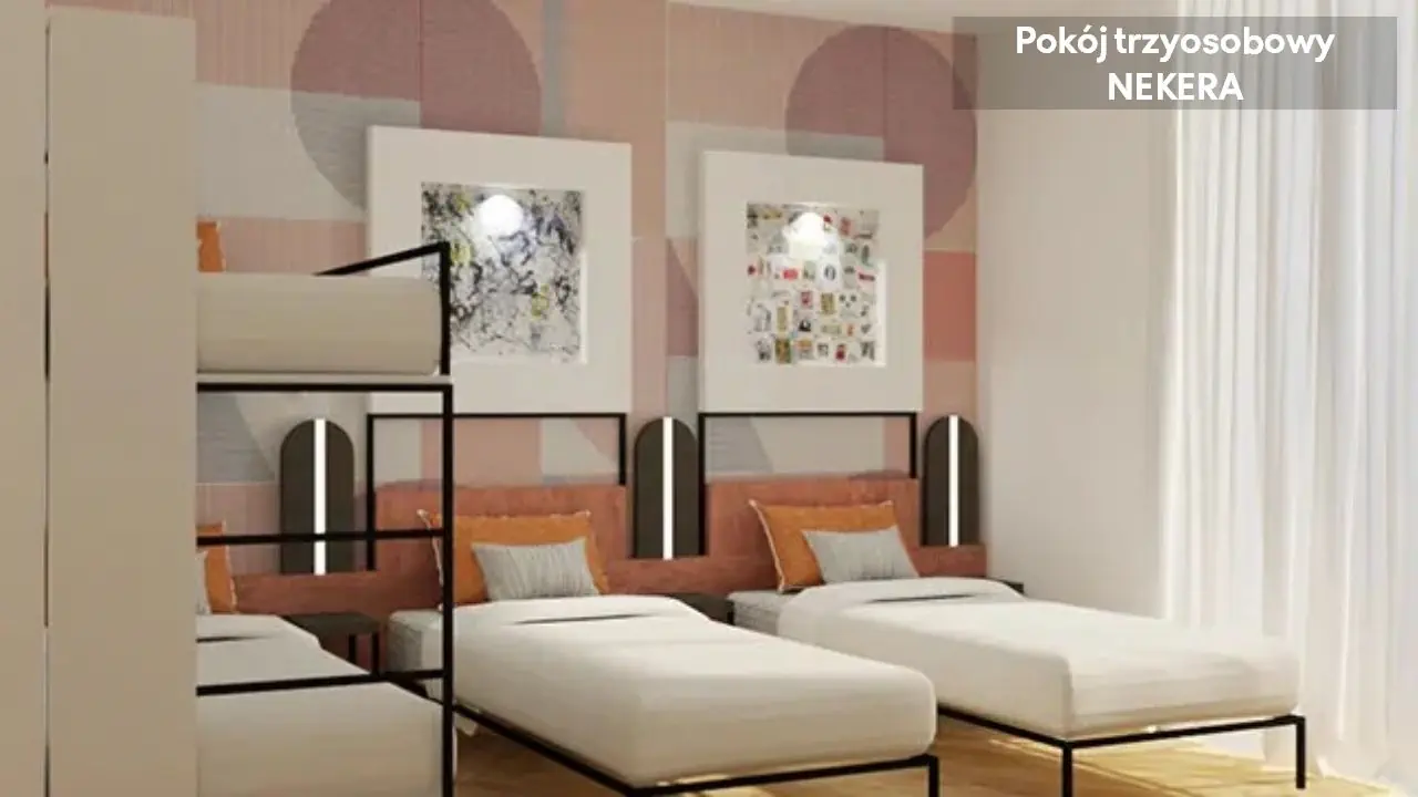 Nowoczesne, komfortowe pokoje dla 1–4 osób, z łóżkiem podwójnym i/lub pojedynczym, klimatyzacja, biurko, TV-SAT z funkcją Chromecast, Wi-Fi, sejf, prywatna łazienka (prysznic, toaleta, suszarka, zestaw kosmetyków), zestaw do parzenia herbaty i kawy. Pokoje dźwiękoszczelne, część z nich przystosowana dla osób z ograniczoną mobilnością.