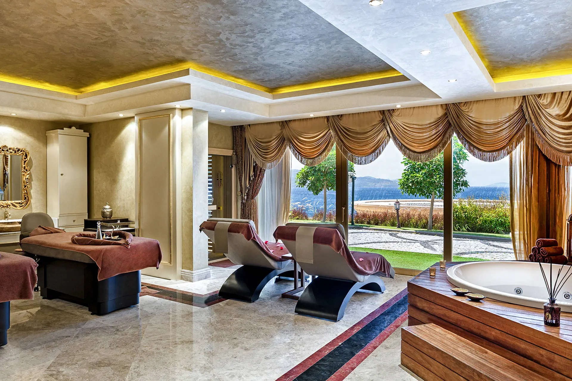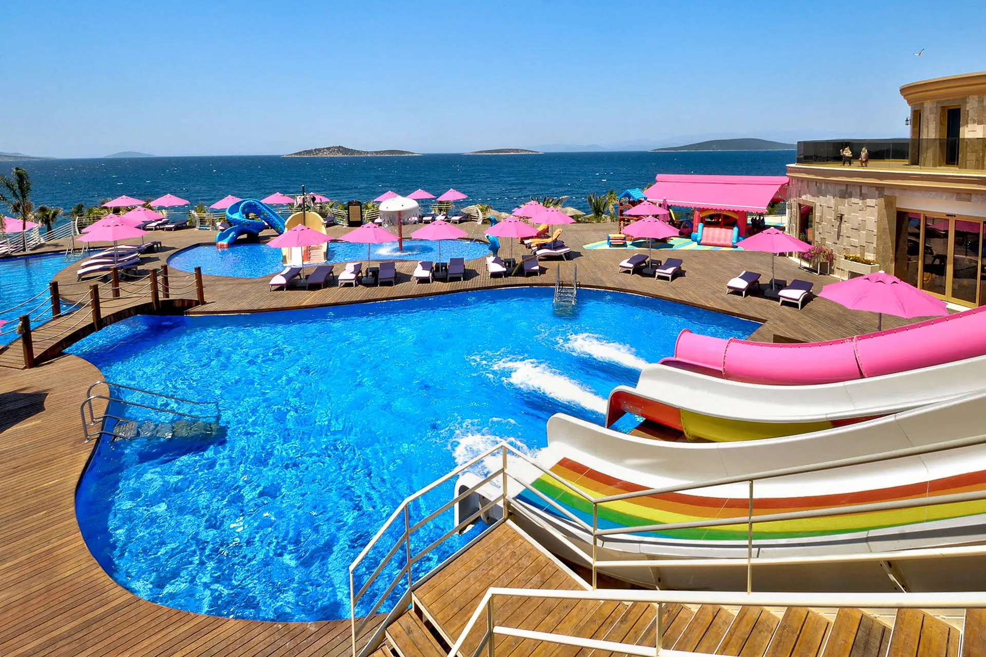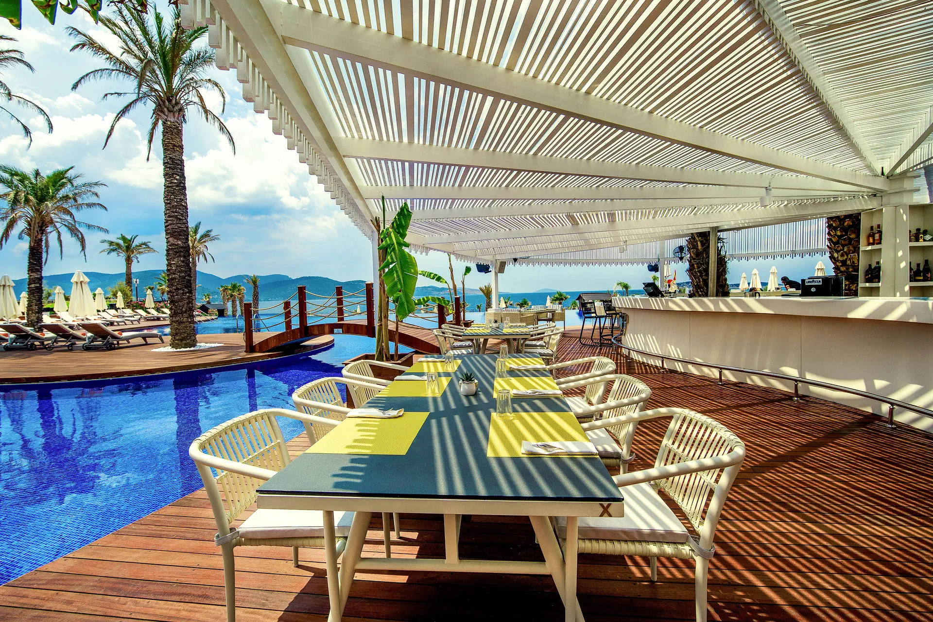 Położenie Hotel znajduje się w miejscowości nad zatoką Torba. Obiekt położony jest około 10 km od centrum Bodrum, gdzie znajdują się liczne sklepy, restauracje i miejsca rozrywki. Odległość od lotniska w Bodrum wynosi około 25 km. Plaża Plaża oddalona o ok. 100 m od hotelu. Prywatna piaszczysta. Leżaki, parasole i ręczniki dostępne bezpłatnie. Na plaży znajduje się pomost. Do dyspozycji gości Recepcja 24h, lobby. 4 baseny zewnętrzne o nieregularnych kształtach, basen ze zjeżdżalniami, brodzik dla dzieci, baseny wewnętrzne. Atrakcje dla dzieci: brodzik dla dzieci. Restauracje: restauracja główna, 11 restauracji a’la carte m.in.: włoska, BBQ, orientalna, azjatycka (wymagana wcześniejsza rezerwacja), 12 barów m.in. lobby bar 24h, bar na plaży, sport bar, Her Be bar. Pozostałe informacje: za dodatkową opłatą: lekarz, pralnia, fotograf, fryzjer, butiki oraz sklepiki. Wyżywienie Rodzaje wyżywienia i posiłki: Premium All Inclusive: Śniadanie: 07:00 - 10:00. Późne śniadanie: 10:00 - 11:00. Obiad: 12:30 - 14:30. Obiadokolacja: 19:00 - 22:00; posiłki serwowane w formie bogatego bufetu w restauracji głównej. Nocna przekąska: 23:00 - 07:00 w restauracji a’la carte. Bary: Sport bar: napoje bezalkoholowe, lokalne alkoholowe oraz wysokiej klasy alkohole. Pozostałe bary: napoje bezalkoholowe, lokalne alkoholowe oraz część importowanych, dostępne w godzinach otwarcia. Dodatkowe usługi: Przekąski, lody, owoce oraz słodkości serwowane w różnych barach w ciągu dnia. Program sportowy i animacyjny Dla każdego: zabawy w ciągu dnia na terenie hotelu, wieczorne show, rzutki, tenis stołowy, aerobik, zumba, aerobik w wodzie, pilates, joga, rowerki wodne, lekcje tańca, siłownia, sauna, łaźnia turecka, salon gier. Dla dzieci: Baby club (1-3 lat), mini klub (4-7 lat), midi klub (8-12 lat), klub dla nastolatków (13-17 lat). Za dodatkową opłatą: zabiegi kosmetyczne, masaże, zmotoryzowane sporty wodne, nurkowanie. Internet Bezpłatny Internet Wi-Fi dostępny na terenie całego hotelu. Kategoria lokalna ***** Naszym zdaniem Elegancki i nowoczesny hotel położony kaskadowo na zadbanym terenie tuż obok plaży, w którym znajduje się wiele udogodnień dla rodzin z dziećmi. Doskonała obsługa hotelowa, rozbudowana infrastruktura hotelu, różnorodne typy pokoi, wyśmienita i bogata formuła All Inclusive to główne atuty tego hotelu. Strona www www.bepremiumhotels.com